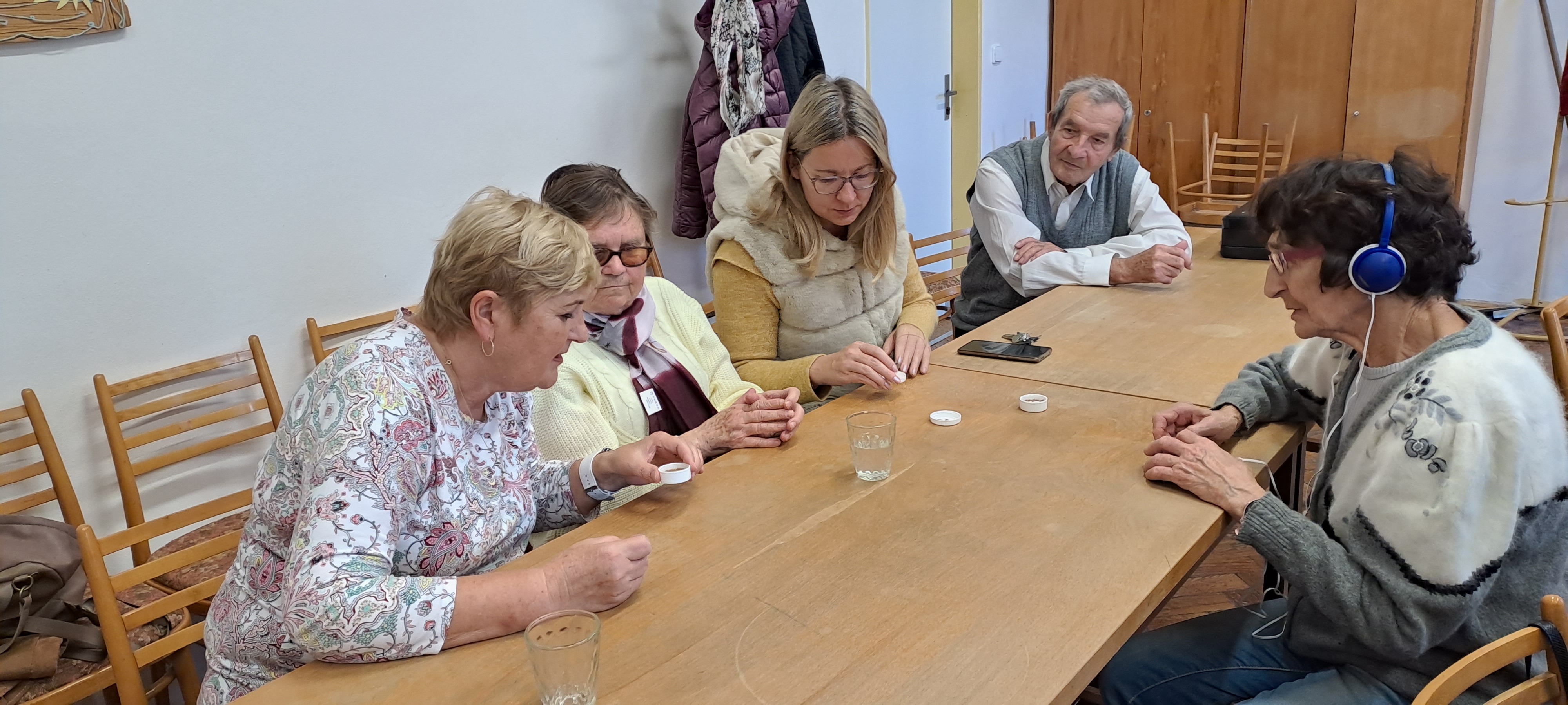 Poté následovalo poznávání vůní koření, bylinek a různých pochutin a přísad, používaných v kuchyni, vše pouze s využitím čichu a hmatu.
