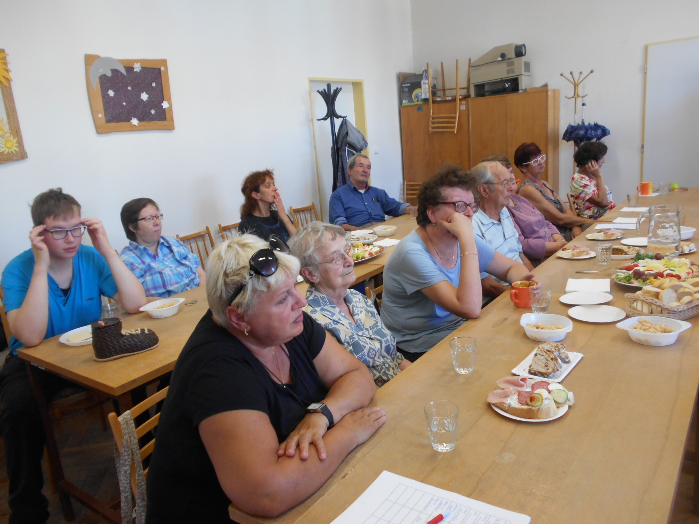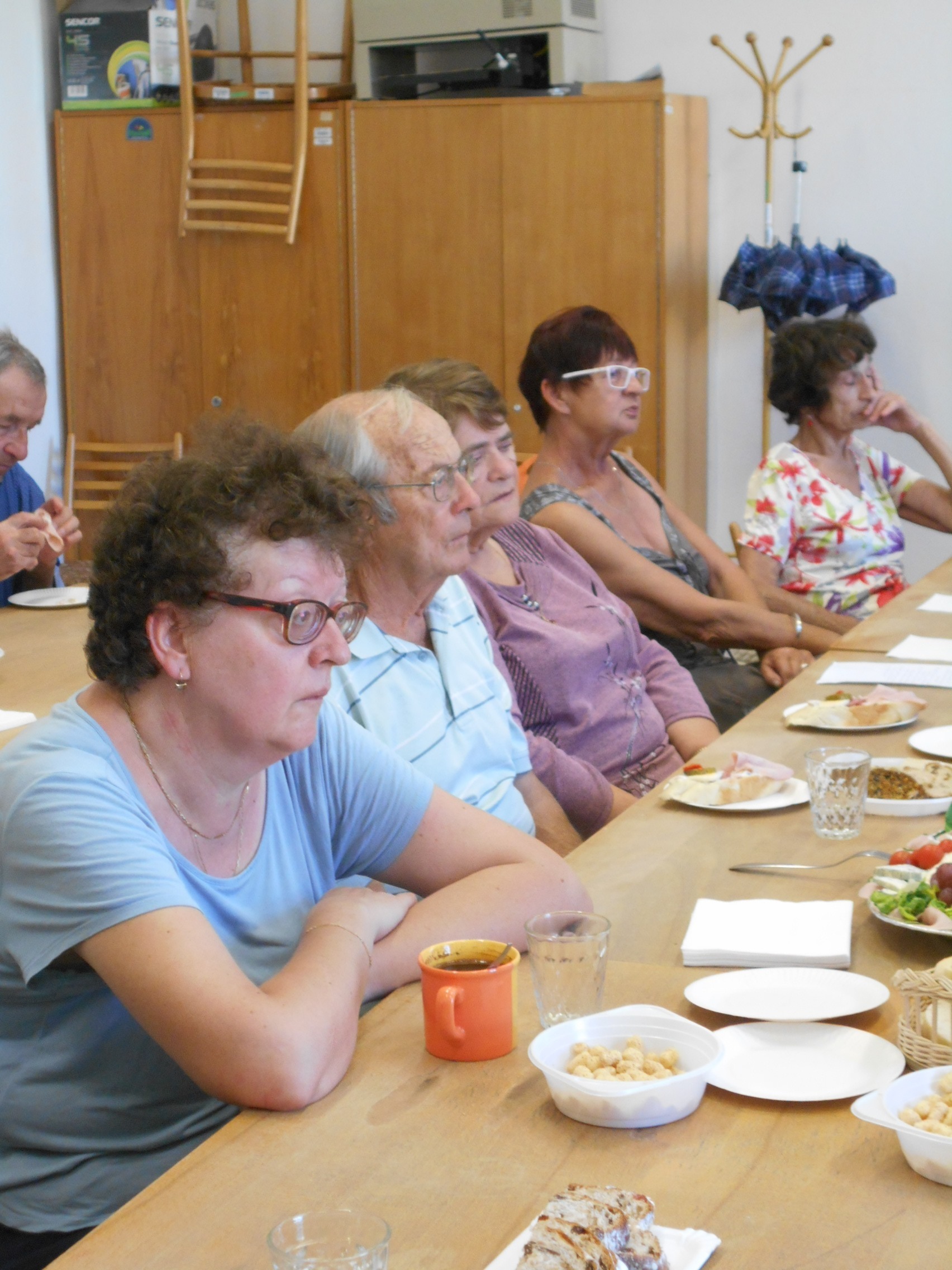 Společně jsme také poblahopřáli naší dlouholeté člence, paní Hapalové, k jejímu životnímu jubileu. Paní Hanzalová s paní Fridrichovou seznámily naše členy s odbočkovými akcemi plánovanými na měsíc září, především s programem výletu do Brna s prohlídkami vily Tugendhat a vily LöW-Beer, který se uskuteční ve čtvrtek 12. září.