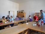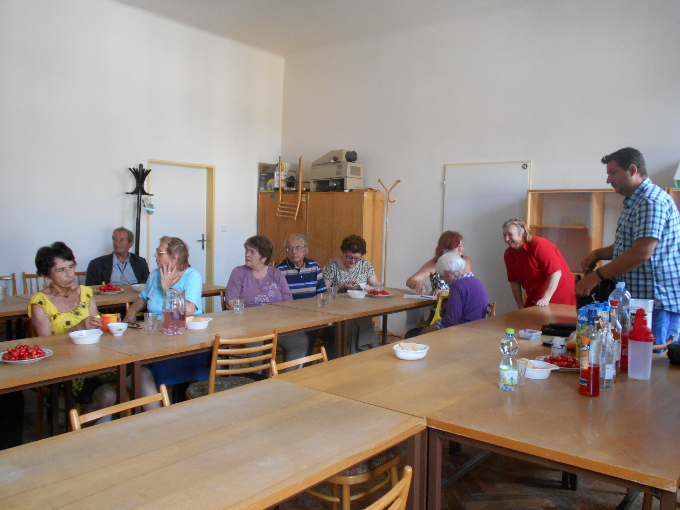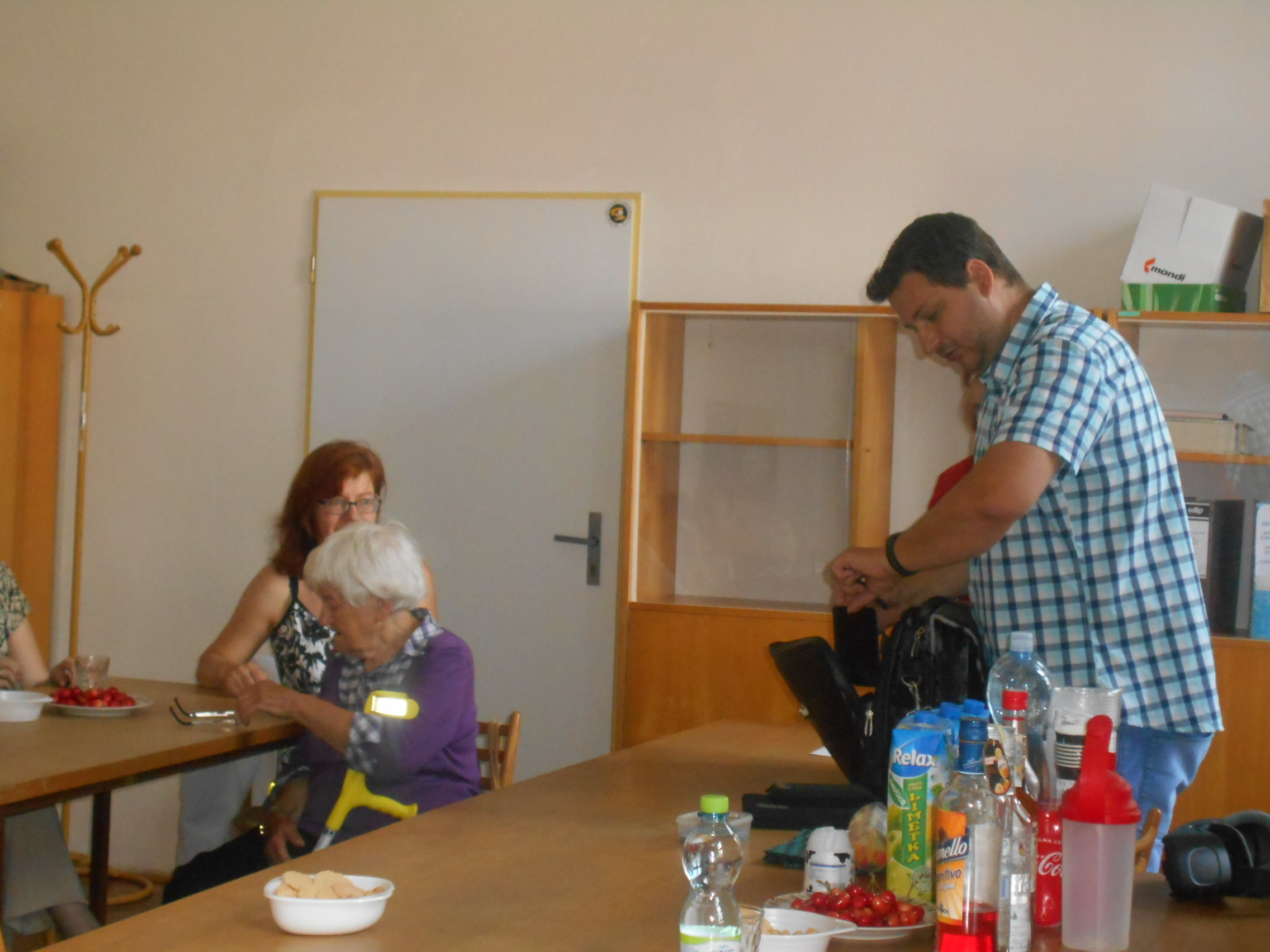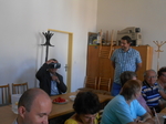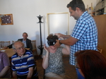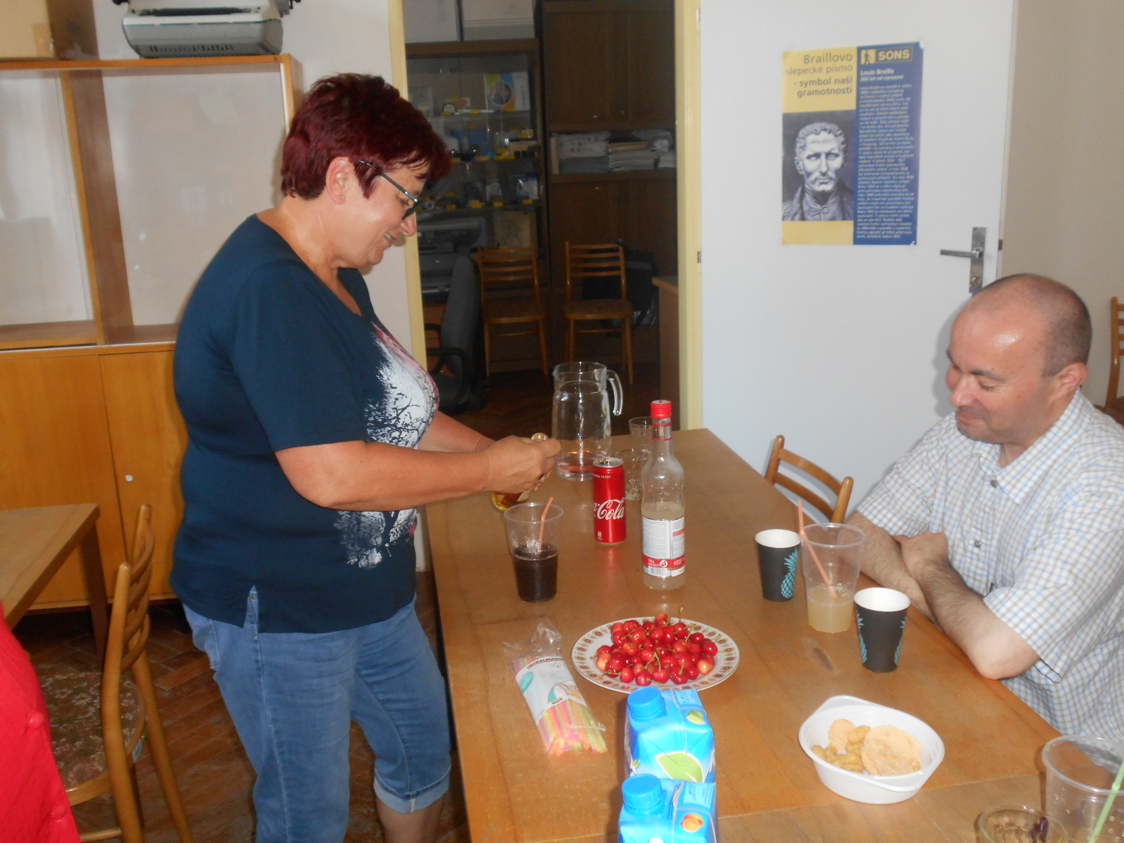 Našimi hosty byli tentokrát vedoucí pracovnice Osobní asistenční služby v Kroměříži paní Mgr. Renata Gabrhelíková, která nás přišla pozvat na výlety, které pořádají v rámci akce Prázdniny na kolečkách, a představit místa, která letos navštíví, a také zástupce společnosti Adaptech - pan Jaroslav Kavan, který nám představil novinky z oblasti elektronických kompenzačních pomůcek pro zrakově postižené, o které byl velký zájem, a přichystal pro naše členy oblastní kolo soutěže v přípravě a míchání koktejlů.