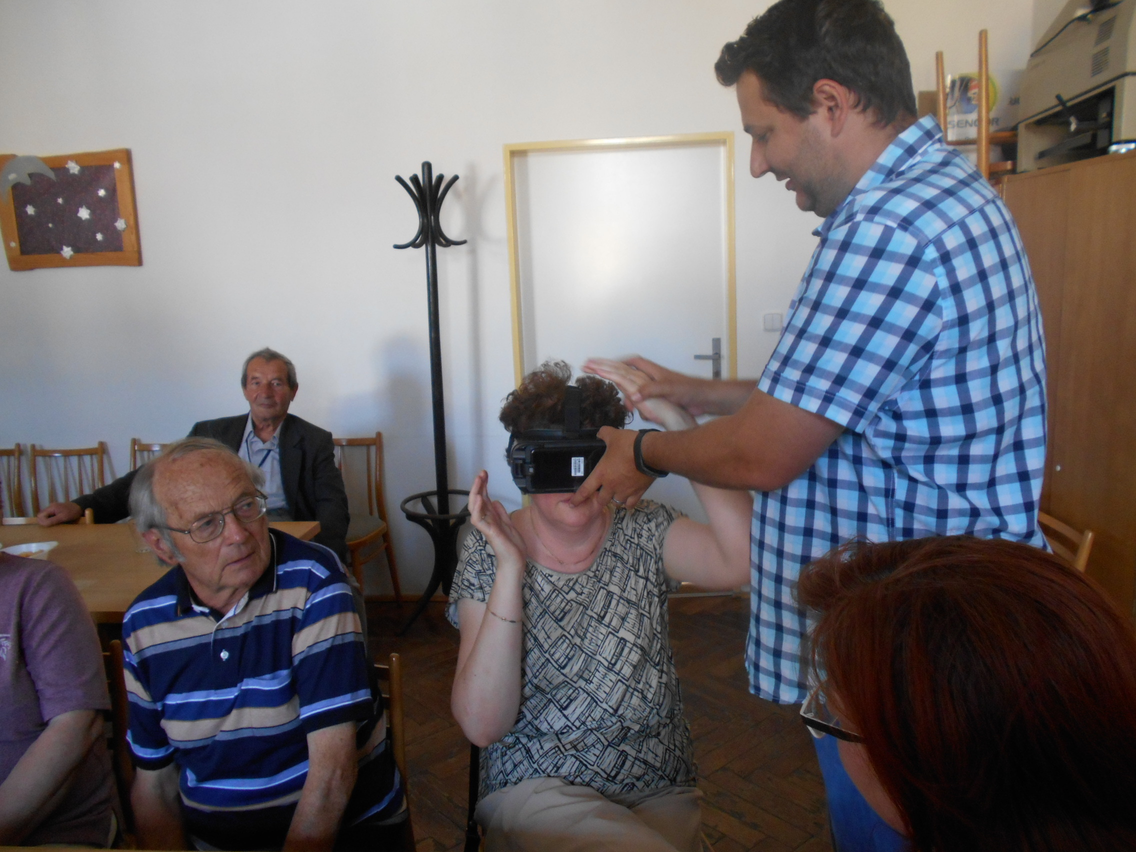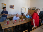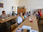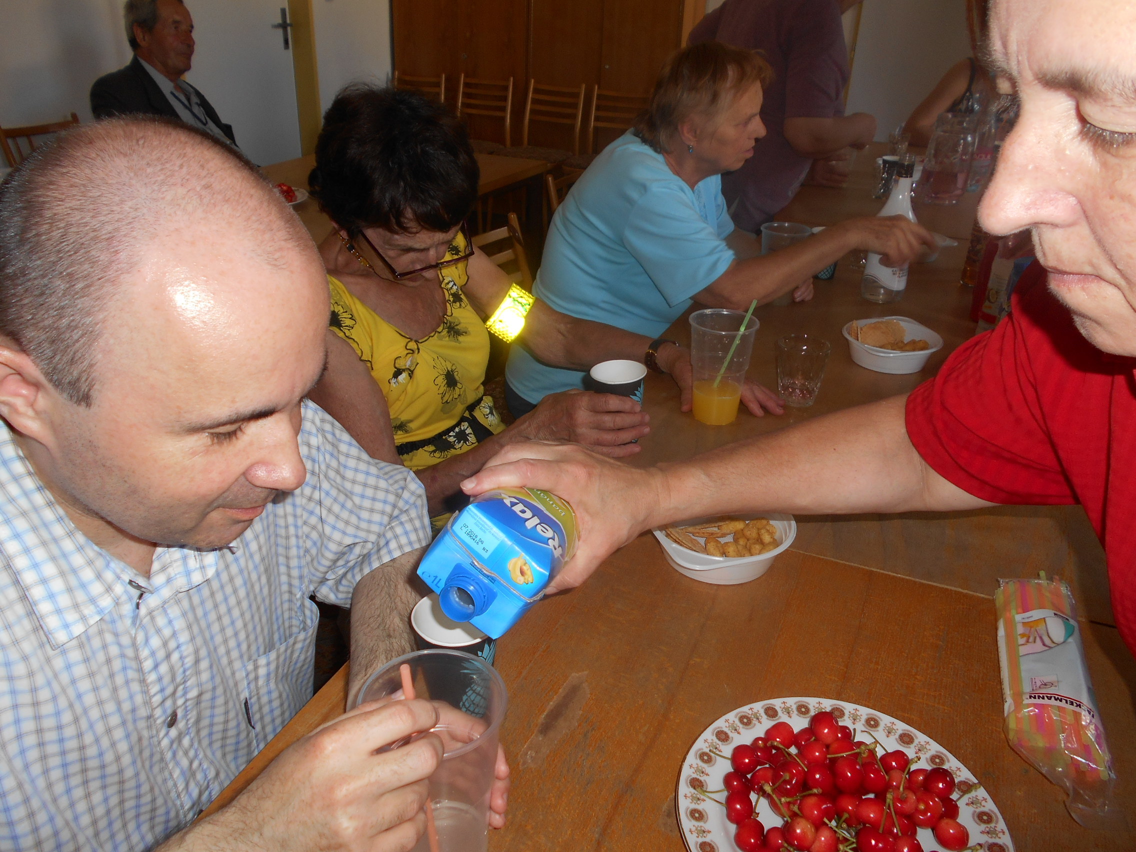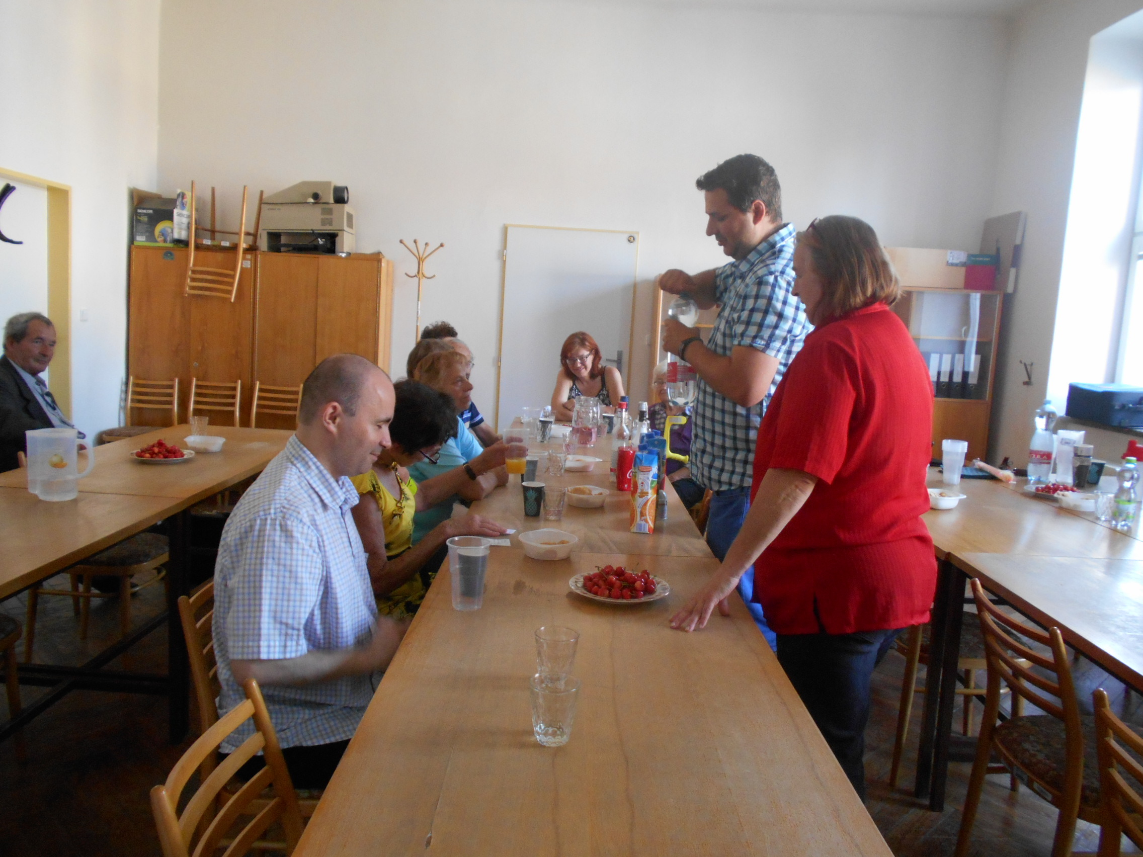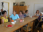 Našimi hosty byli tentokrát vedoucí pracovnice Osobní asistenční služby v Kroměříži paní Mgr. Renata Gabrhelíková, která nás přišla pozvat na výlety, které pořádají v rámci akce Prázdniny na kolečkách, a představit místa, která letos navštíví, a také zástupce společnosti Adaptech - pan Jaroslav Kavan, který nám představil novinky z oblasti elektronických kompenzačních pomůcek pro zrakově postižené, o které byl velký zájem, a přichystal pro naše členy oblastní kolo soutěže v přípravě a míchání koktejlů.