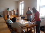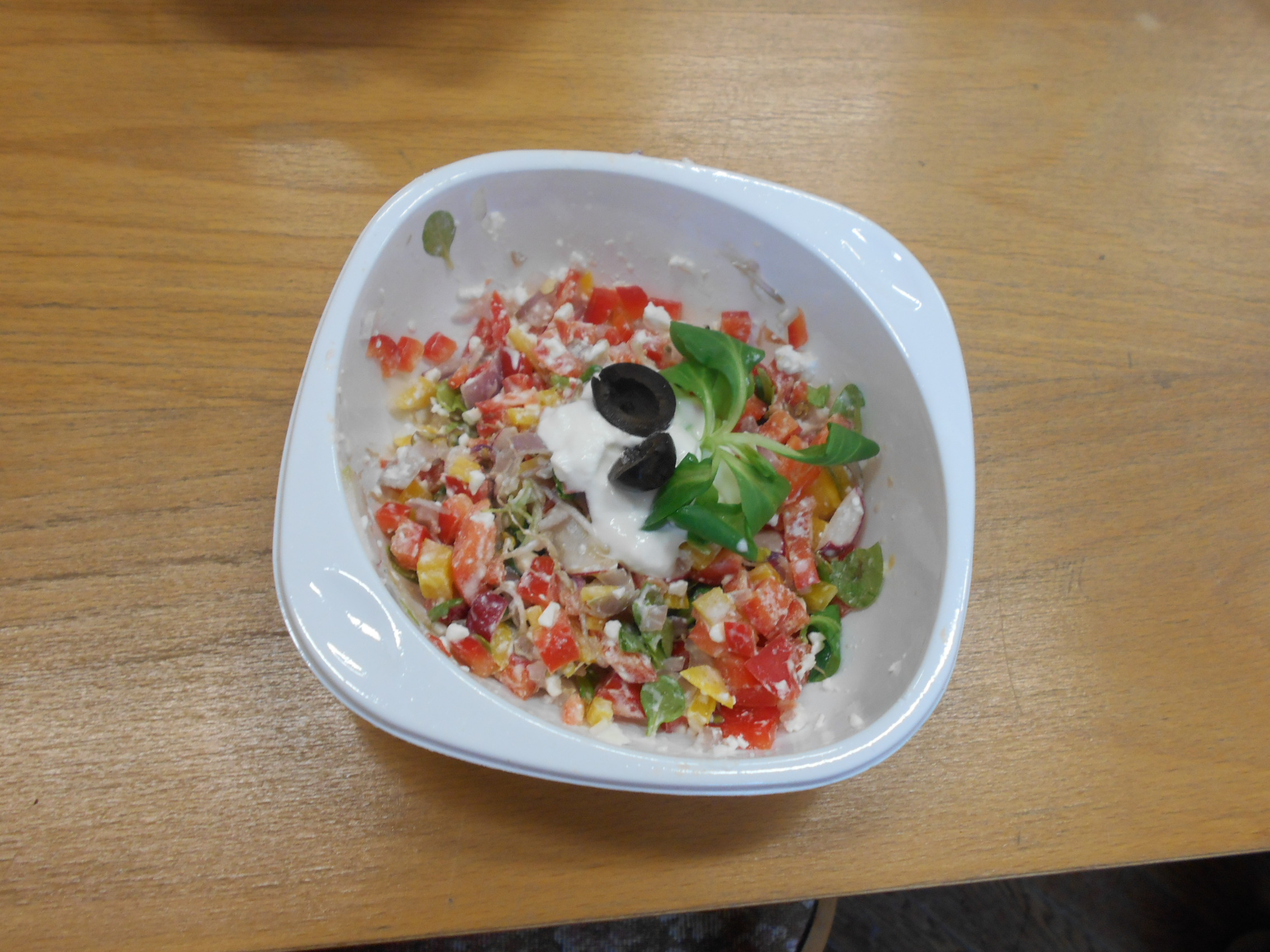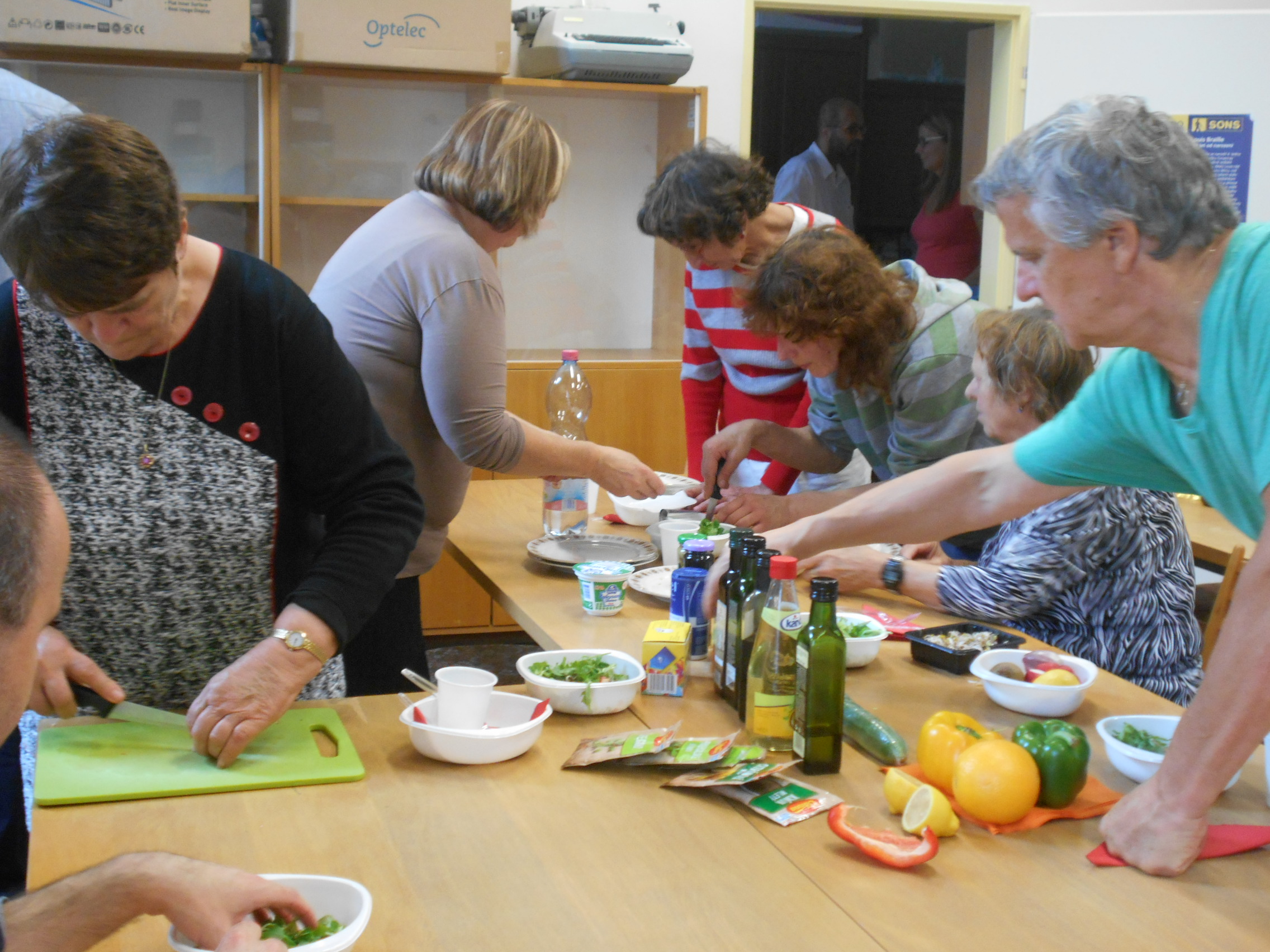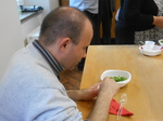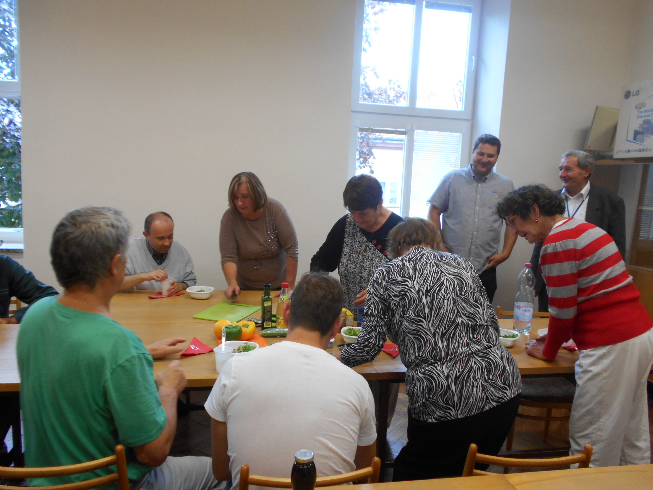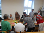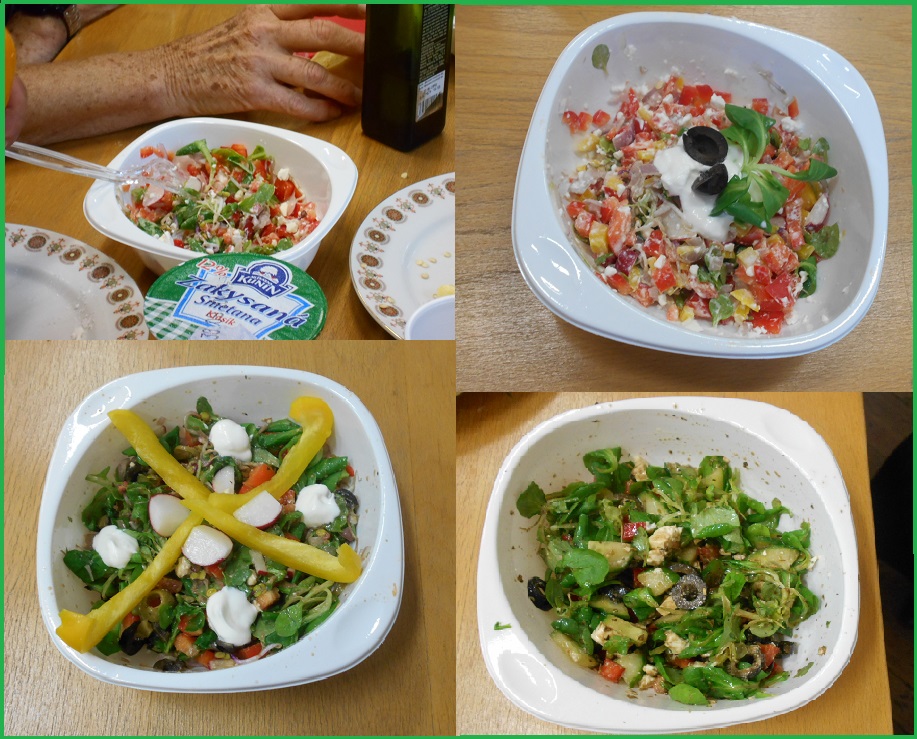 Poté jsme přivítali našeho hosta, kterým byl tentokrát pan Kavan ze společnosti Adaptech. Ten nám nejprve zběžně představil několik technických novinek z oblasti kompenzačních pomůcek pro zrakově postižené, a pak už jsme se věnovali hlavnímu bodu tohoto odpoledne, kterým byla soutěž v přípravě zeleninových salátů.
