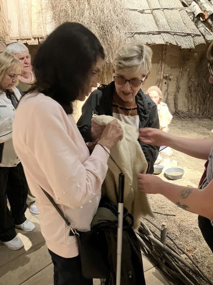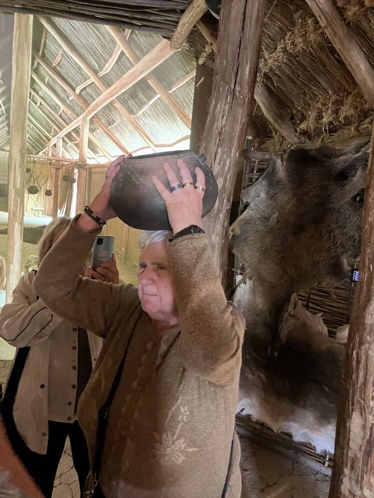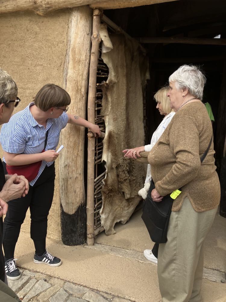 Navštívili jsme zámek Roztoky u Prahy, kde nám připravili komentovanou prohlídku areálu zámku s krásným výkladem o historii. Poté jsme se vydali do expozice Archevita po stopách věků. Byl to neobyčejný zážitek, plný informací z období pravěku od původních typů obydlí v měřítku 1:1, přes archeologické nálezy až po rekonstrukce pohřebních celků. Průvodkyně Tereza nás svým barvitým a vtipným vyprávěním vtáhla do období před našim letopočtem. Mohli jsme si osahat nástroje a nádoby, které používali naši předci k práci, obydlí a oblečení, které si sami vyráběli, prostě vše co se dalo.