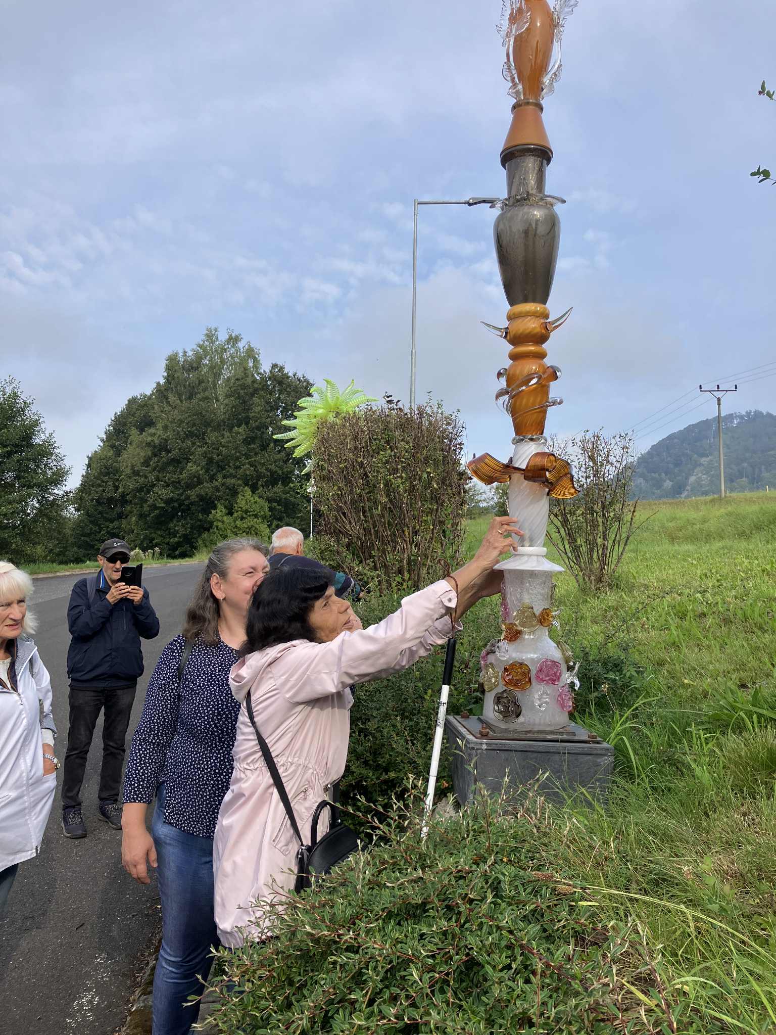 Ve středu 10.9. jsme se vydali na krásné místo, Lindava u Cvikova, do sklárny AJETO, která je proslulá výrobou divadelních cen Thálie a originálními díly, které se vyváží do celého světa. Okouzlila nás okolní příroda a prostředí sklárny. Již na cestě od parkoviště nás vítala skleněná díla, která jsme si prohlédli a poté nás čekala komentovaná a haptická prohlídka, kterou nás provázela milá průvodkyně Sabina. Výklad byl zajímavý, o historii a procesu výroby. Mohli jsme si prohlédnout nástroje, formy, materiál, z kterého vzniká sklo, skleněné komponenty do svítidel a nádoby vyráběné různými metodami, což bylo velice zajímavé. Vše jsme si osahali a měli nespočet dotazů k tak zajímavé tvorbě. Pronikli jsme alespoň na chvilku do krásné a těžké práce vynikajících sklářů a to i tím, že někteří z nás, si pod vedením úžasné sklářky, vyfoukli svou třetinku a s pomocí si na ní připevnili pinzetou ucho. Ti, co se neodvážili foukat, si vytvarovali krásnou květinu. Není to vůbec jednoduché, to může potvrdit jeden z našich členů, který si při prvním pokusu vyfoukl téměř meloun. Legrace musí být a my se od srdce zasmáli. Druhý pokus se již povedl a vznikla z toho krásná třetinka s vytvarovaným uchem.