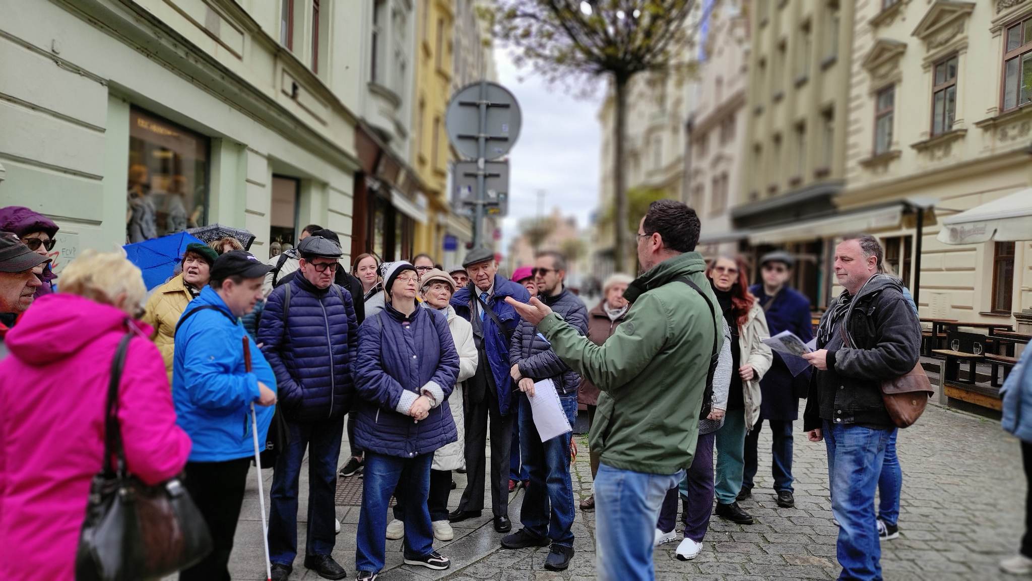Ve středu 12. 4. 2023 jsme se my zrakově postižení s OO SONS Cheb, Tachov a Plzeň zúčastnili komentované procházky zaměřené na historii plzeňských hospůdek, kaváren a vináren, nacházejících se na plzeňském náměstí a v jeho okolí. Tu si pro nás připravil Mgr. Ondřej Klekner člen OO SONS Plzeň. Nápomocni mu byli pracovníci OO SONS Plzeň a dobrovolníci z plzeňské firmy Ball Beverage Packaging Czech Republic, kteří se neúnavně zrakově postiženým účastníkům po celou vycházku věnovali. Během ní nám pan Klekner vyprávěl nejen o historii pohostinství, ale také nás seznámil se zajímavými lidmi k hospůdkám se vztahujícími.
