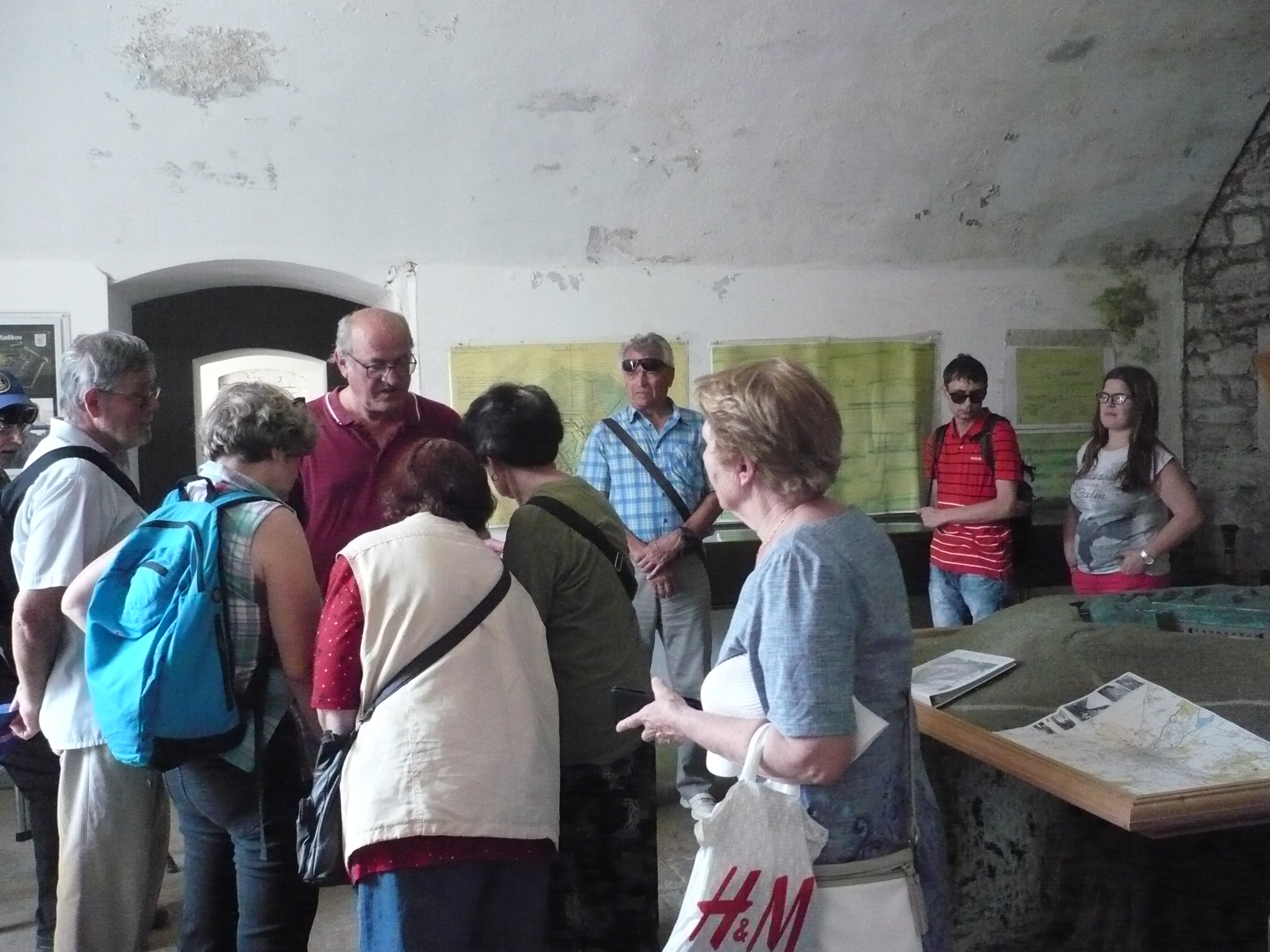 Vstup do areálu Pevnosti je hned vedle a prohlídka tedy mohla začít. Po vstupu do areálu nás táta zavedl dovnitř do místnosti, ve které je plastický model Fortu. Nad ním nám povídal o historických událostech, které s Pevností souvisí. Dozvěděli jsme se také to, že Fort je vytesán do vrcholku kopce, na kterém stojí. Všichni jsme si mohli na model sáhnout a mohli jsme si tak lépe představit, jak Fort vypadá. Nakonec jsme si byli prohlédnout vnitřní bojovou část Fortu, spojovací chodbu, která se nazývá poterna a suchý příkop.