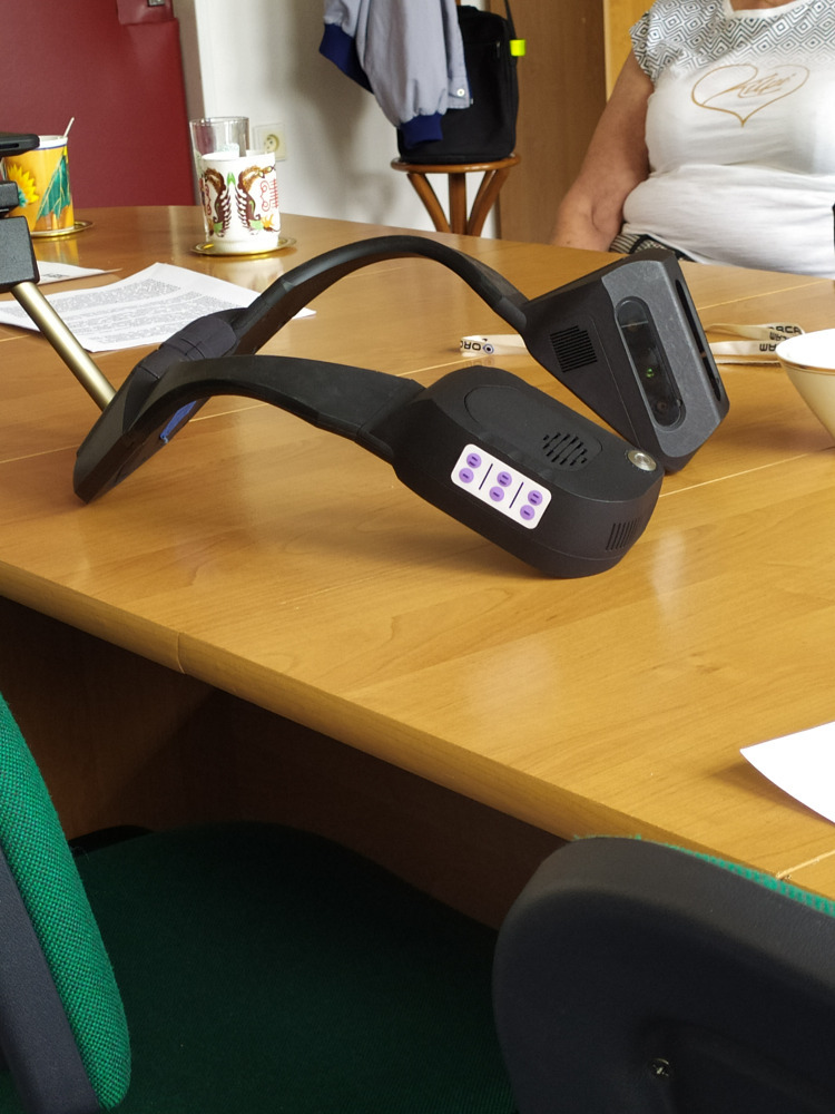 zvětšovací kameru s možným čtením textu, orientační vestu s vestavěnými kamerami s
