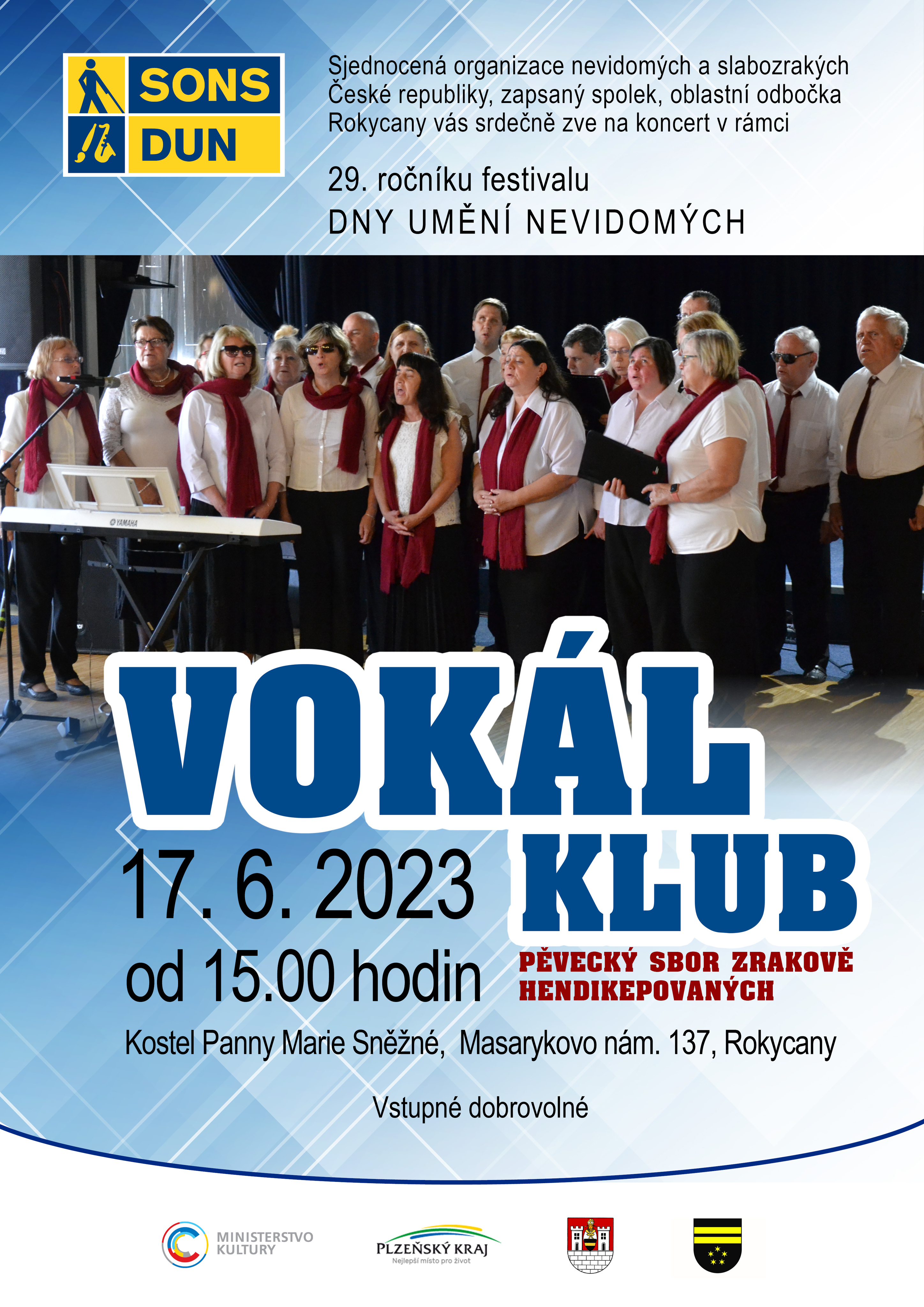 Je nám velkou ctí, že přivítáme u nás v Rokycanech pěvecký sbor zrakově hendikepovaných - Vokál klub.