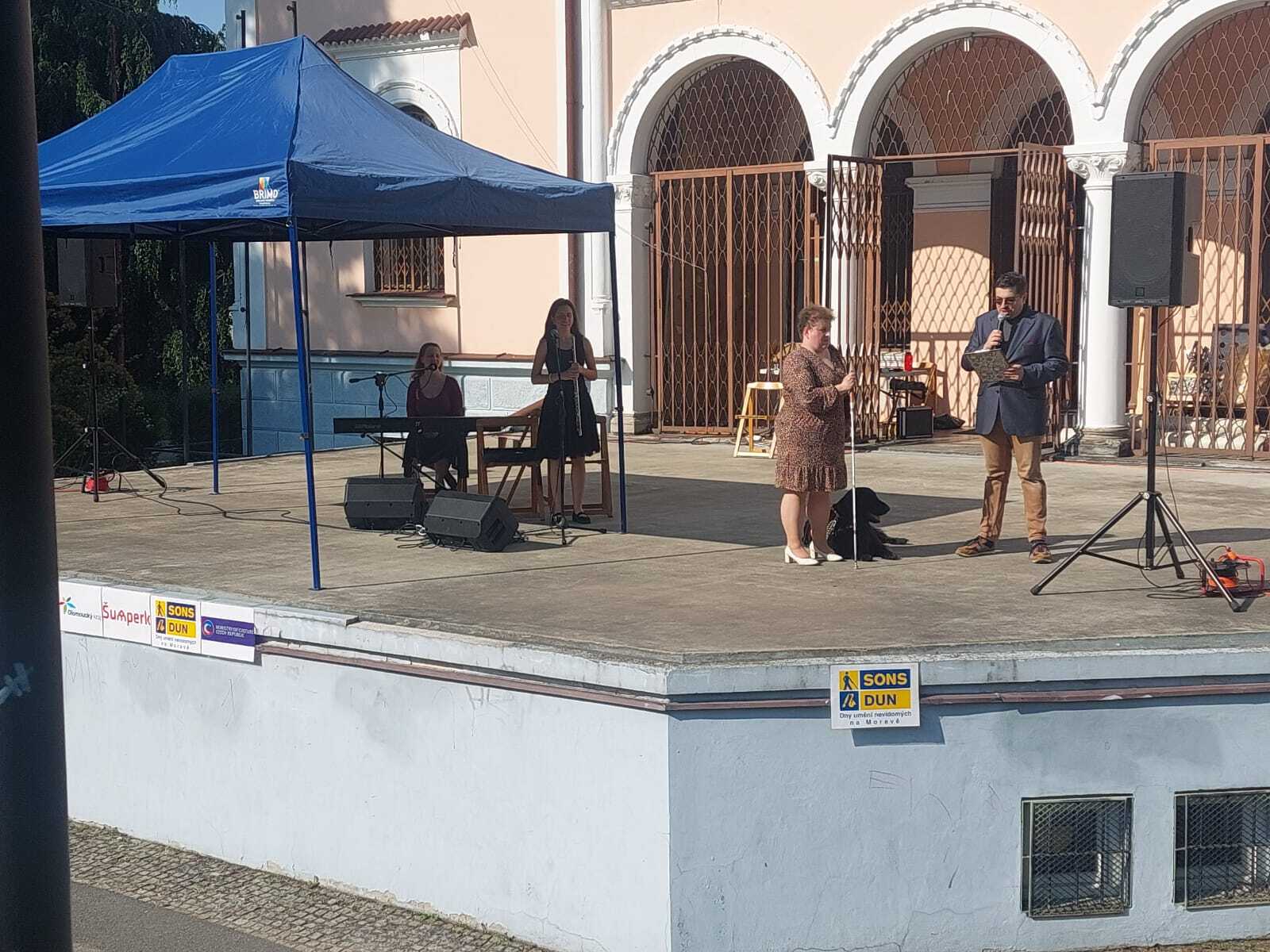 V začátku koncertu naši moderátoři Petra Sittová a Jiří Jančík pozvali na pódium pana starostu Města Šumperk Mgr. Miroslava Adámka, který pronesl pár slov o spolupráci města s organizací SONS a vyjádřil díky za účast návštěvníkům koncertu.