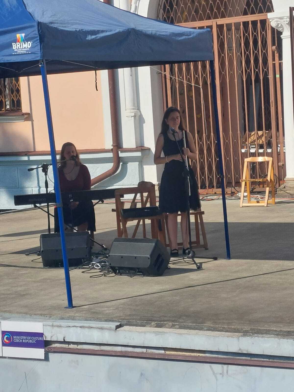 Obě mladé dámy přijaly naše pozvání a u příležitosti 31. ročníku festivalu Dny umění nevidomých a zároveň Kulturního léta Města Šumperk vystupovaly v Šumperku poprvé. Krásné zázemí letního amfiteátru nám poskytlo SVČ Doris Šumperk, které s námi na akci úzce spolupracovalo.