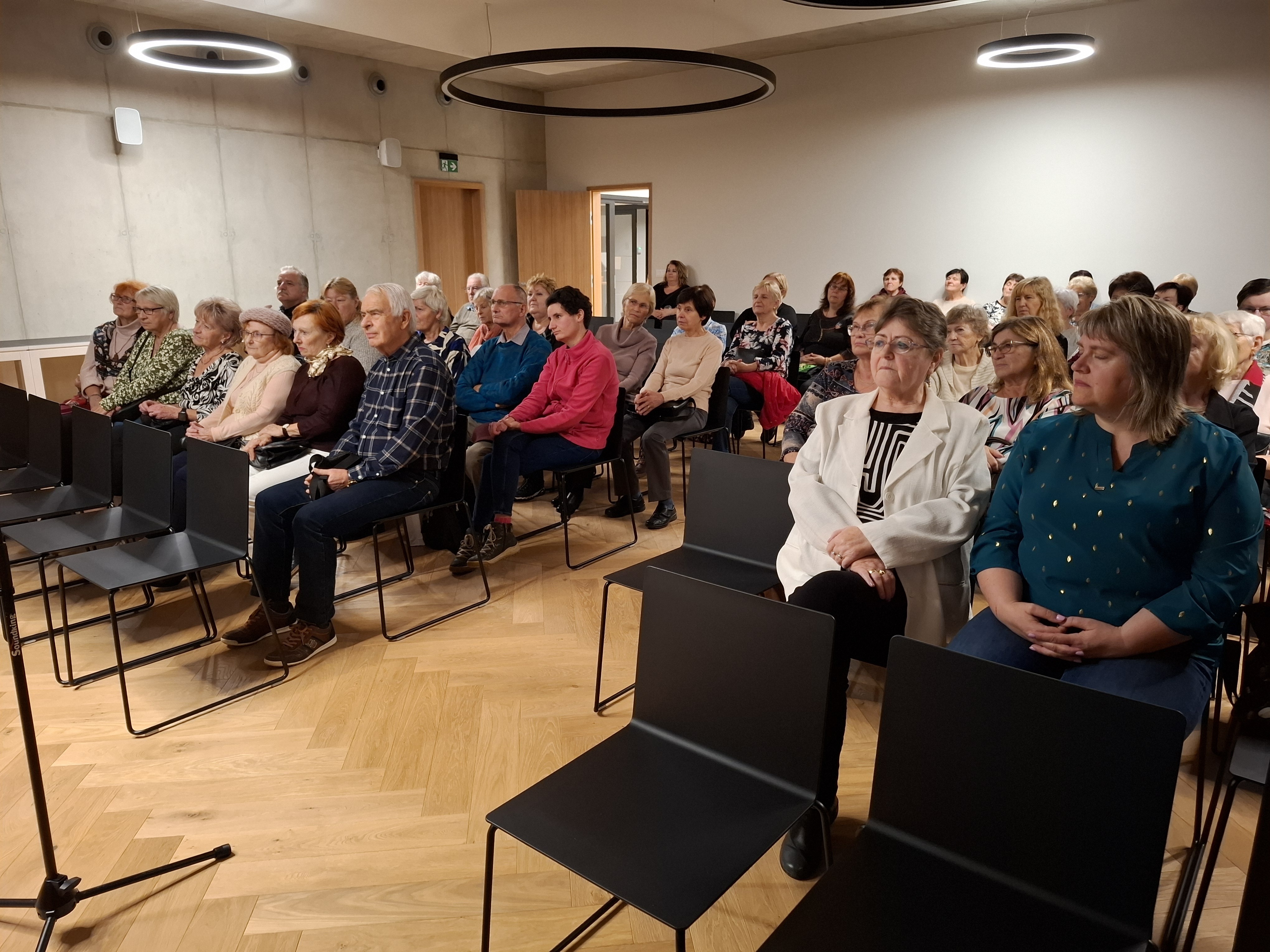 Radek Žalud měl středu 12. listopadu opravdu nabitou. Nejenže zvládl výchovný koncert dopoledne v Hanušovicích, ale i podvečerní pro širokou veřejnost v nově zrekonstruované Městské knihovně v Mohelnici. Veliký rozdíl byl v publiku – do mohelnické knihovny přišli vesměs diváci TV Šlágr. Radka Žaluda právě odtud nejvíc znají a cíleně přišli na tento koncert. Účast byla nad naše očekávání – téměř šest desítek účastníků „hltala“ jeho písně mnoha žánrů. V předsálí byla možnost prohlédnout si pomůcky i výrobky našich uživatelů a vychutnat si dobrou kávu z našeho pressovaru. Pokud máte možnost připojení na internet, je možné shlédnout asi šestiminutovou reportáž v mohelnické televizi, v sekci kultura s názvem: Hudební setkání s Radkem Žaludem v mohelnické knihovně. Odkaz zde: https://mohelnickatelevize.cz/kultura/2300-hudebni-setkani-s-radkem-zaludem-v-mohelnicke-knihovne