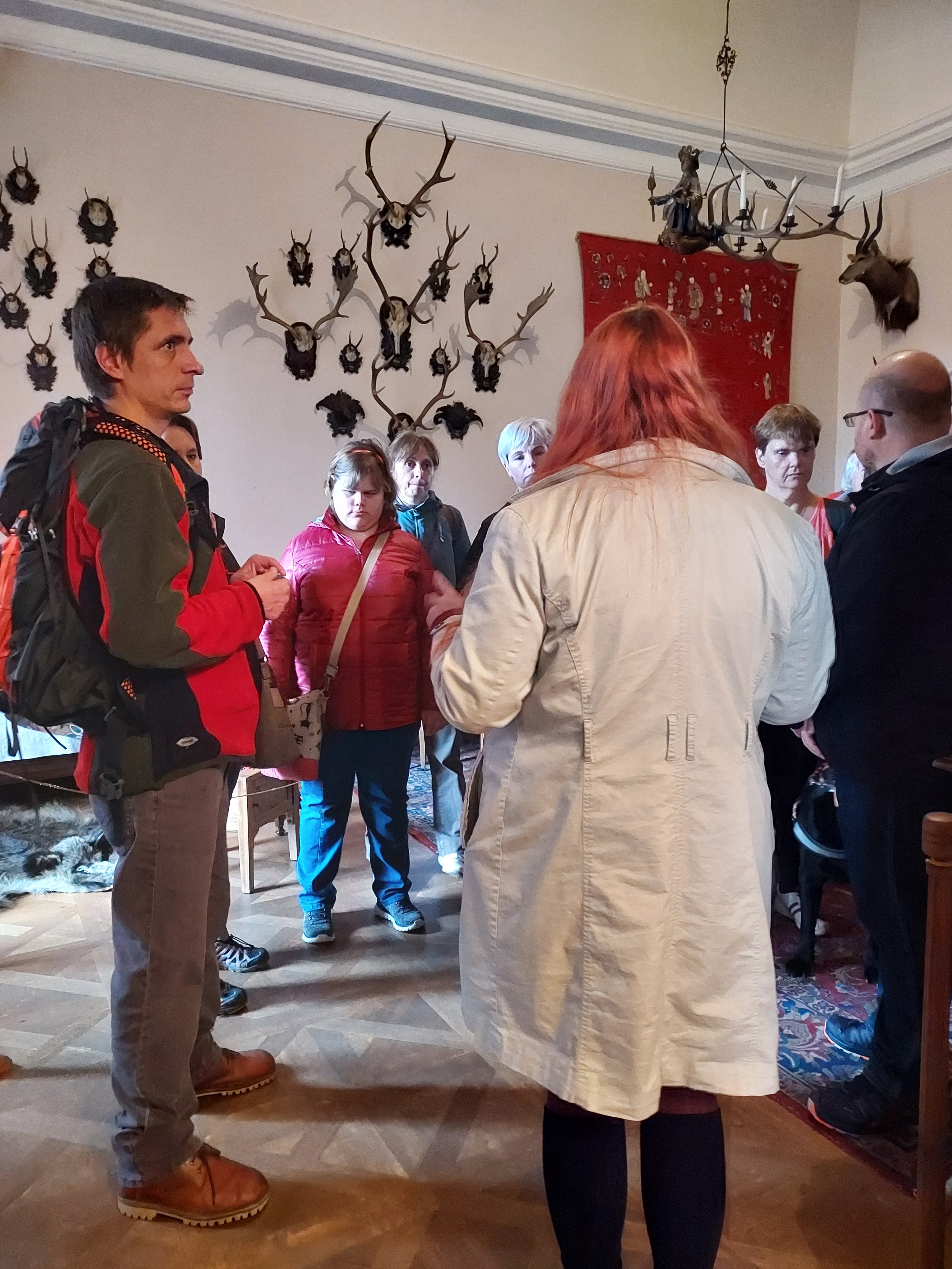 Druhý den byla naplánovaná cesta do Kunína, kde jsmě měli připraveny dva programy. Jednak prohlídku zámku a potom koncert v kostele, kde vystoupil nám všem dobře známý, Honza Jareš.