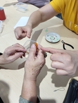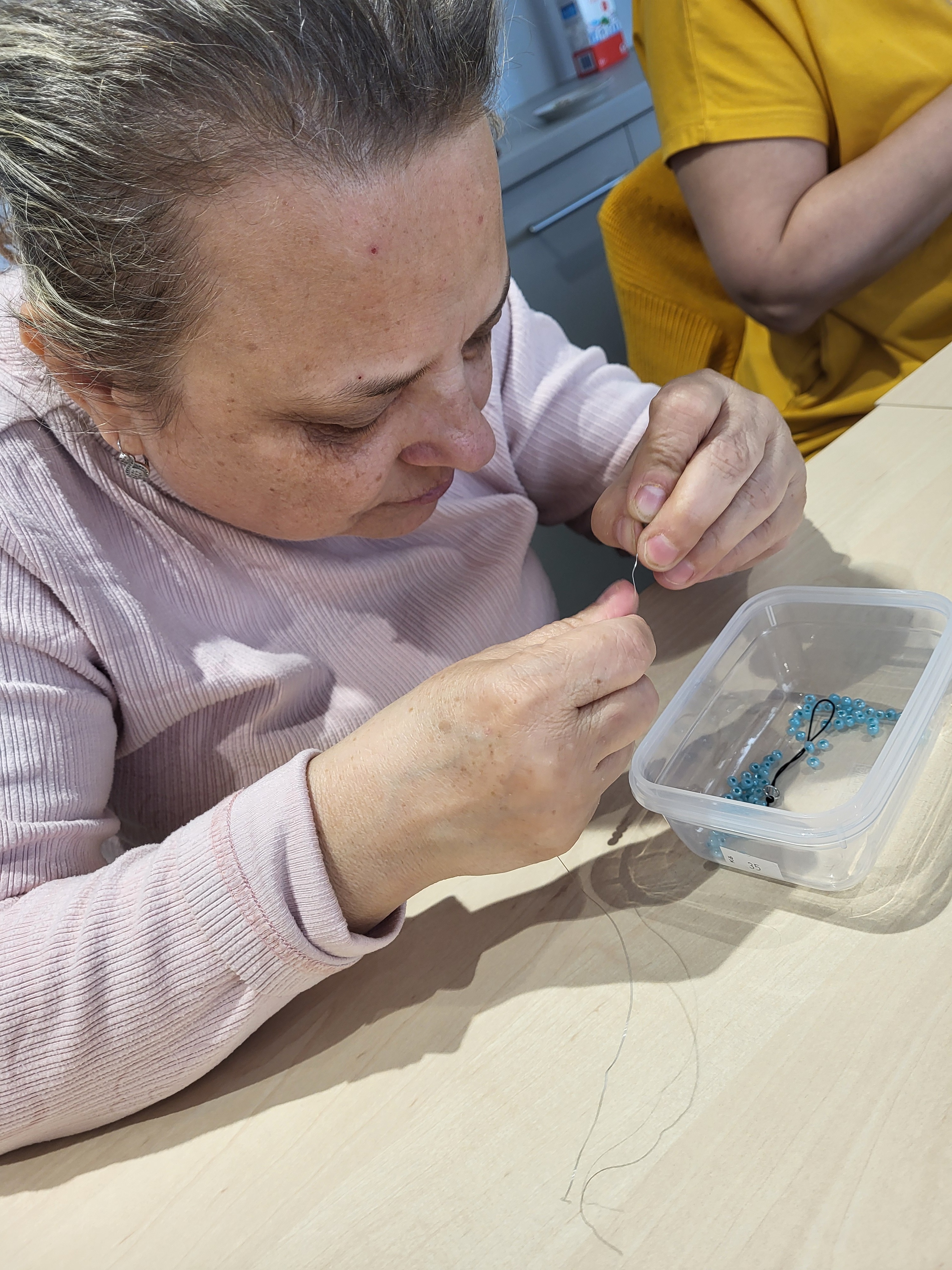 Na začátku setkání se všichni seznámili s pracovním prostorem, pomůckami i postupem výroby. Mnozí už měli s korálky zkušenosti, a tak si mohli připomenout dříve naučené techniky, zatímco zároveň objevovali nové způsoby práce s drátkem, skládání korálků i jejich barevné kombinace. Po celou dobu bylo k dispozici individuální vedení a podpora, díky čemuž se mohl každý zapojit vlastním tempem.