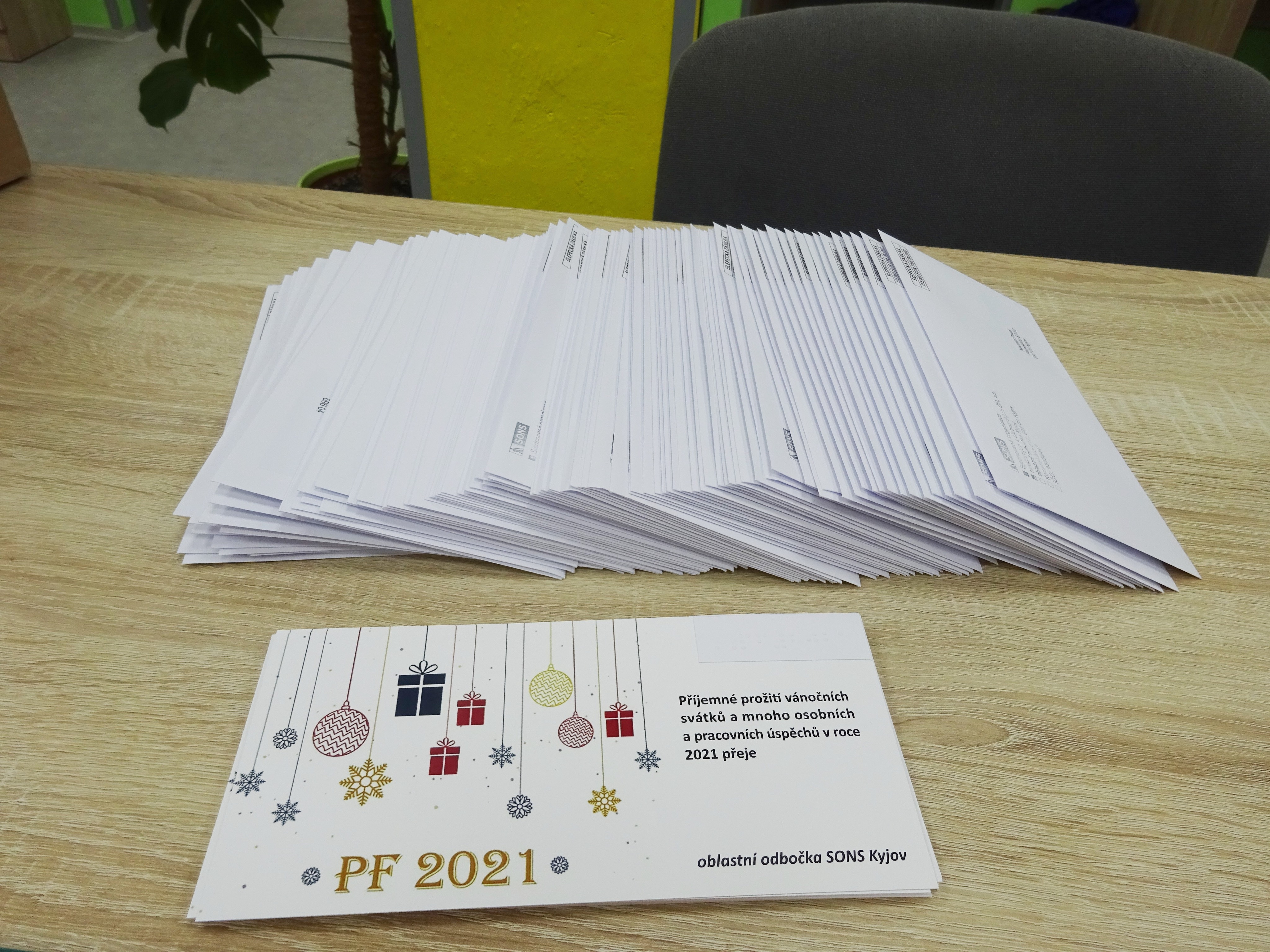 Letos nám toho nebylo dopřáno mnoho. Nebylo možné se ani sejít s našimi členy na vánoční besídce, kde si vzájemně popřejene hezké svátky, rozdáme dárečky, odměníme co se dá, vše zpestříme kulturou. Takže letos sice bez setkání, ale nechtěli jsme naše členy ochudit o to popřání. Každý proto dostal do poštovní schránky tištěné přání i v Braillově písmu a v další várce pak poštou šla dárkově balená bublinková obálka s malým dárkem - jak jinak, než že jsme rozdávali desinfekci, kterou nám obratem dodal Honza Pakoš z ústředí v Praze.