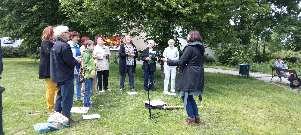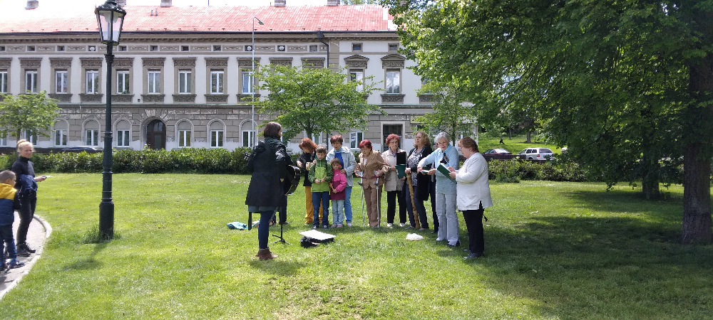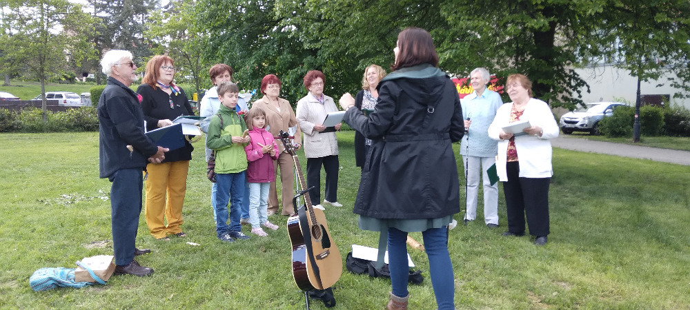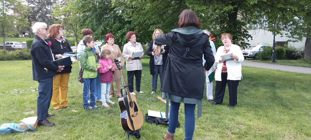 Přestože jsem osobně čekala hlavně stánek se sýry, protože můj vztah k sýrům vypadá asi jako výše zmiňovaná kapří závislost na krmení, i tak jsem byla ráda, že jsem přišla, viděla a slyšela. A to zejména, tedy když utichl divoký rockový rej, pěvecké hudební těleso „Sbor Fit senior“ pod vedením naší Radky Lienertové. Repertoár zahrnoval zejména starší a mnohým určitě známé písně jako: „Muzikanti, co děláte, Rána v trávě, Ječmínek, Žena v domácnosti, Děti z Pirea,“ plus lidovky všeho druhu.