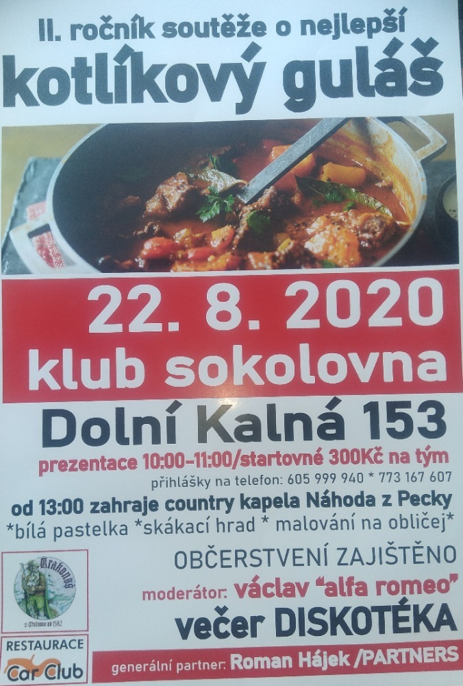 Přijďte nás podpořit návštěvou stánku SONS ČR, z. s. oblastní odbočky Jičín na 11. ročníku Kotlíkového guláše v Dolní Kalné.