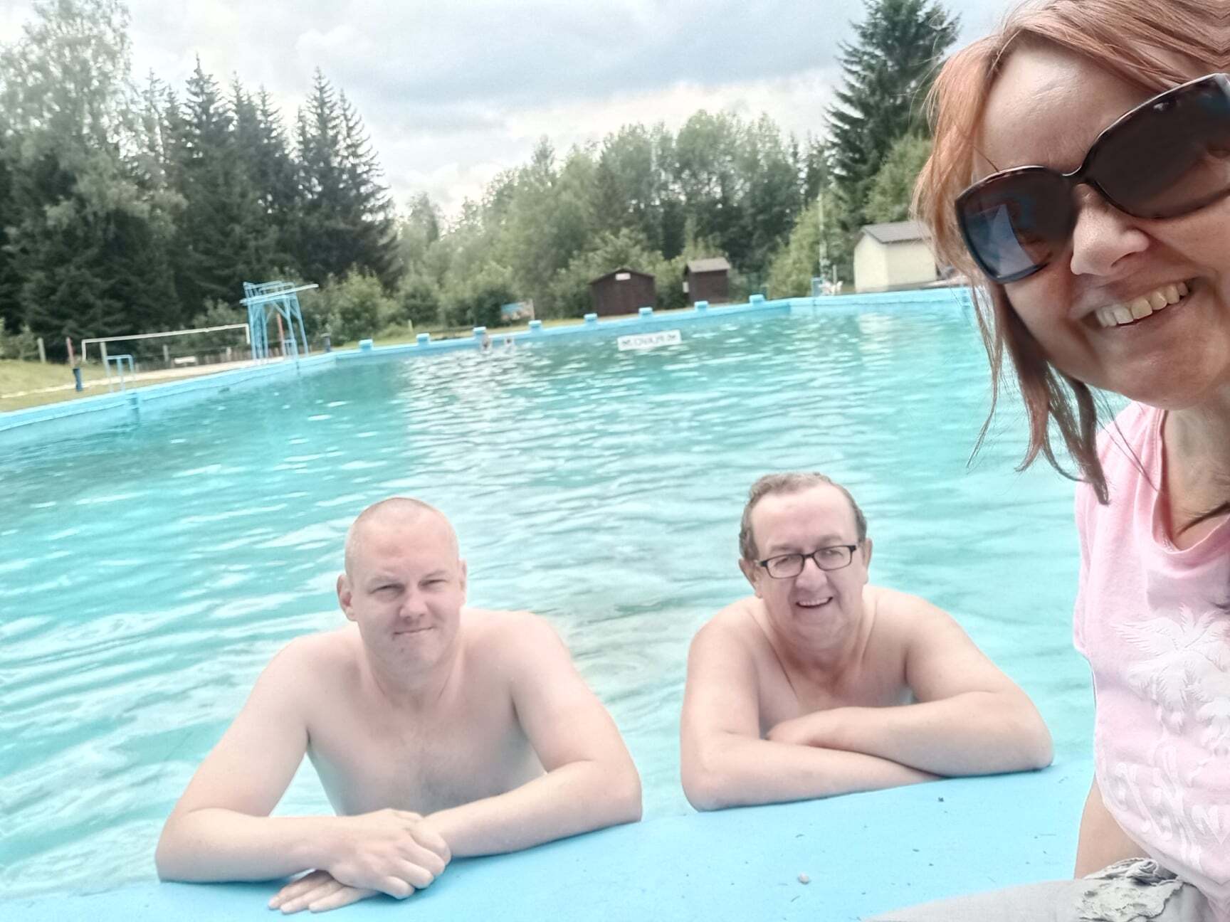 V noci před akcí výrazně pršelo, což bohužel odradilo většinu klientů, nakonec jsme dorazili alespoň tři. Přes den už bylo příjemné slunné počasí, i teplota vody byla optimální. Strávili jsme zde příjemné dopoledne i odpoledne s celkovou útratou za pár korun, ceny zde jsou velice příznivé. Došlo i na výuku plavání pro neplavce. Původně jsme měli naplánované na srpen dva termíny, ale ten druhý nám opět nepřálo počasí, snad se v září zadaří o něco lépe, v plánu jsou dvě návštěvy.