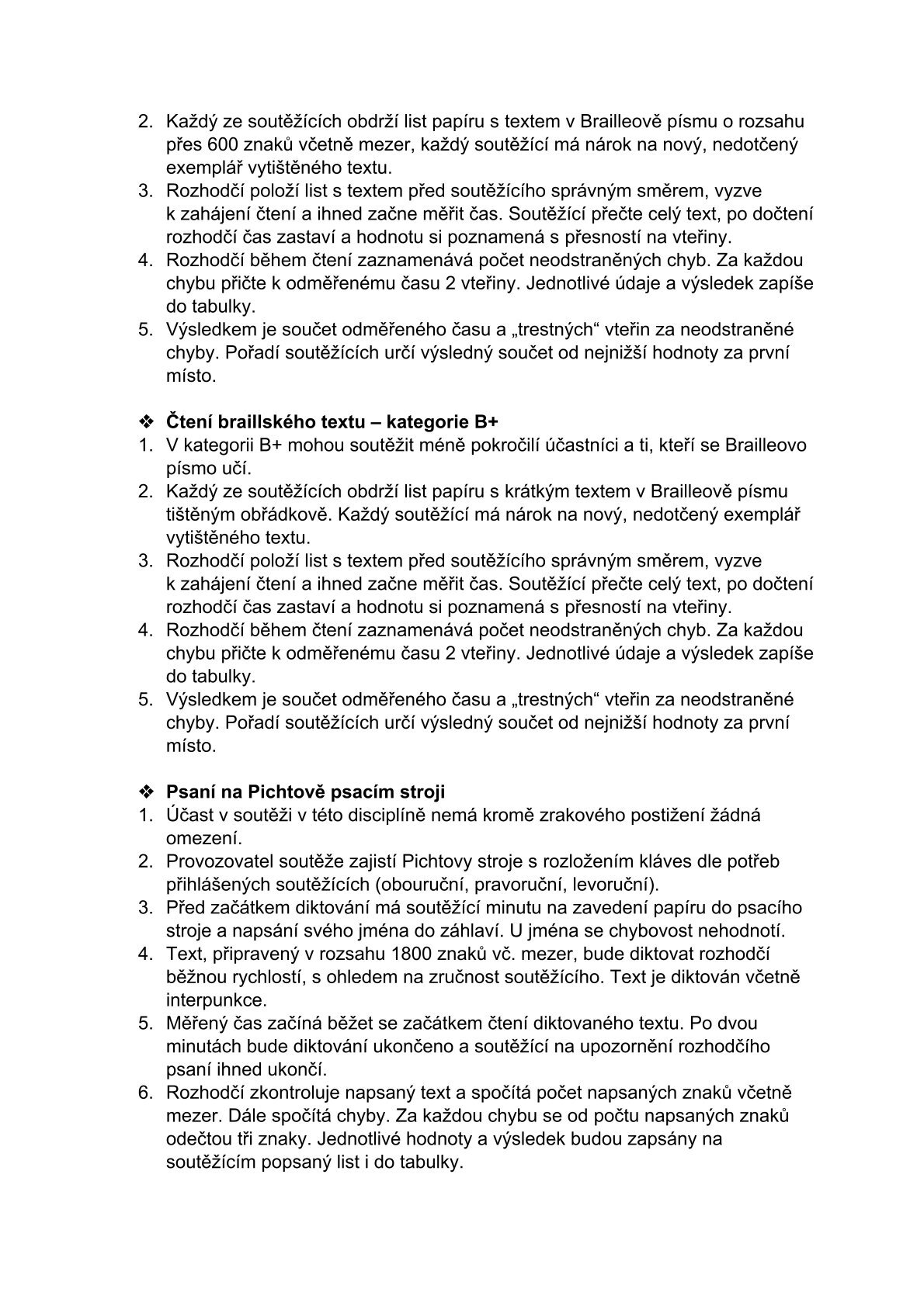Krajské kolo soutěže ve čtení a psaní Brailleova písma