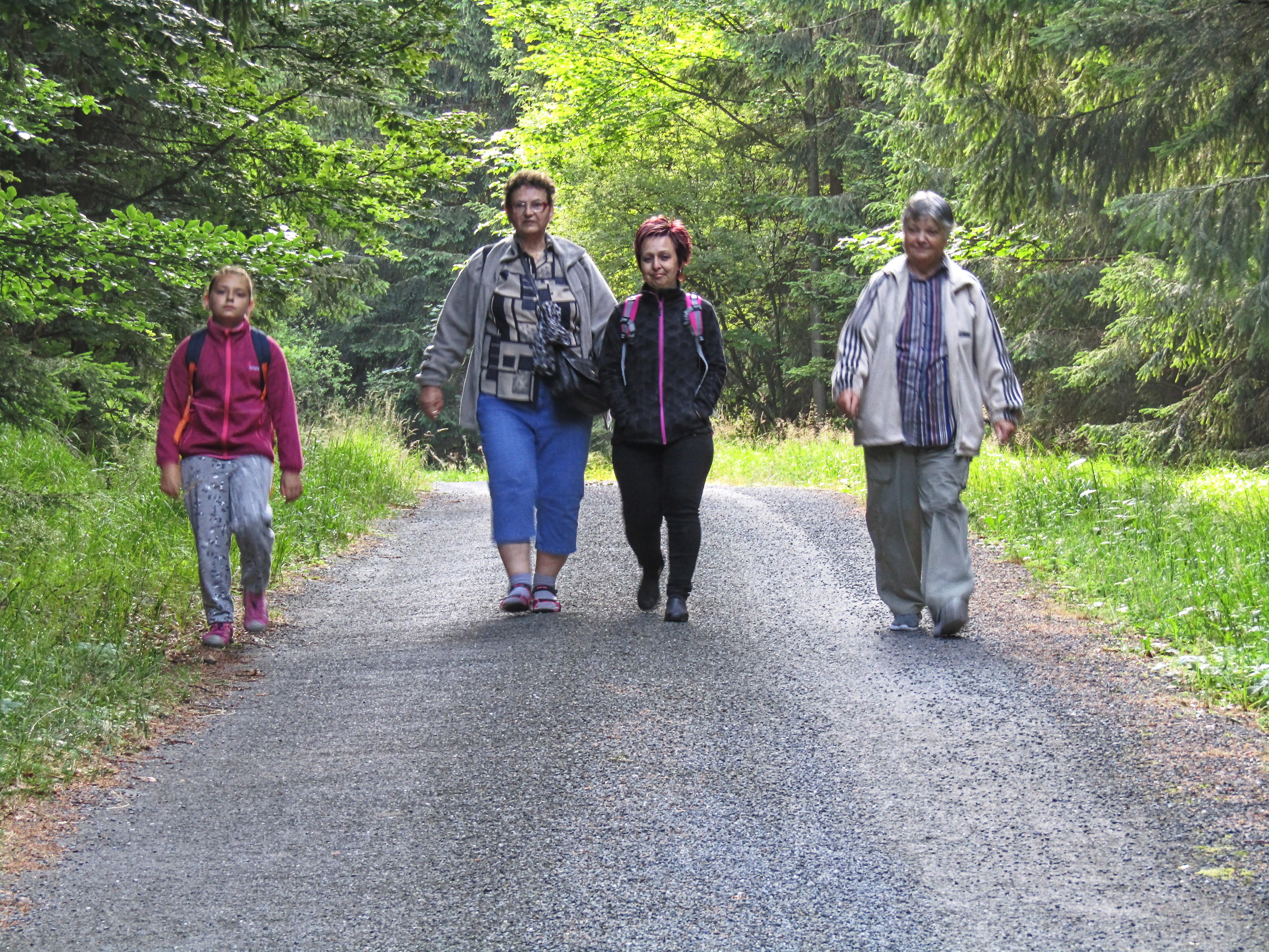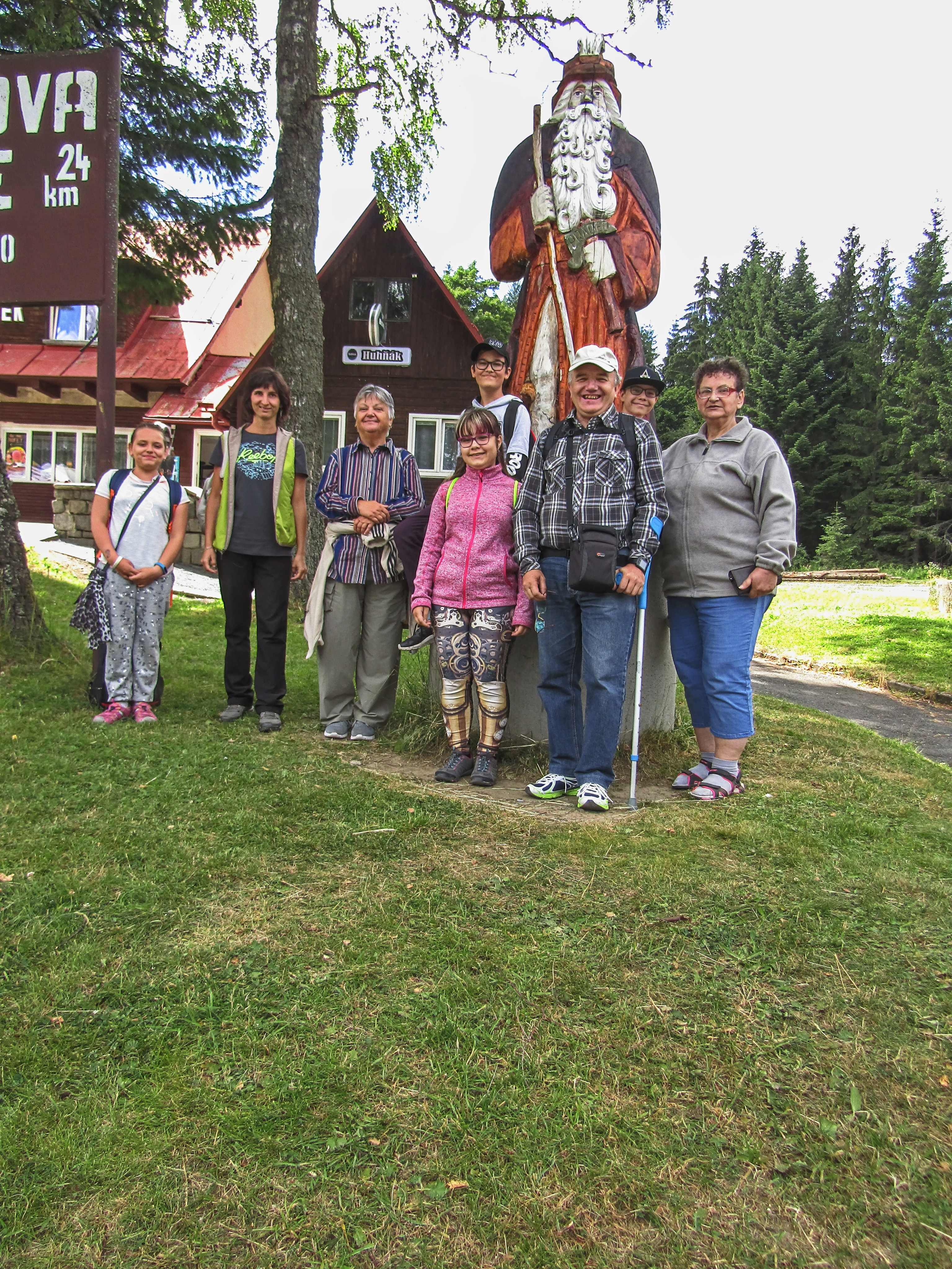 I když se jednalo o turisticky nenáročnou vycházku bez velkého stoupání, přesto jsme nachozené kilometry v nohách cítili. A tak není divu, že když se mezi stromy začala objevovat chata, radostí všichni jásali.