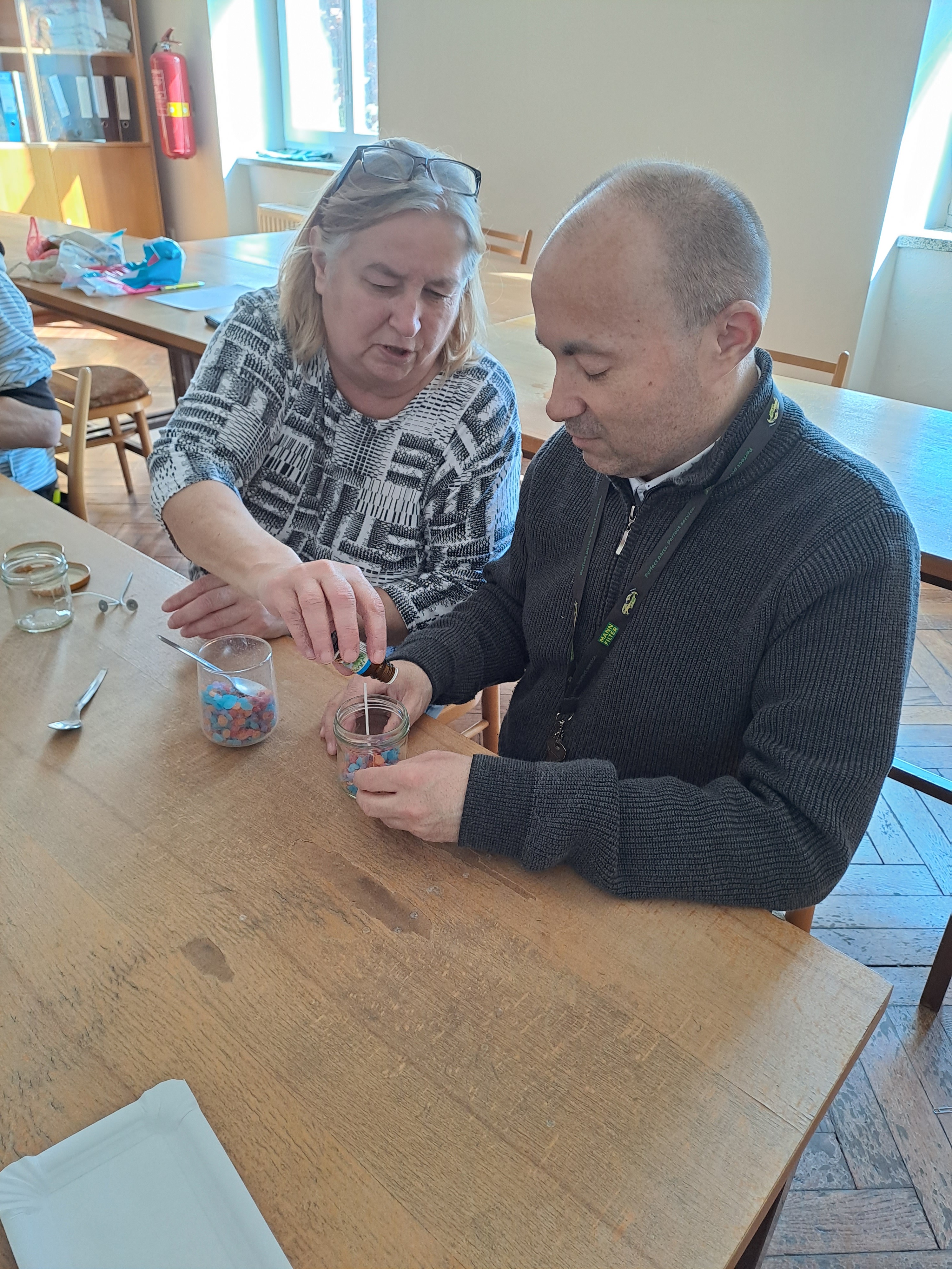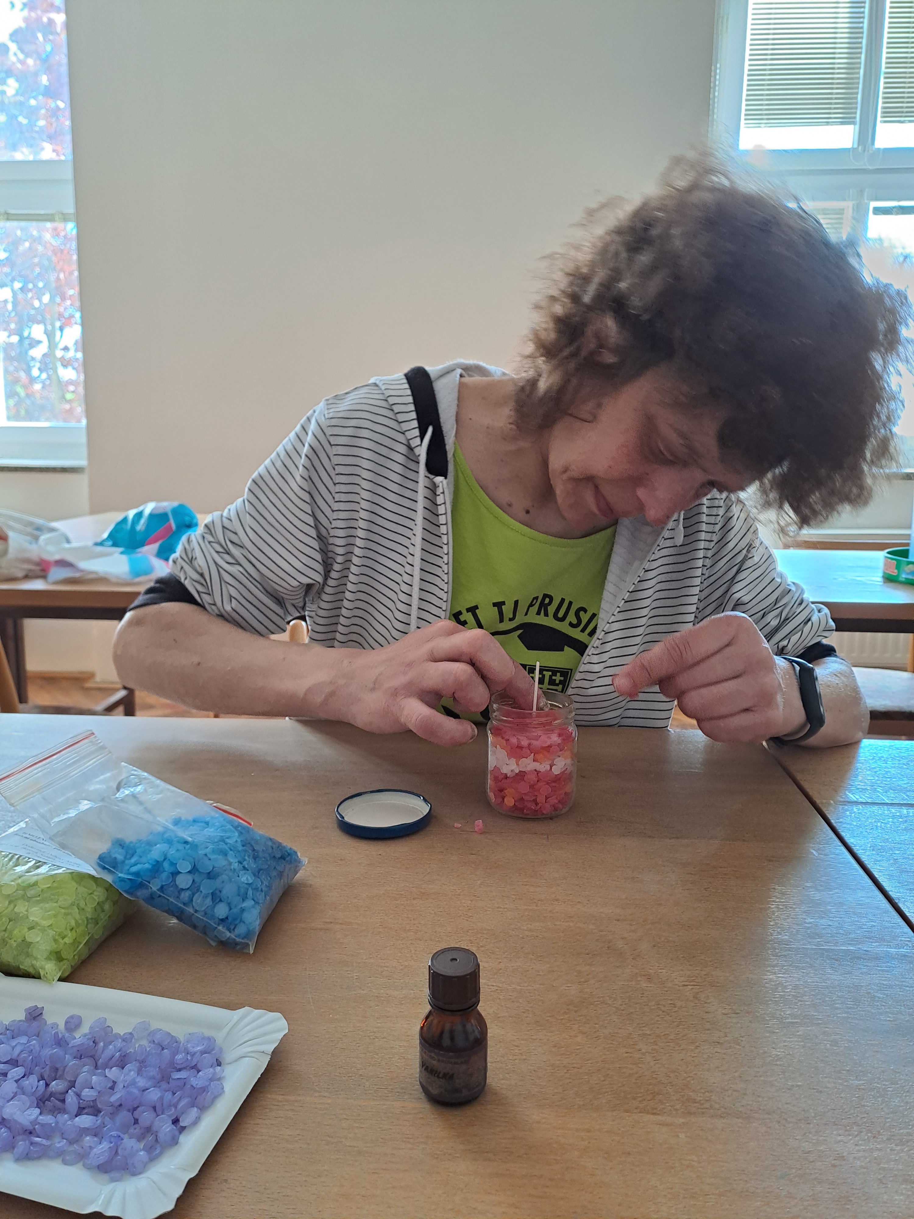 Každý z účastníku našeho setkání si pak tvořil svíčky vrstvením či mícháním barevných voskových peciček dle své nálady a oblíbenosti barev a ke každé vrstvě přidal i pár kapek vonné esence.