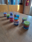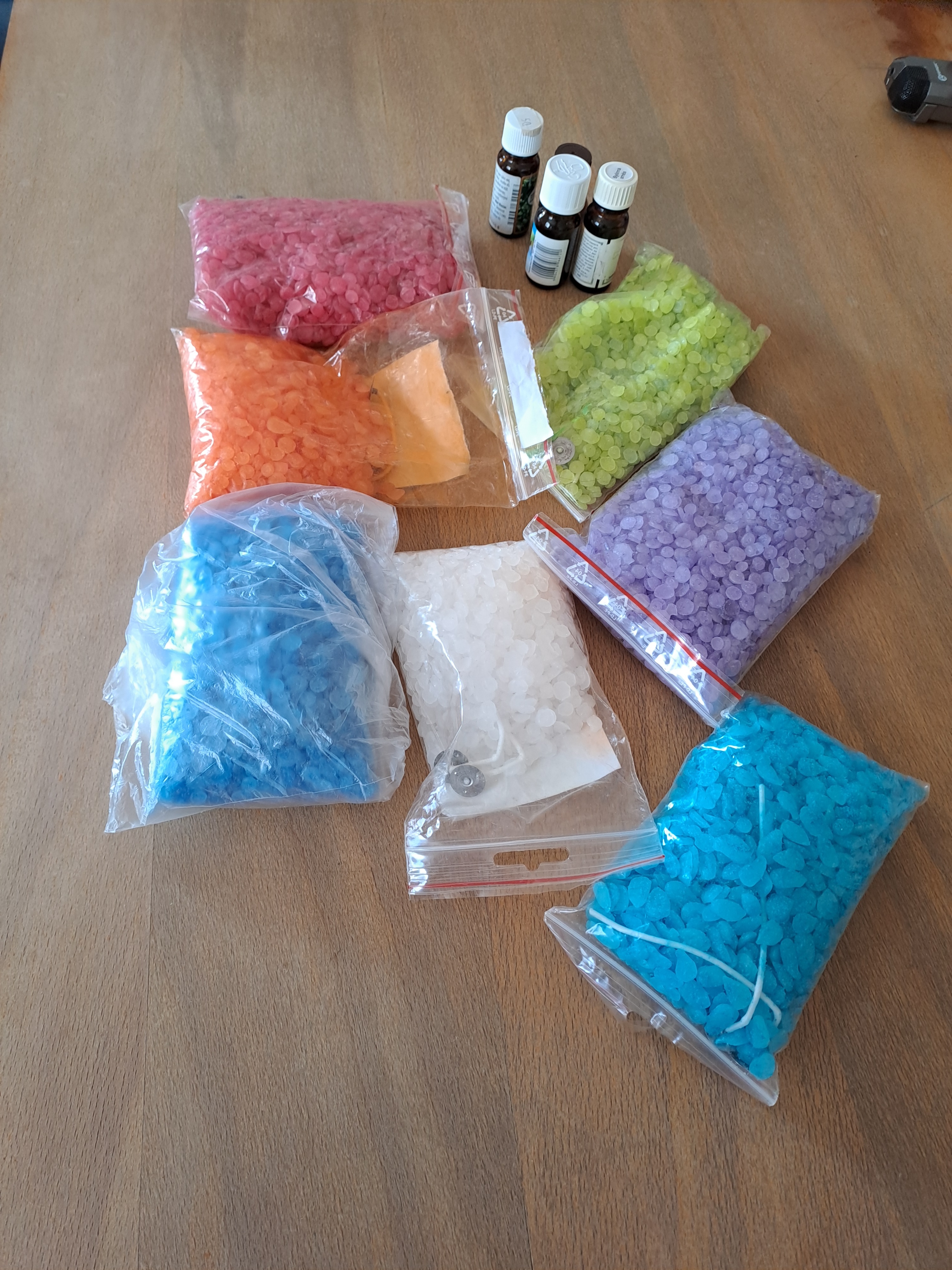 K té nám posloužily malé skleničky, různobarevné voskové pecičky, knoty a různé druhy vonných esencí.