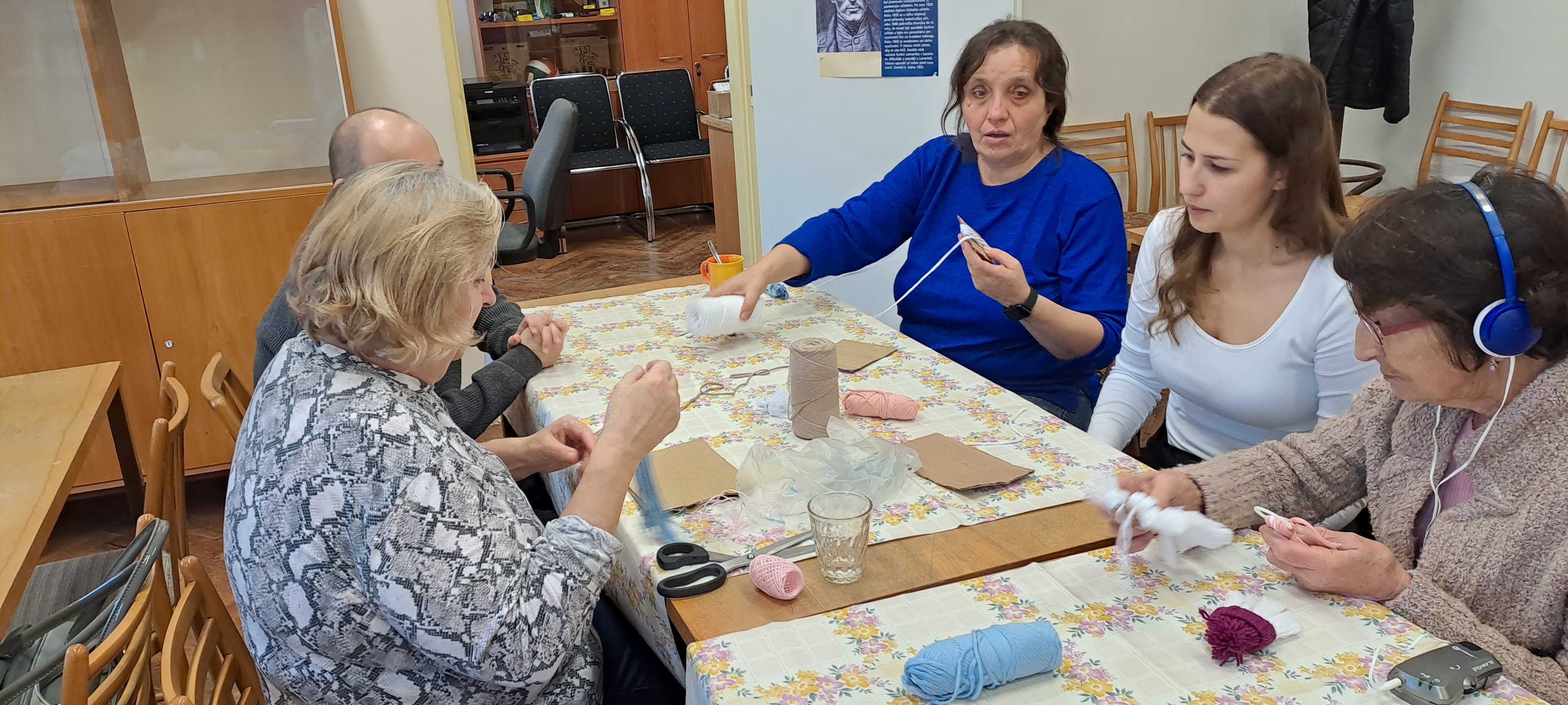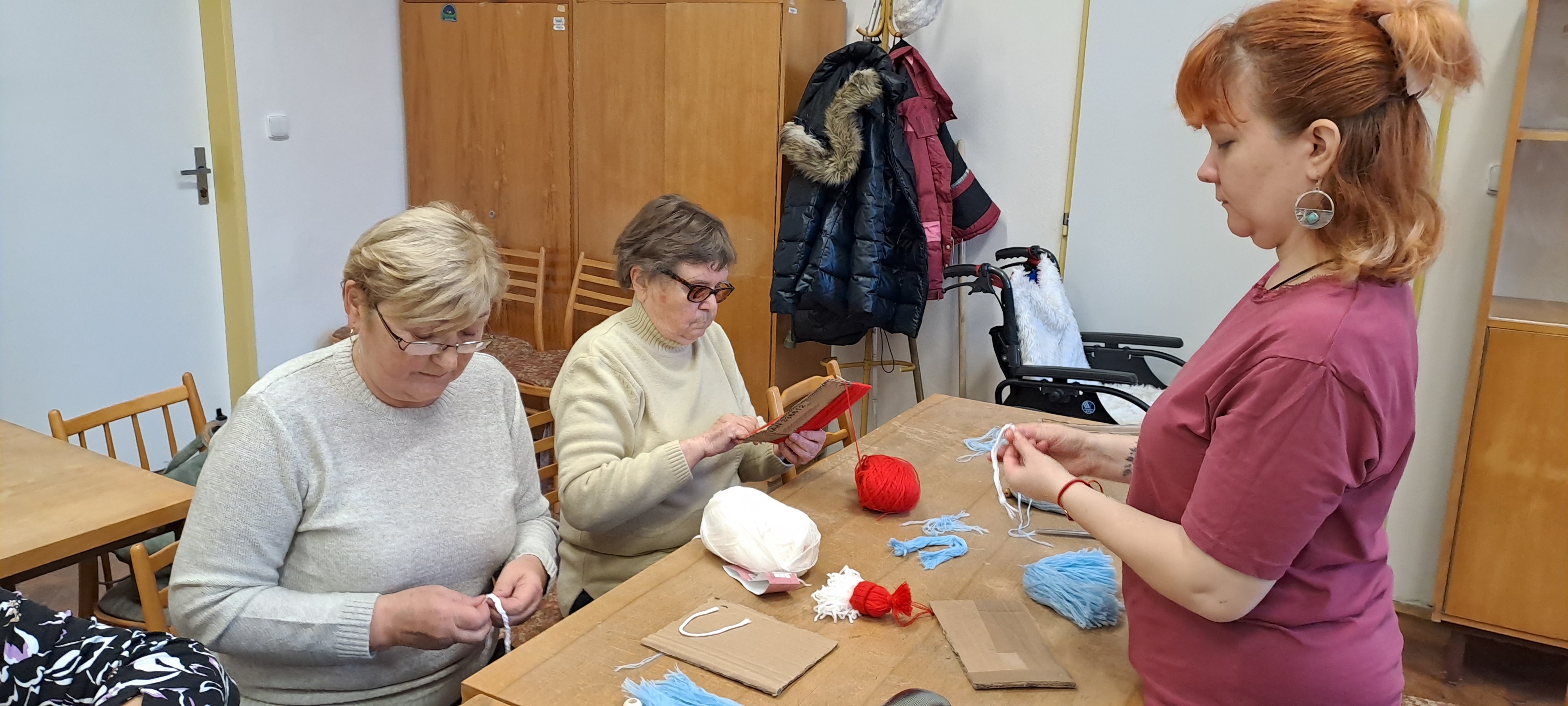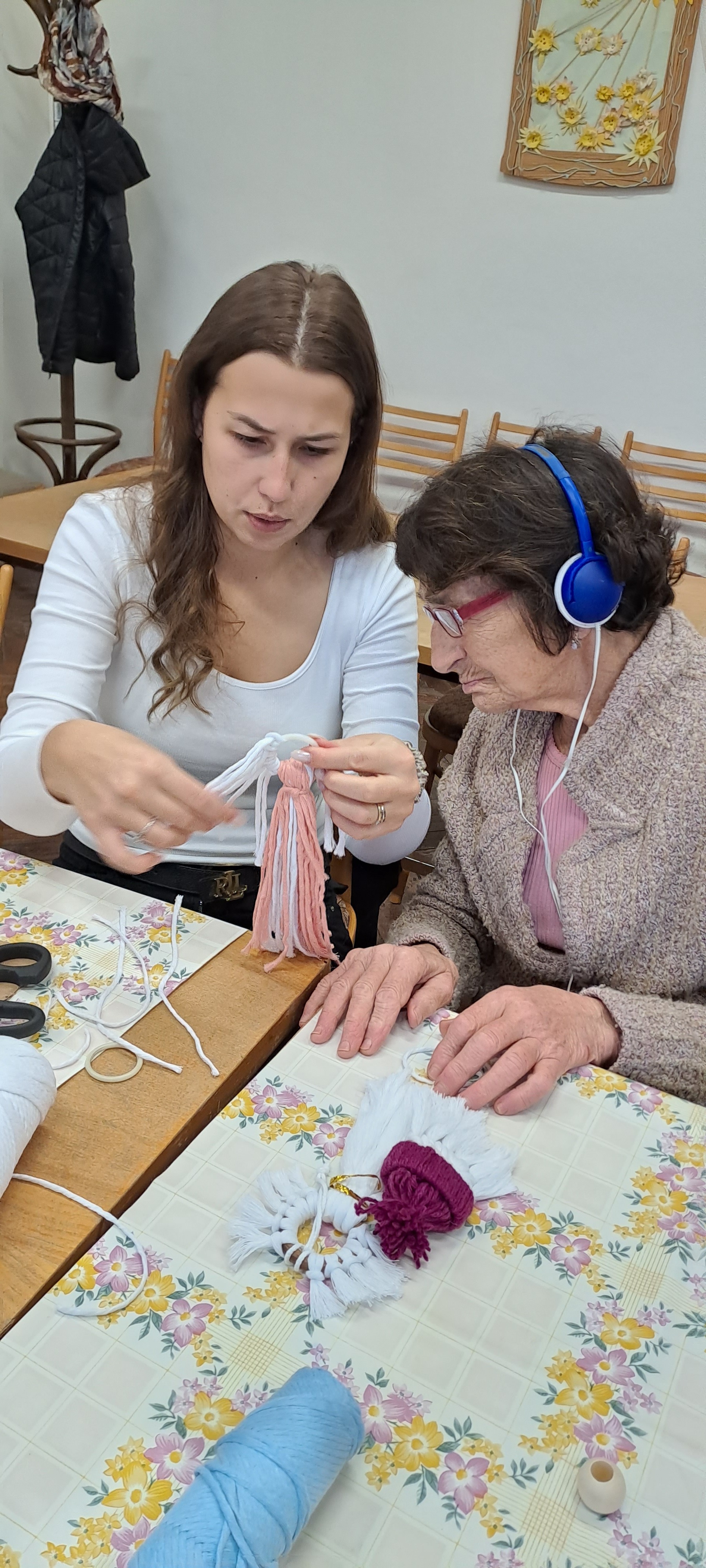Po nějaké době jsme se opět vrátili k základům techniky macramé – drhání a s využitím vlny, macramé šňůry, kroužků na záclony a dřevěných korálků si vyzkoušeli tvoření dekorativních andělíčků a skřítků.