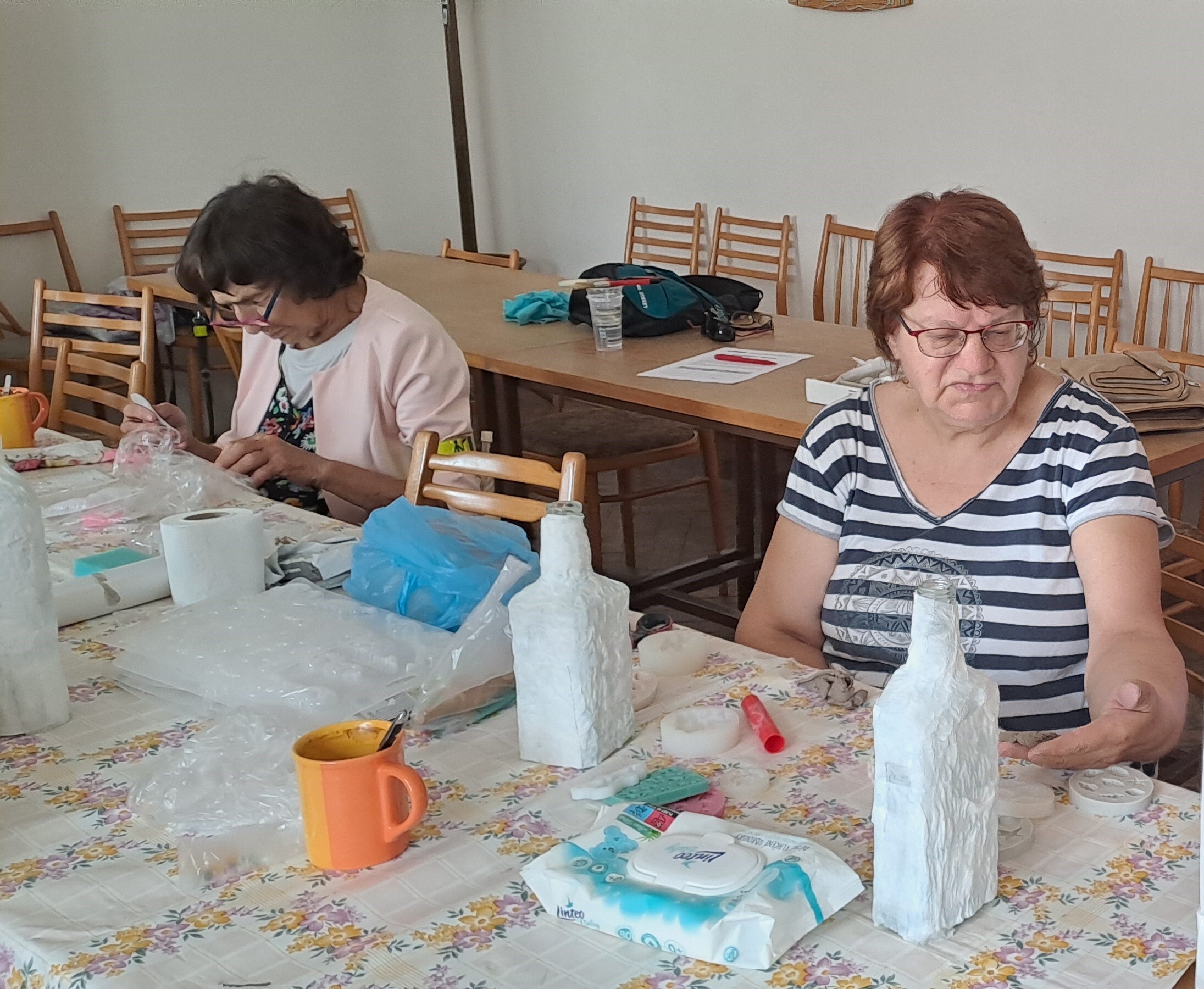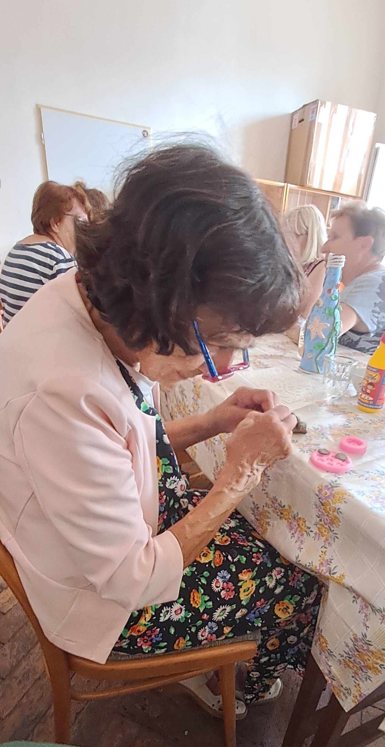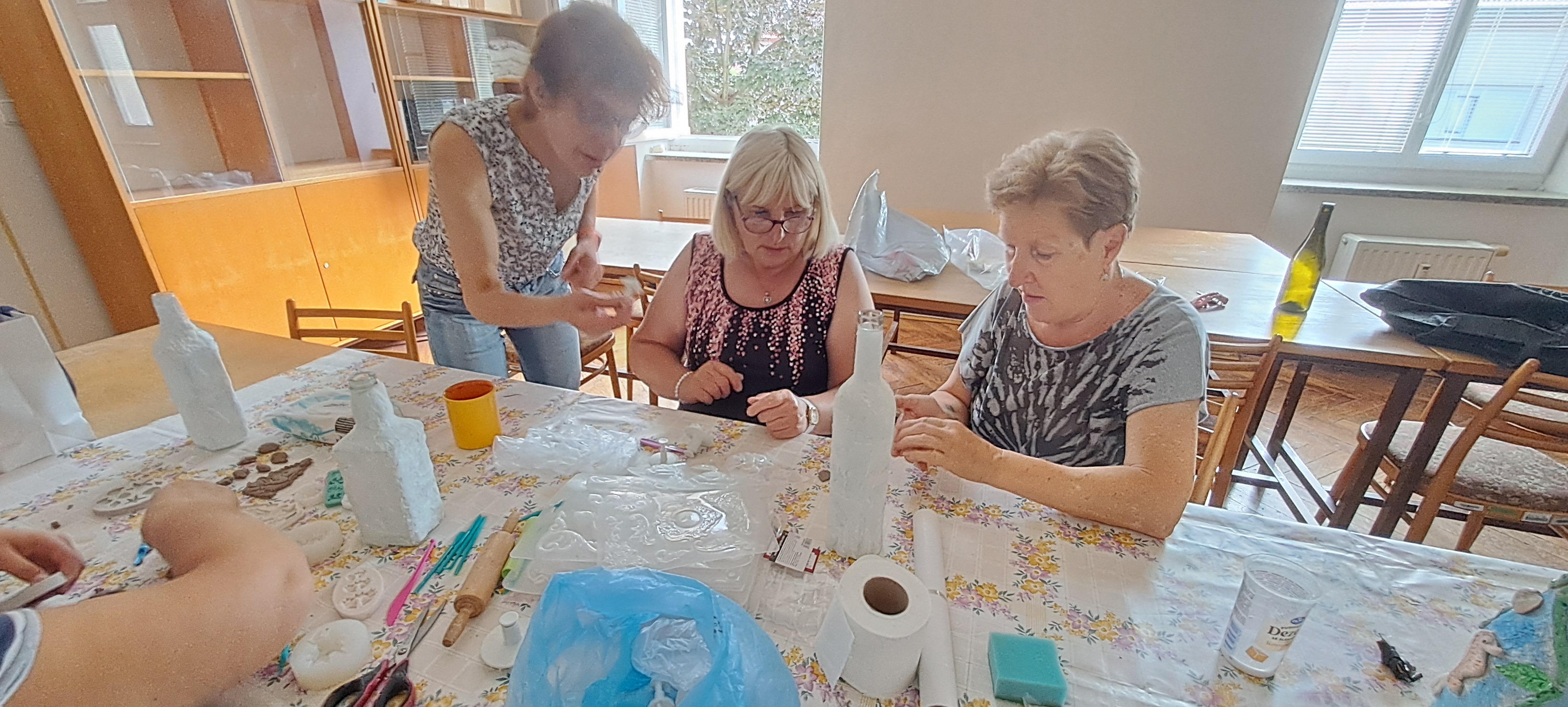 Tentokrát jsme se věnovali výzdobě sklenic od vína a zavařenin, které jsme polepili tenkým ubrouskem. Dále jsme tvořili ozdoby ze samotvrdnoucí hmoty. Měli jsme k dispozici silikonové formy rozmanitých tvarů, tak si každý mohl vybrat dekoraci dle vlastního vkusu. Ozdoby jsme přilepili na připravené sklenice.