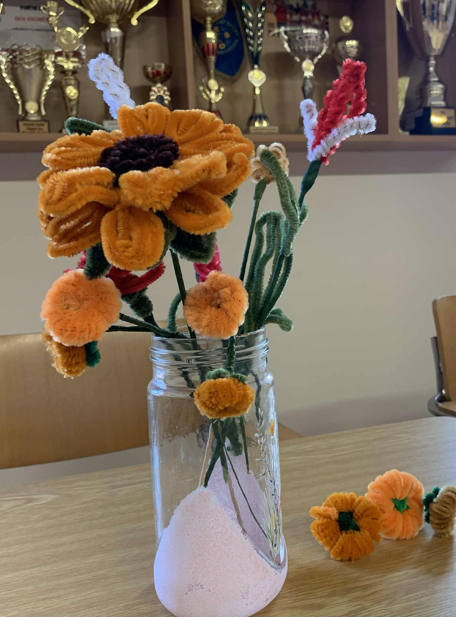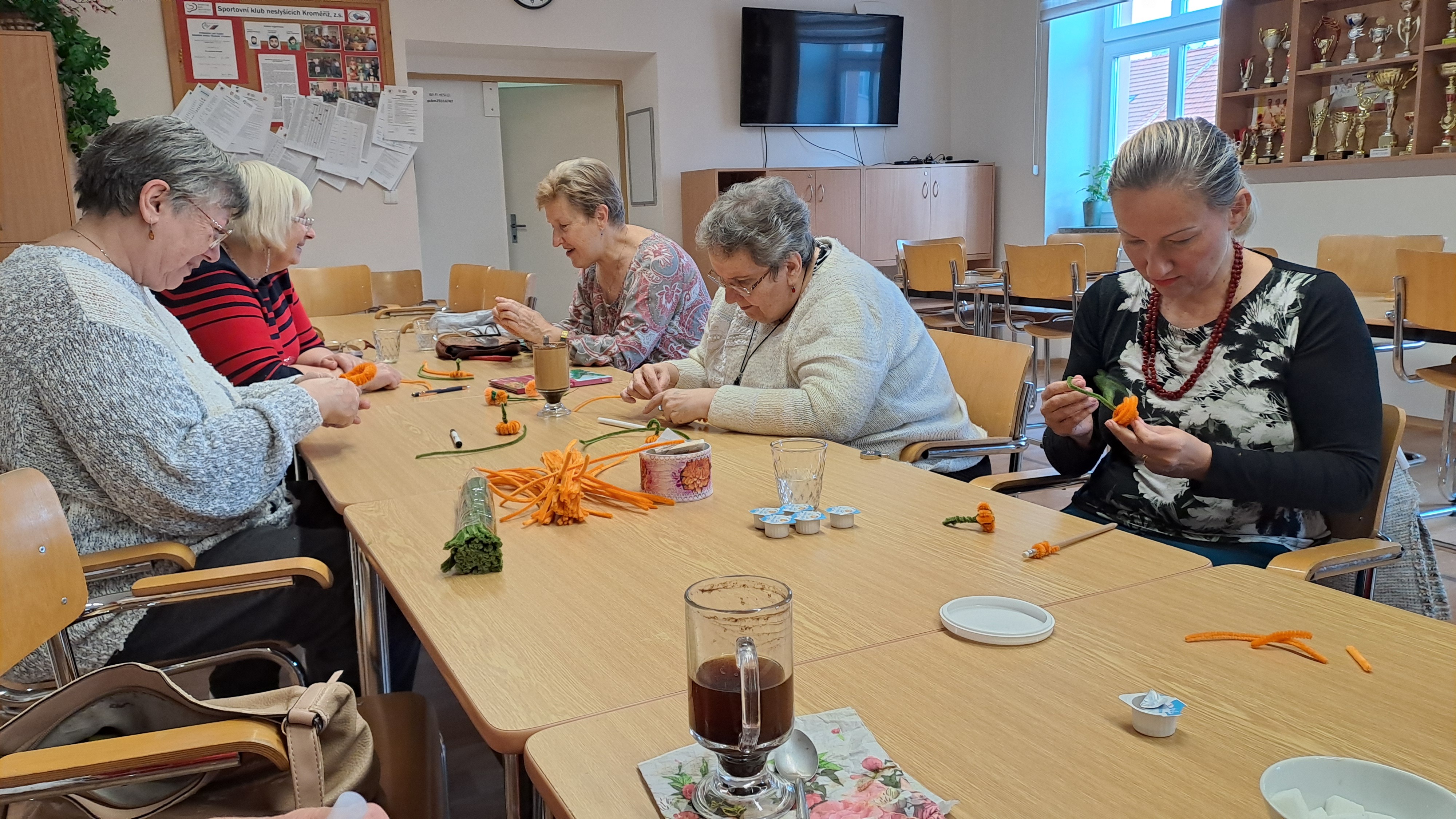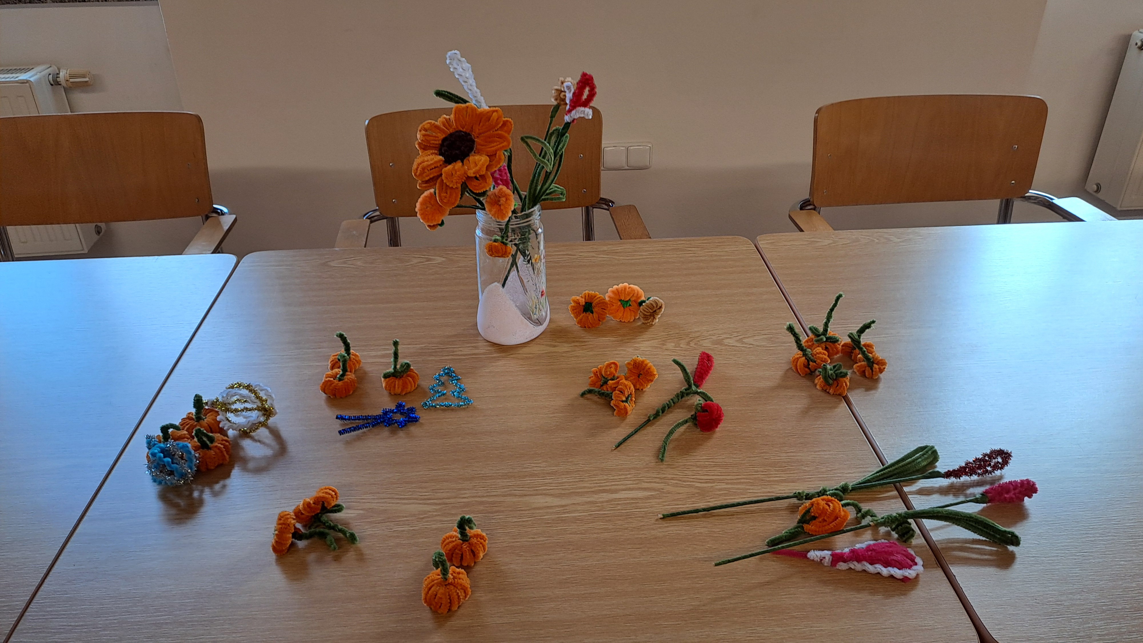 Po zvládnutí základních technik jsme se pustili do tvoření drobných dekorací, květů a dýní. Jak se nám práce dařila, při níž jsme si výborně procvičili drobnou motoriku prstů, je vidět na našich fotografiích.
