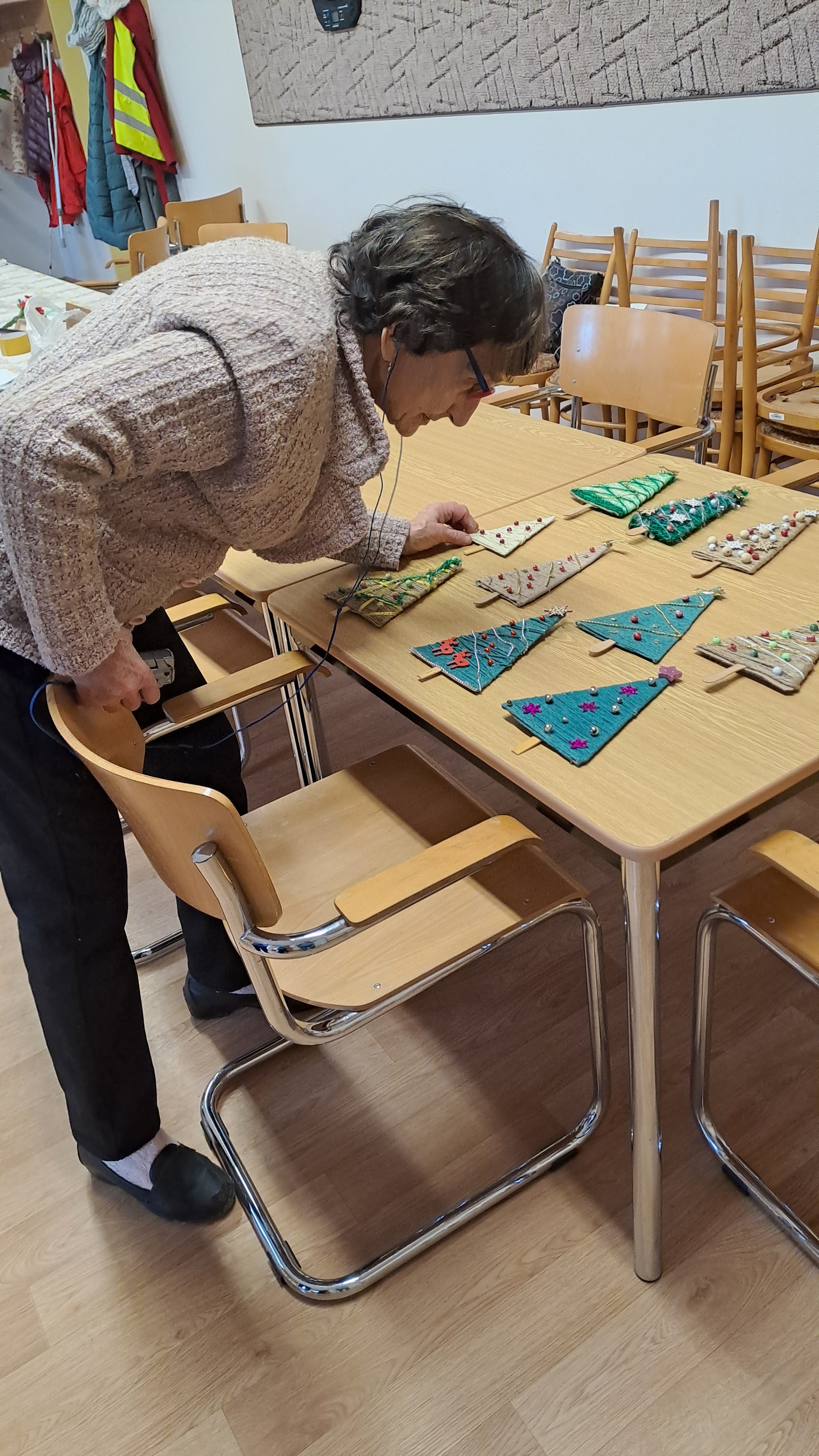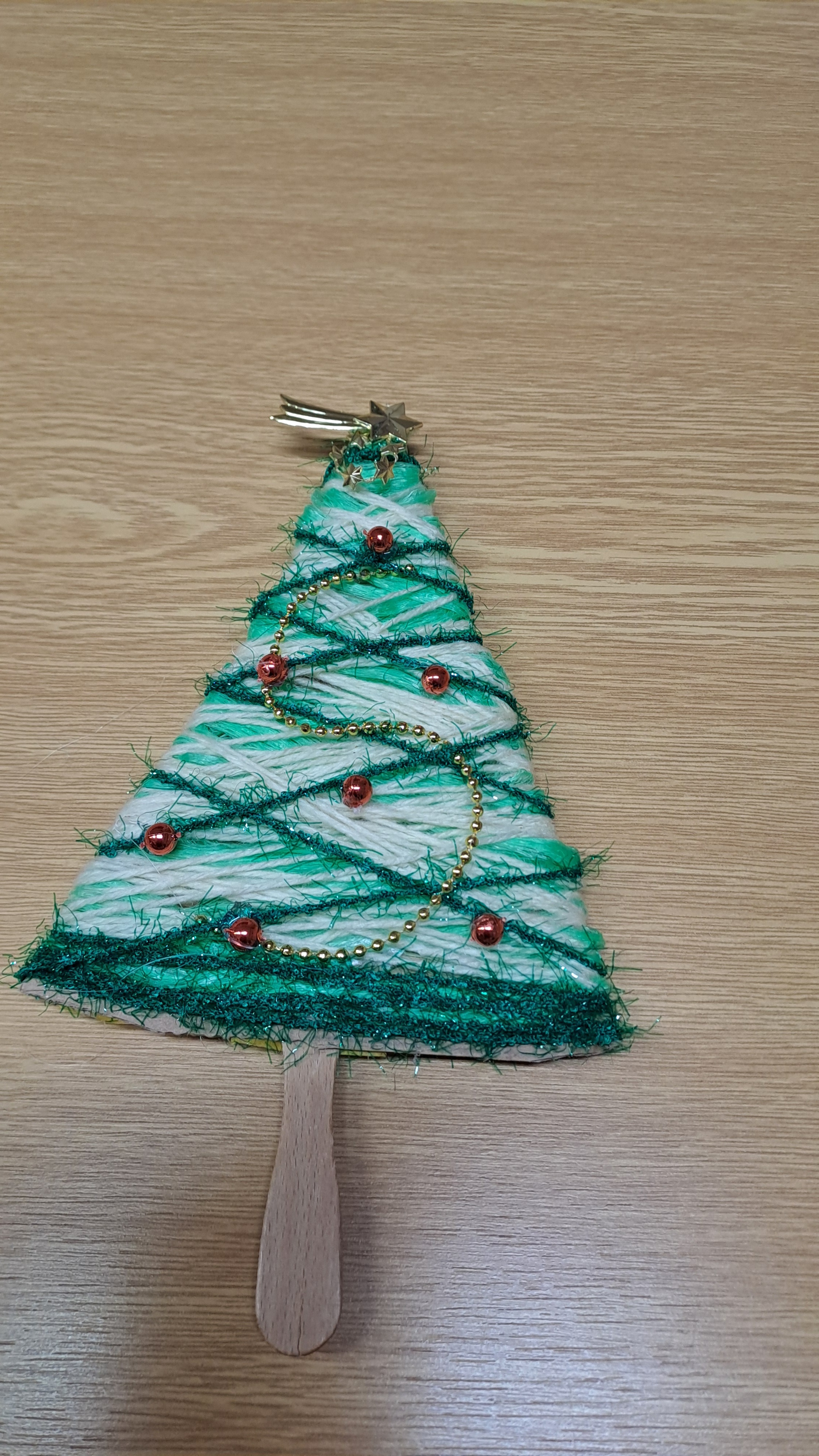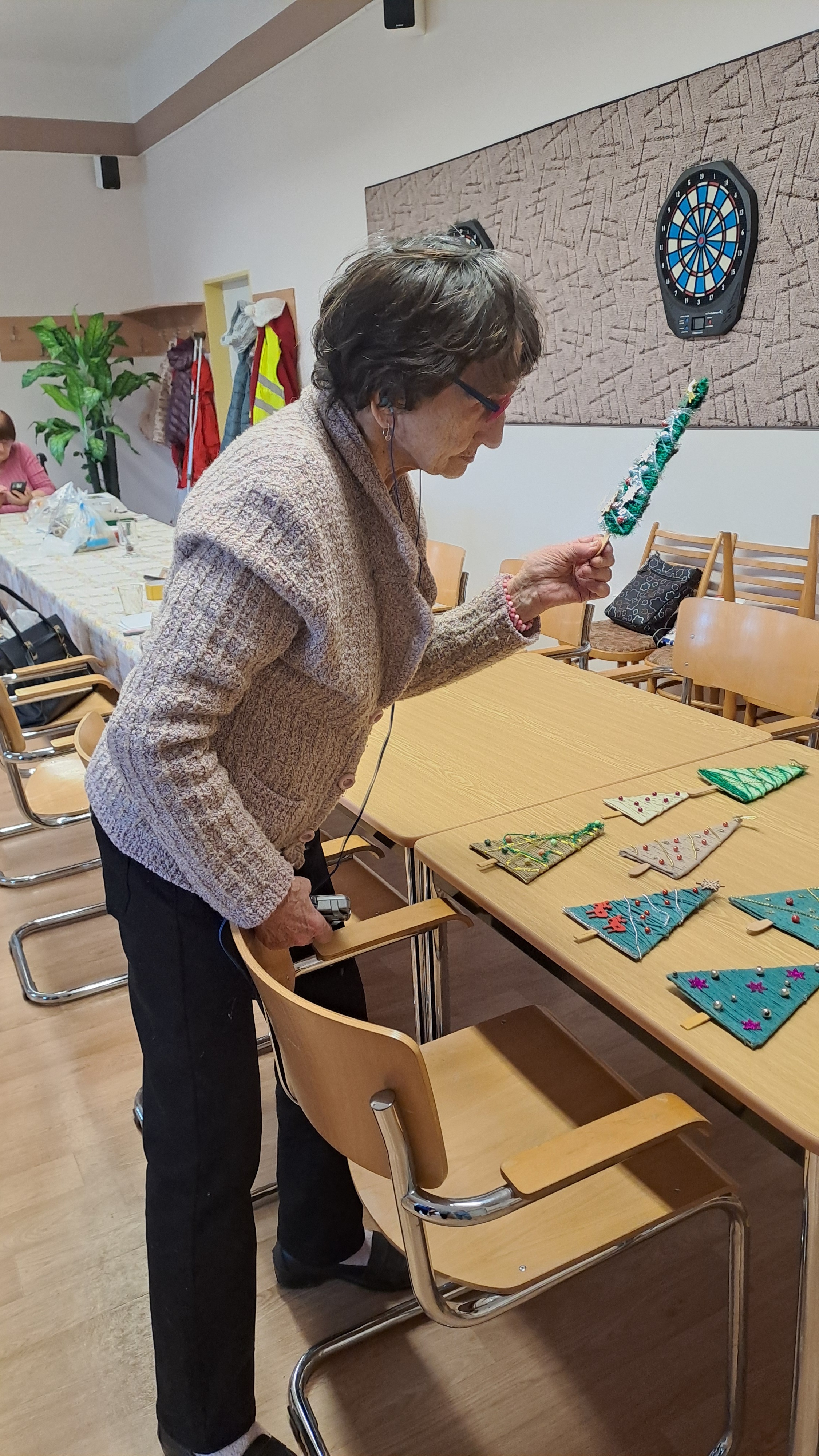 Poté jsme se pustily do kreativního tvoření, které nás už trochu vánočně naladilo. Vyráběly jsme vánoční dekorace: kartonový stromek jsme obmotávaly přízí a následně jsme jej ozdobily podle vlastního vkusu.