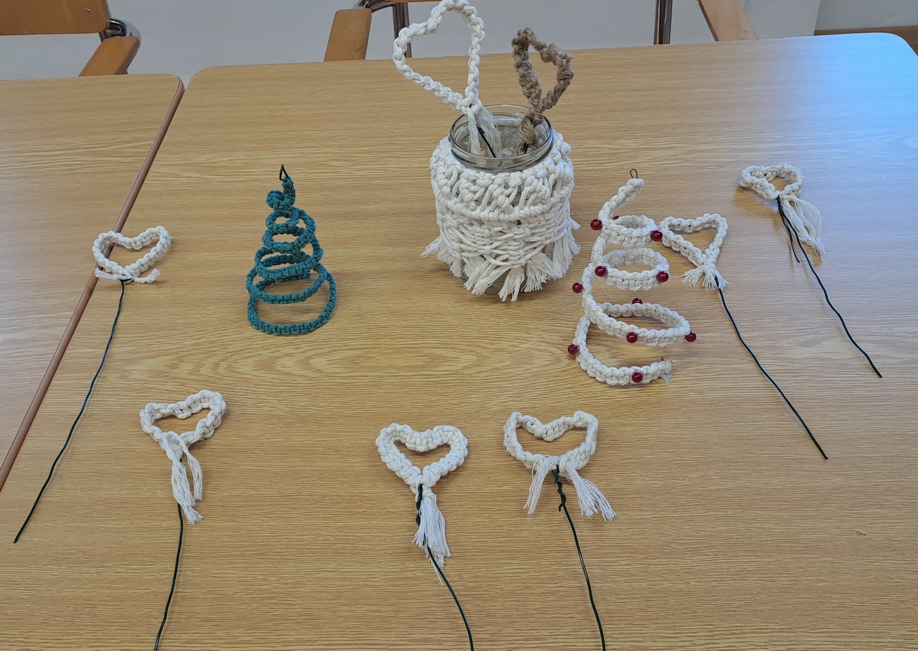 z nich jsme si pak s pomocí drátu vyrobili dekorace v podobě srdíček.
