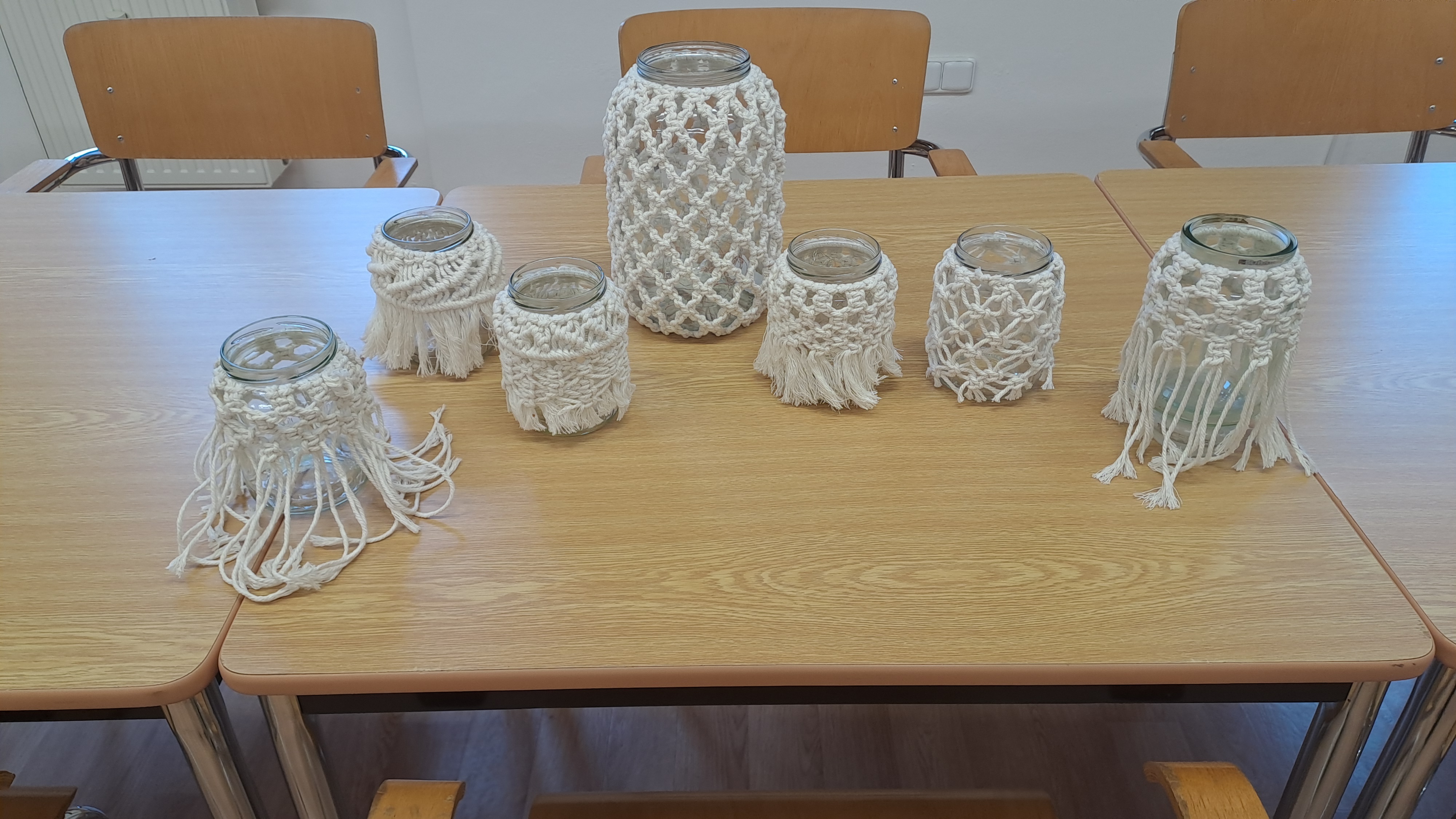 Společně jsme si připomněli uzly z minulého kreativního setkání a s chutí se pustili do další tvorby. Tentokrát jsme si vlastnoručně opletli sklenice a proměnili je v originální dekorace, které rozzáří každý interiér.