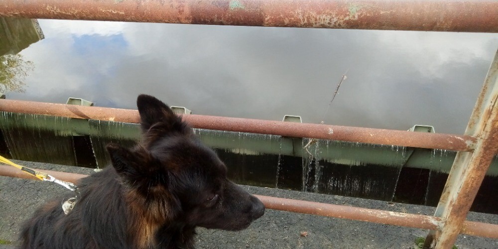 "Copak jsem nějaká Viktorka, abyste mě fotili u splavu?" Hudruje ovčák Chagir a na ten splav se kouká pěkně svrchu.