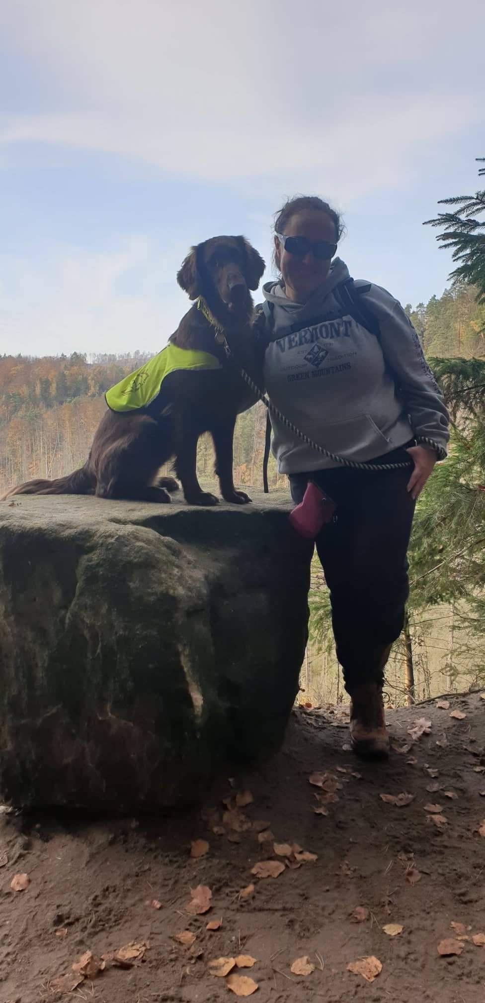 Možná, že z fletičky Kairo jednou horolezkyně bude, zatím jí ale stačí nechat se vyfotit na velkém balvanu. A panička Katka to jistí.