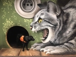 "Jsem malej, ale statečnej!" Holedbá se Kliff. Vypadá to, že vylézá z myší díry a hodlá si to vyřídit s velikou zubatou kočkou. Ale nebojte se, jde jen o Muzeum iluzí :-)