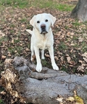 Labrador Charlie při canisterapeutické zkoušce - polohování.Labrador Charlie při canisterapeutické zkoušce - polohování.