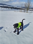 Na cestě nás zastihla i chumelenice. Malý labrador Ingo viděl sníh nejspíš poprvé ve svém štěněcím životě.