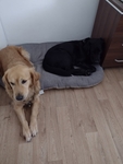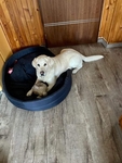 Černý Kliff stihl návštěvu adventního trhu ve společnosti své současné lidské smečky. Na osvětlené stánky kulila očka i jeho malá kamarádka a doufejme i budoucí kolegyně, dvouměsíční Maya, pohodlně uvelebená pod paniččinou bundou - jen blonďatá hlavička jí kouká.