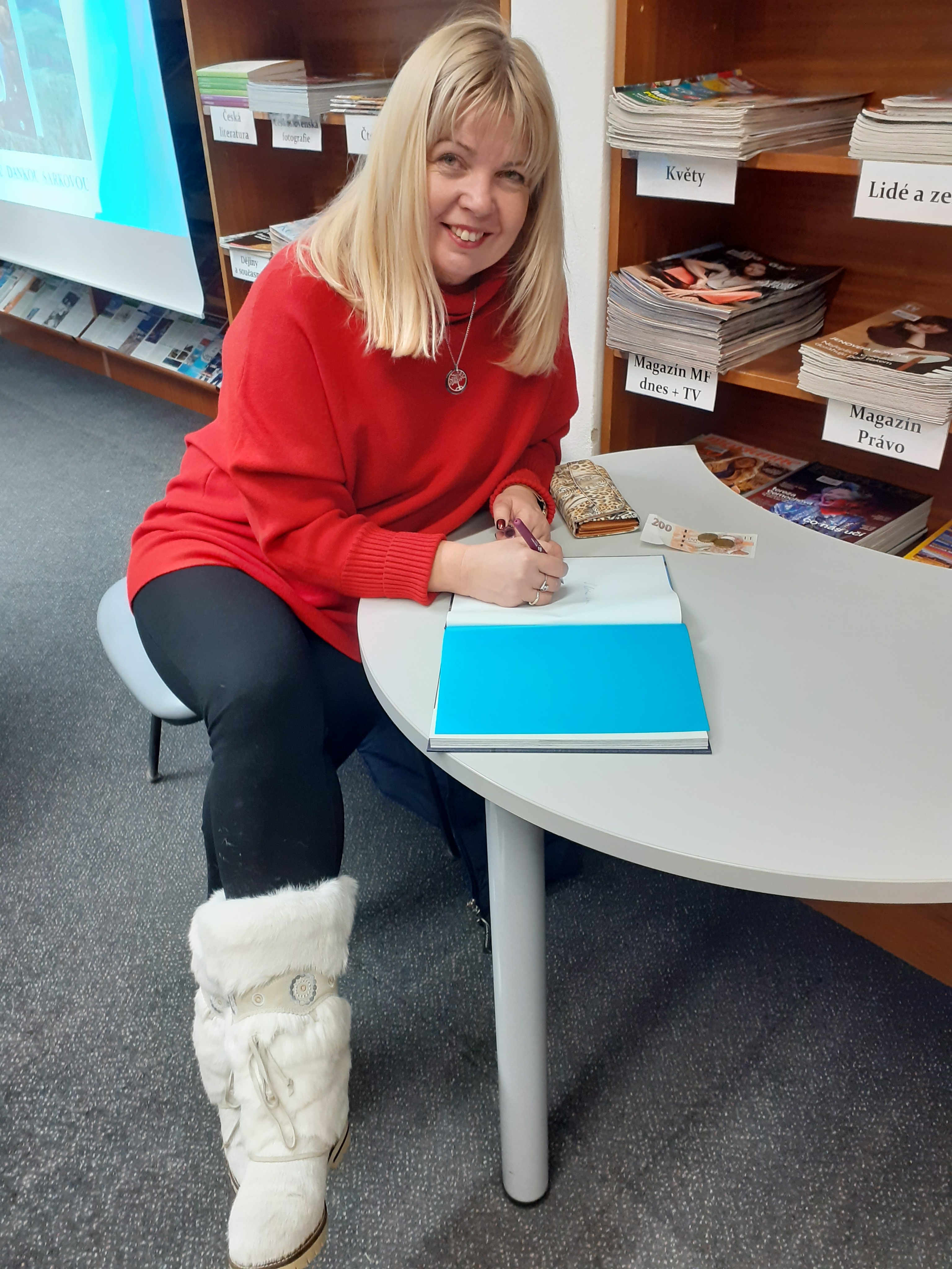 Po delší době jsem navštívili místní knihovnu, kde ve studovně probíhala beseda se spisovatelkou Dankou Šárkovou.