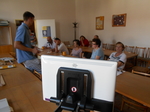 Po dobré snídani, při níž jsme ocenili výborné pečivo a chutné pomazánky, nás paní Ing. Filgasová seznámila s bohatým programem druhého dne pobytu. Nejprve nás paní ředitelka ekocentra ve své přednášce seznámila s životem obyvatel a historií řemesel v oblasti Moravských Kopanic. Zvláštní pozornost věnovala zdejšímu tradičnímu řemeslu 18. a 19. století, tzv. zvěrokleštičství. Během přednášky jsme měli možnost prohlédnout si a osahat nejrůznější předměty a řemeslnické nástroje a zkusit odhadnout jejich účel a způsob použití, mezi nimi i nástroje zvěrokleštičů a předměty a nástroje související s chovem ovcí a zpracováním vlny.