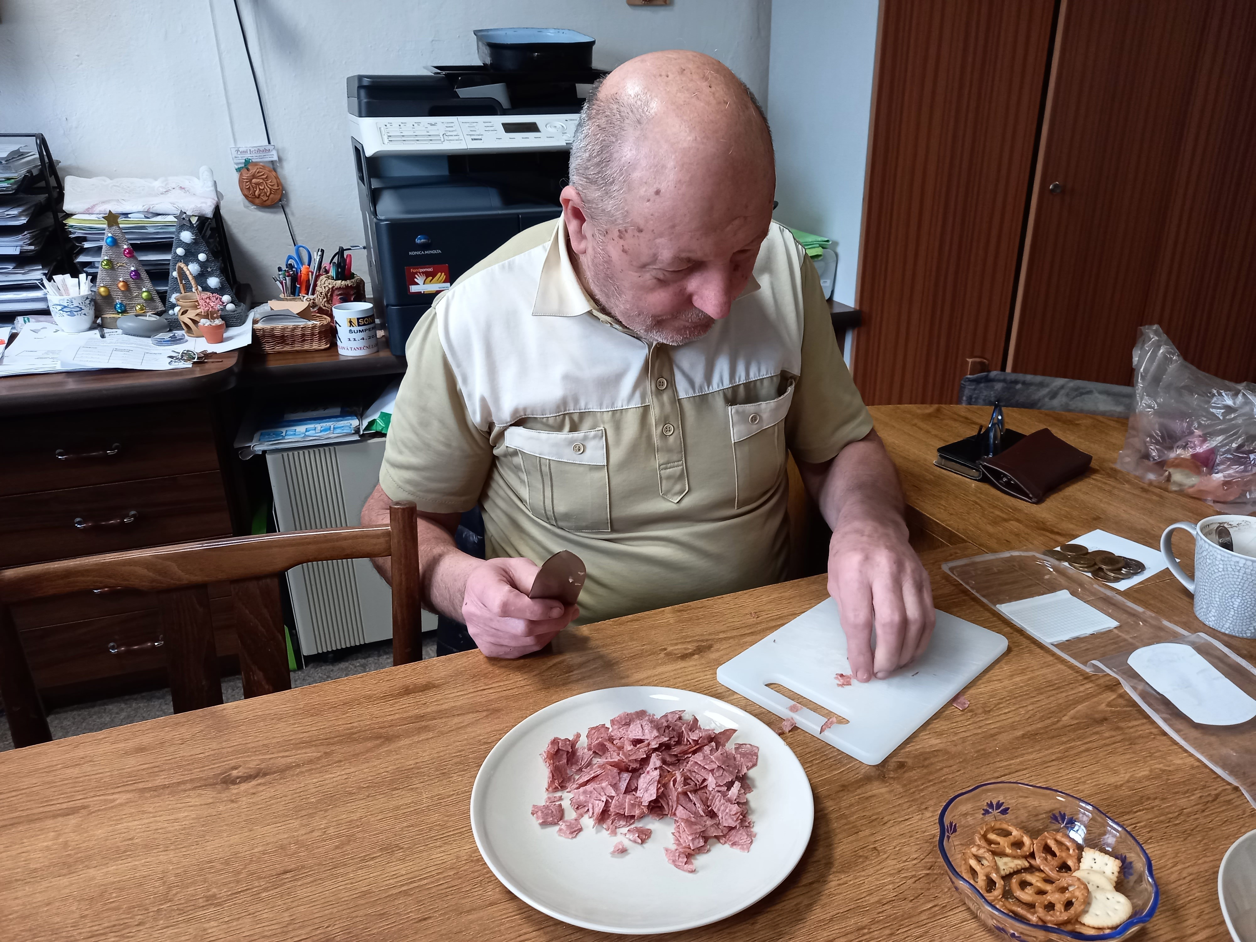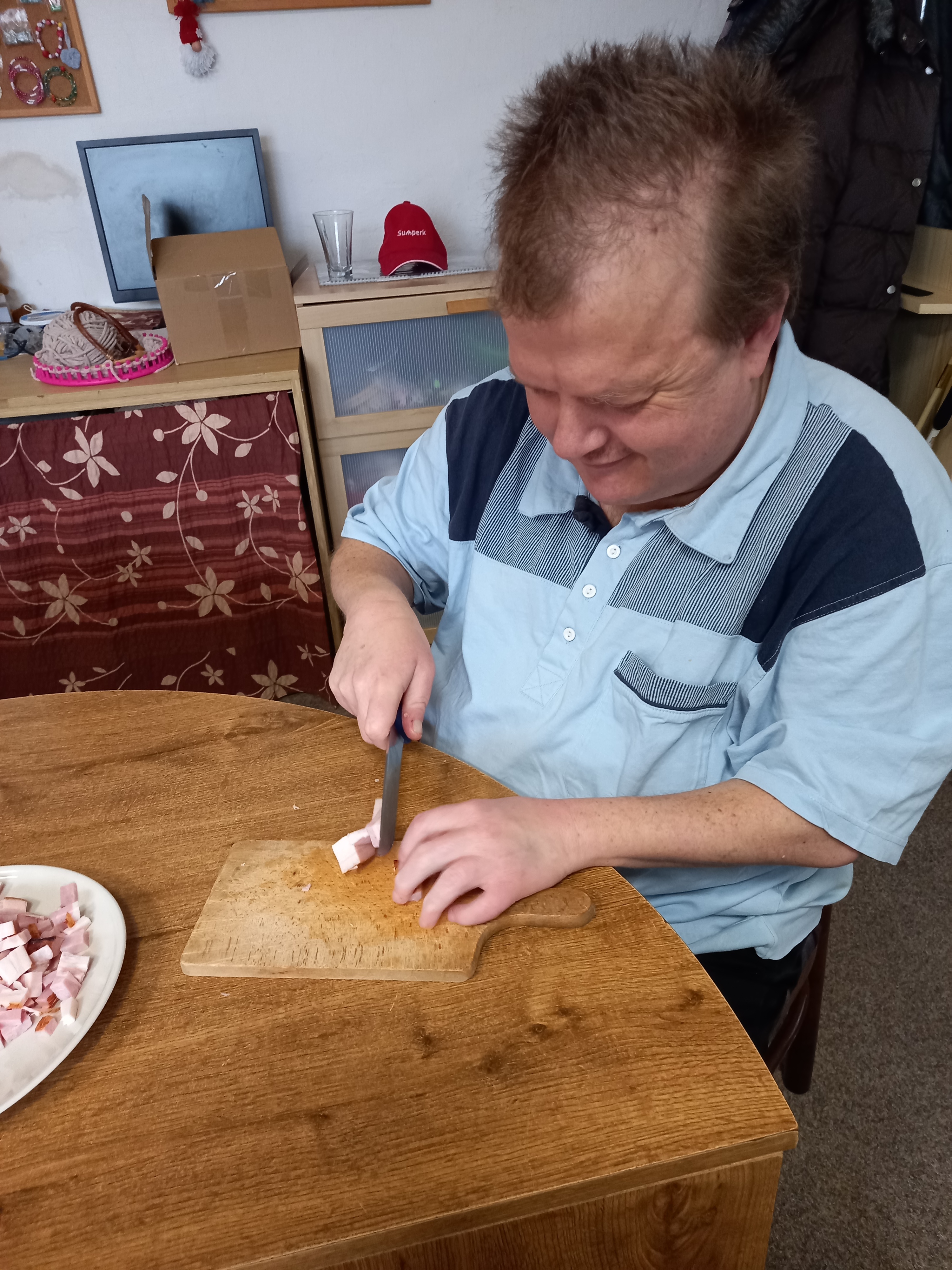 Únorový klub malých kuchařů byl z mnoha úhlů pohledu výjimečný. 10 aspirantů na zlatou vařečku vůbec poprvé otestovalo novinku – internetový nákup potravin přes rohlik.cz, přes který je rozvoz pro držitele průkazu ZTP zdarma. Nakoupili jsme vskutku netradiční suroviny, které bychom v běžném obchodě marně hledali. Zavoněly zde batáty, tedy sladké brambory fialové a oranžové barvy pocházející z tropické Jižní Ameriky, maličké křepelky se slaninou, do kterých jsme se snažili nasoukat nádivku, žampiony jako obloha a nakonec jsme si dopřáli sladkou tečku – upekli jsme punčový dort s pomerančovým rozvorem podle kuchaře Maršálka. Ten však téměř dokonalý nebyl, protože nám chybí kuchyňský robot k vyšlehání. Avšak možná časem nám bude nový kuchyňský robot pomáhat – je to pro nás výzva, která závisí na financích. Zároveň je důležité, aby se oba korpusy pekly zaráz tak, aby byl každý stejně vysoký. Šťávy na proliv bylo spoustu, proto by stačilo i poloviční množství – v receptu níže tedy uvádíme na sirup poloviční množství surovin. Na křepelčí vajíčka jsme však úplně zapomněli – zůstala v lednici a dopřejeme si je příště. I tak jsme si na fajnovém jídle výborně pochutnali.
