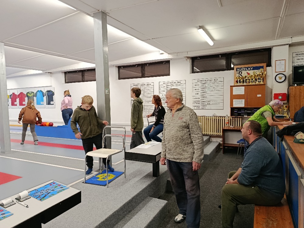 Poslední akcí měsíce října bylo hraní kuželek. V sobotu 25. října jsme se sešli před kuželnou v Jičíně, kde jsme zahájili další z našich tréninků. Mnozí členové se již v této nové aktivitě začali zlepšovat. Několikrát se zadařilo shodit jedním hodem všechny kuželky najednou. V ten moment se zvoní na velký zvon, aby všichni účastníci věděli, že někdo trefil plný počet kuželek. Účast byla pěkná a na dráhách bylo stále rušno. Ke konci tréninku už byla znát únava, neustálé házení těžkou koulí je přeci jen náročné. Užili jsme si tak krásné sobotní dopoledne.