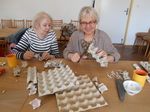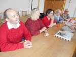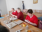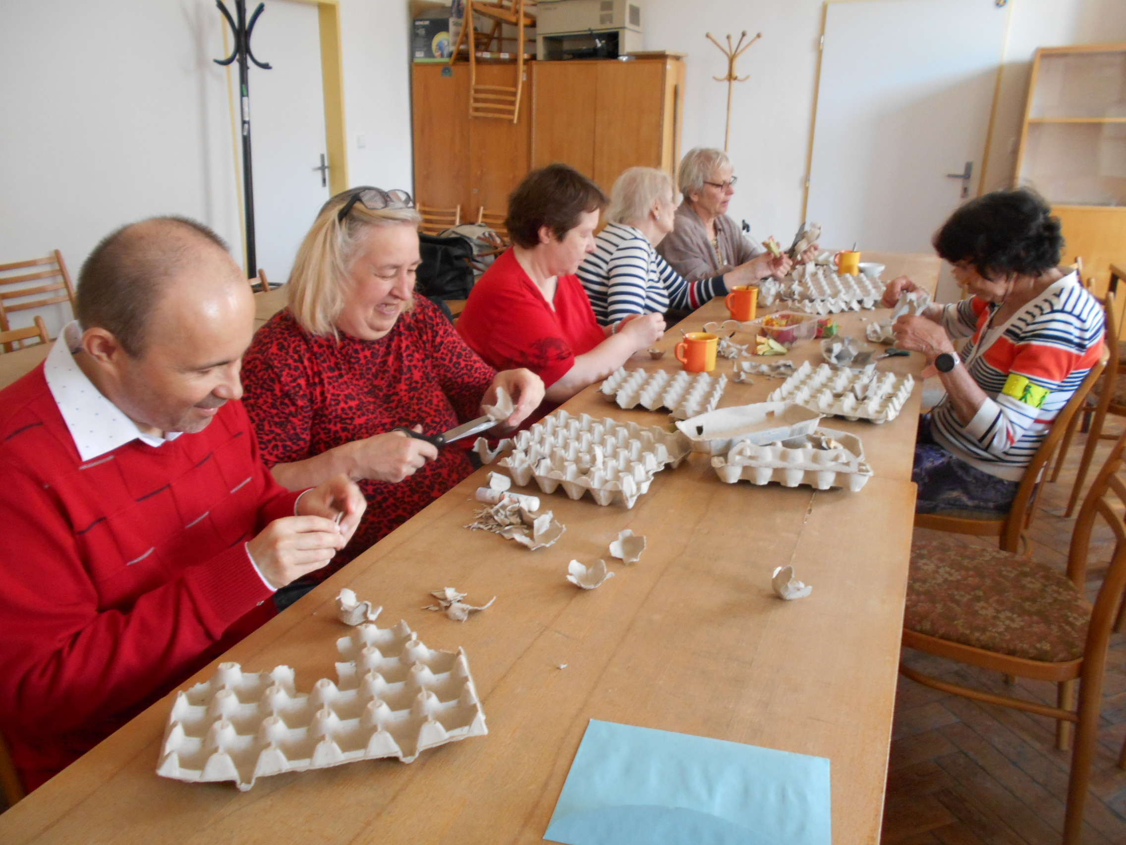Při této ruční práci jsme měli možnost důkladně si procvičit hmat a jemnou motoriku prstů. Se zapojením fantazie a potřebné dávky trpělivosti nám pod rukama postupně vznikaly květinové kalíšky a okvětní lístky, které si při příštím setkání obarvíme a květy dokončíme. Děkujeme všem za společně strávené chvíle a těšíme se na shledanou.