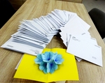 Ne všechny úkoly nám byly dostupné, takové tištěné rébusy či obrázkové hádanky jsou pro naše členy neřešitelné. Ale my to nevzdaly! Některé jsme předčítali a na skládání slov z písmen slova KORDULKA jsme použili naše osvědčená dřevěná písmena velkého formátu. Rébus nám zabral celý jeden stůl. Na ten jsme nalepili celé slovo a umístění hledaných písmen jsme zobrazili nalepením kousku papíru. Hmatem bylo vše dohledatelné, ale poněkud náročnější než hledat správná slova vizuálně.