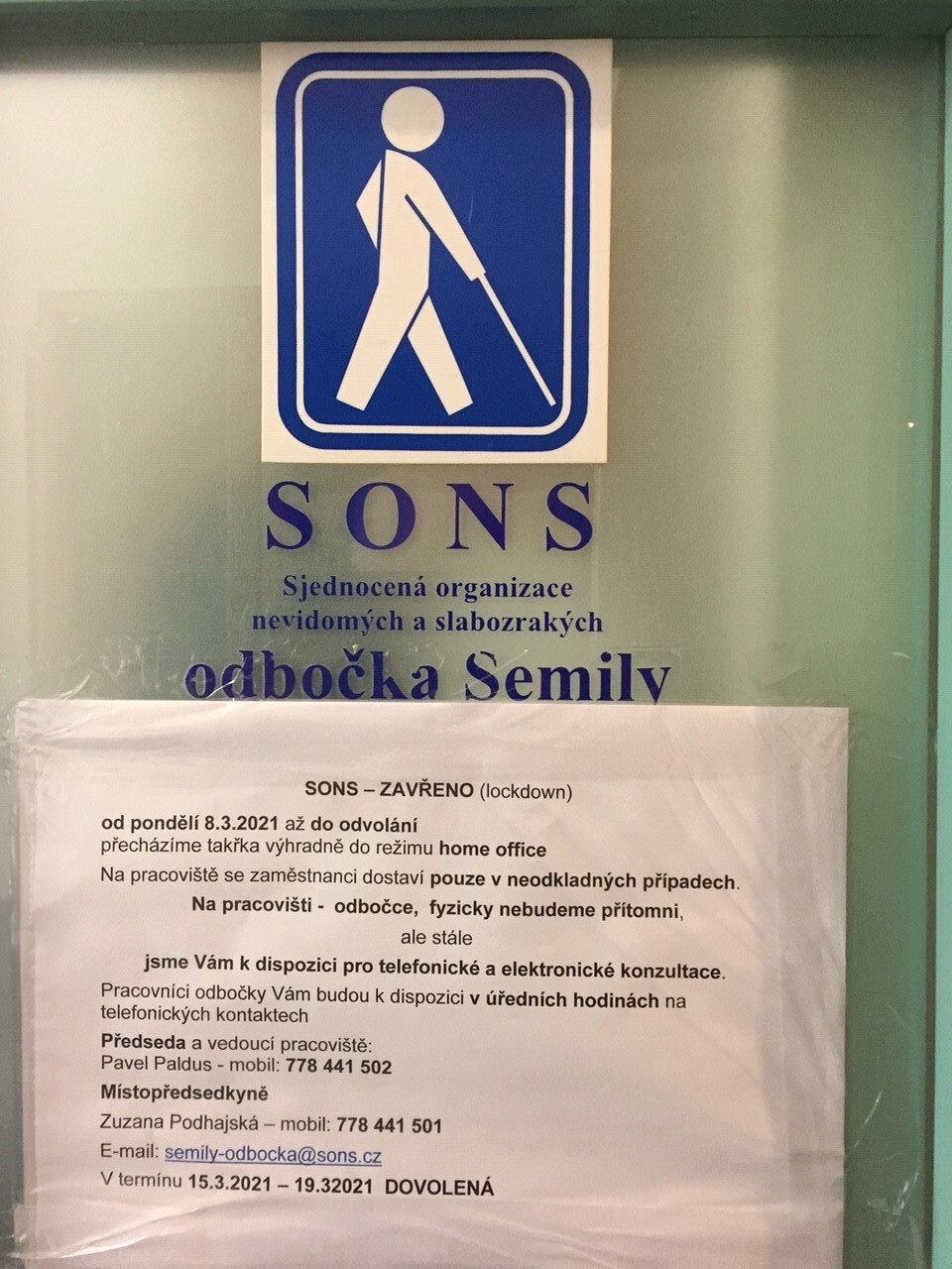 Pracovníci Sjednocené organizace nevidomých a slabozrakých ČR, z. s. (dále jen „SONS“) budou výkon svých činností zajišťovat z domova.