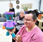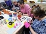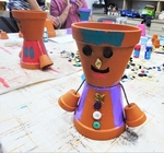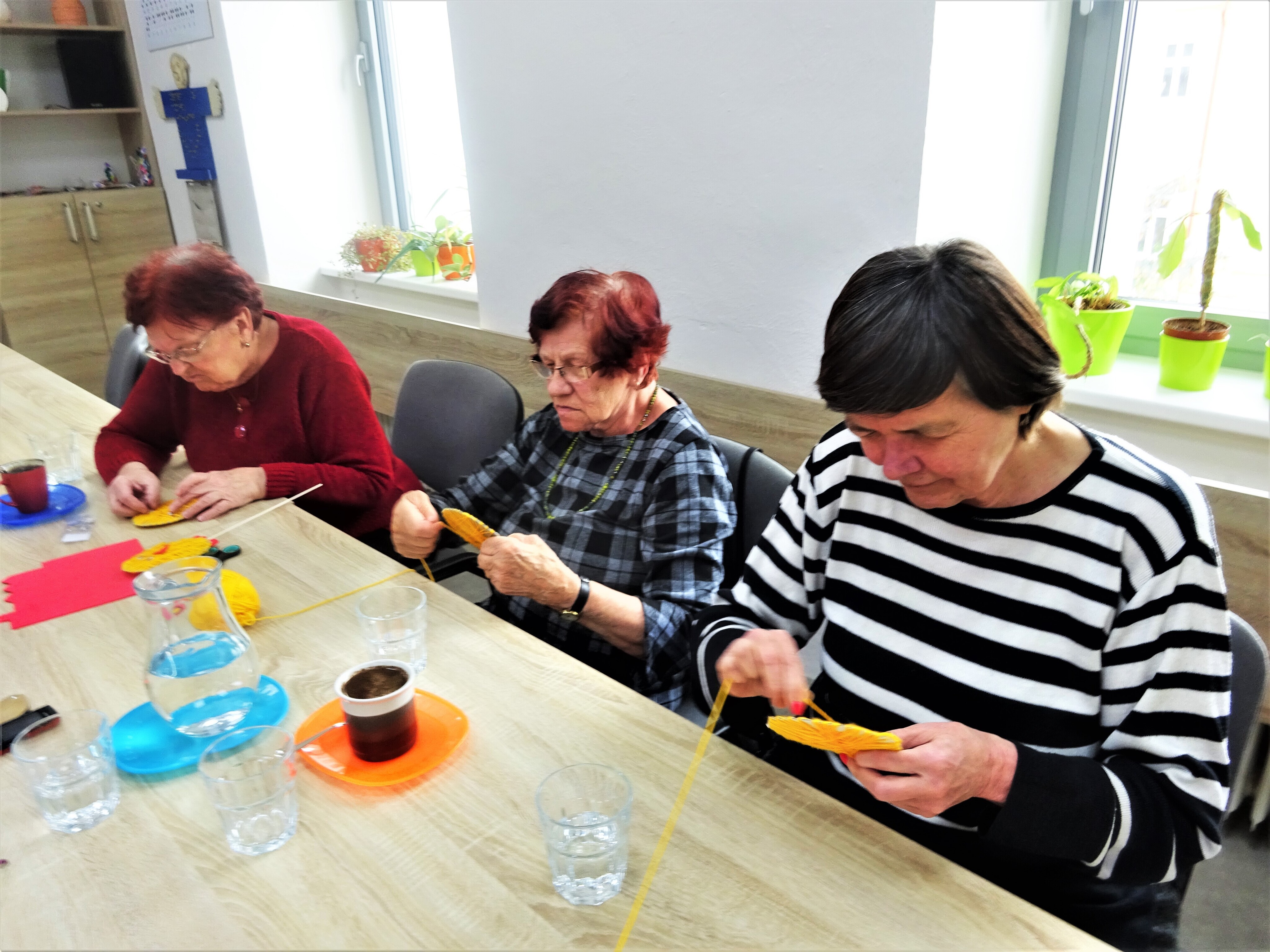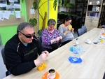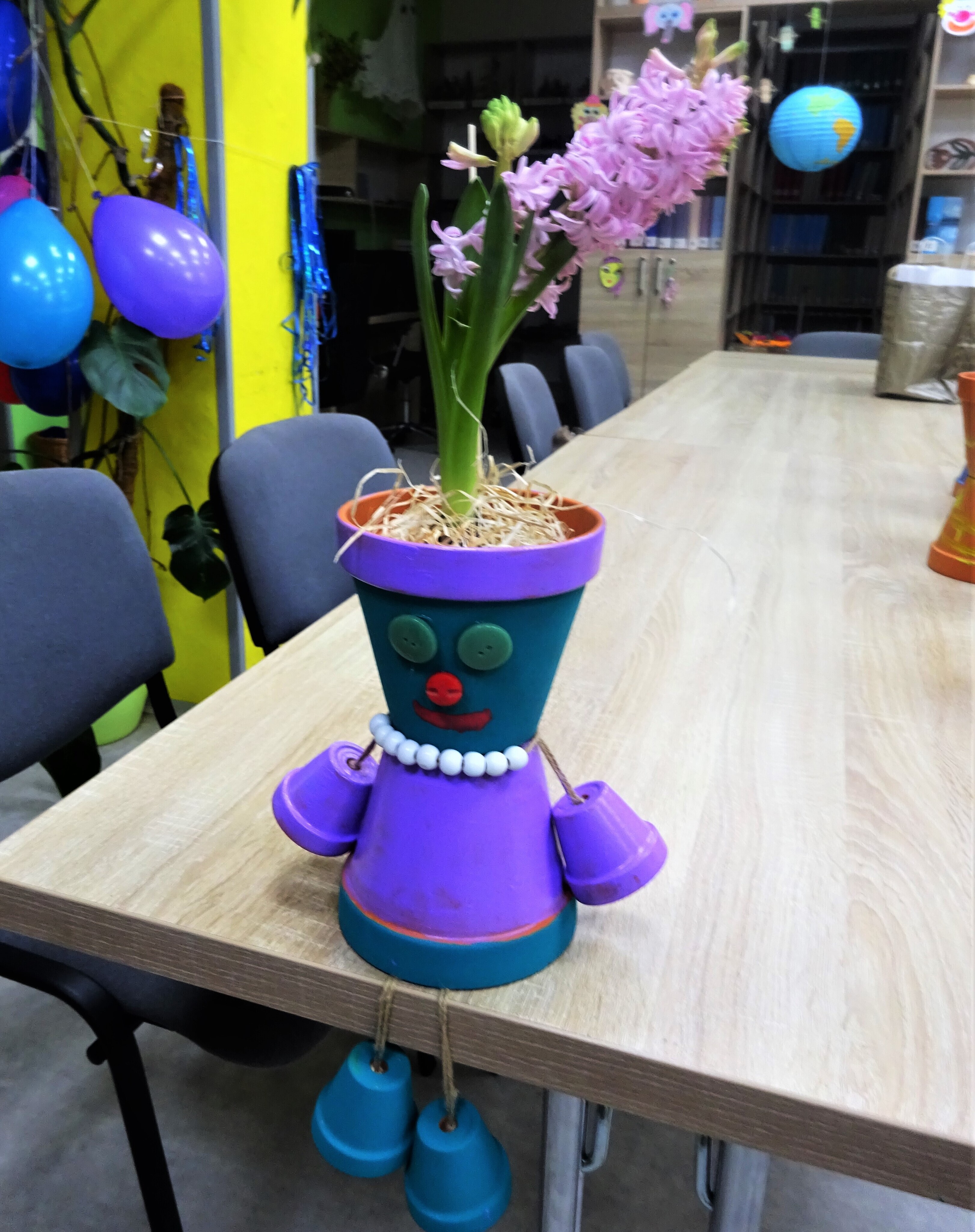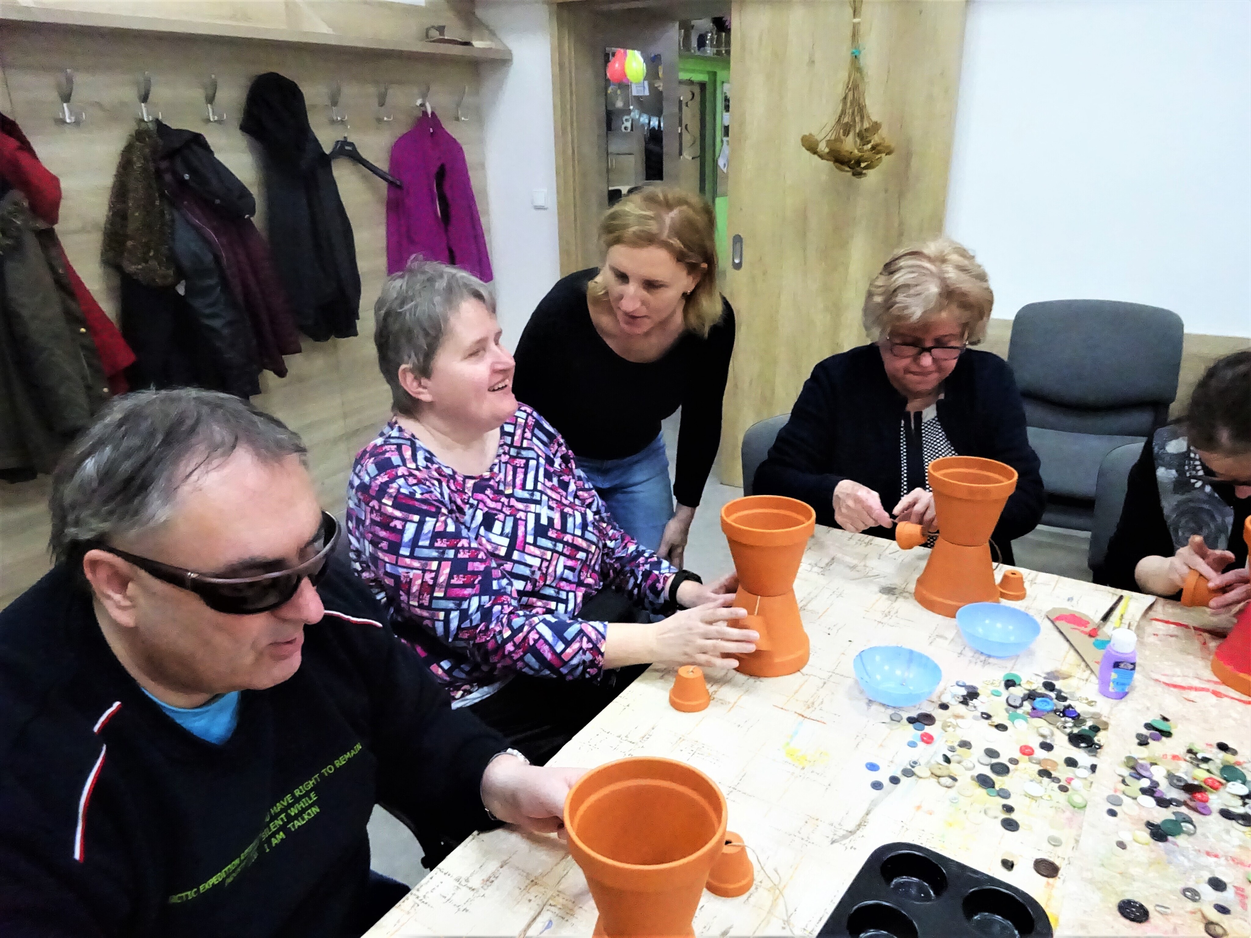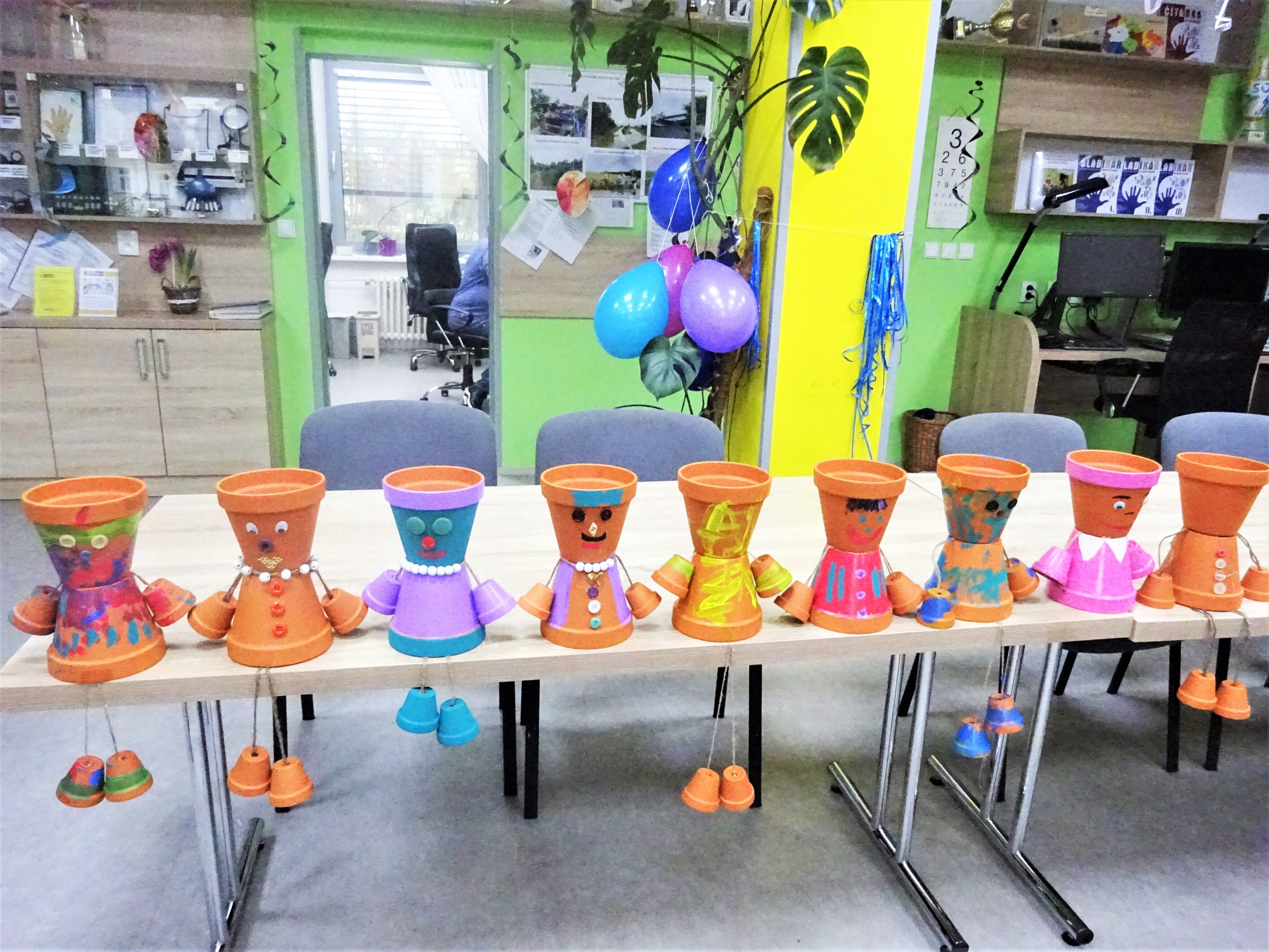Na výtvarné dílně jsme se zaměřili na jarní dekoraci. Nakoupili jsme květináče dvou velikostí, vzájemným slepením vznikli roztomilí panáčci, které si každý dle svých možností sám, nebo za pomoci dobrovolníků vybarvil či vyzdobil. Jejich dekorační využití je rozmanité. Mohou zdobit venkovní parapet, vchodové schodiště, záhonek či poličku v bytě. Do horního květináče se může zasadit bylinka, kytička nebo jej zaplnit velikonočními kraslicemi.