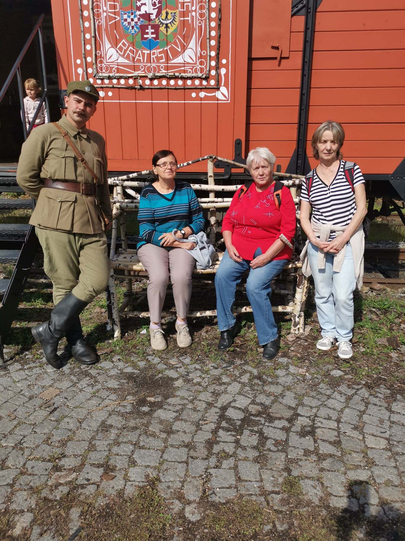 Hned od začátku se nám věnoval statný voják. Provedl nás celým vlakem a svým vyprávěním připomněl (starším) a vysvětlil (mladším) nejen vznik Československých legií, ale i jejich boje a život vojáků na Transsibiřské magistrále.