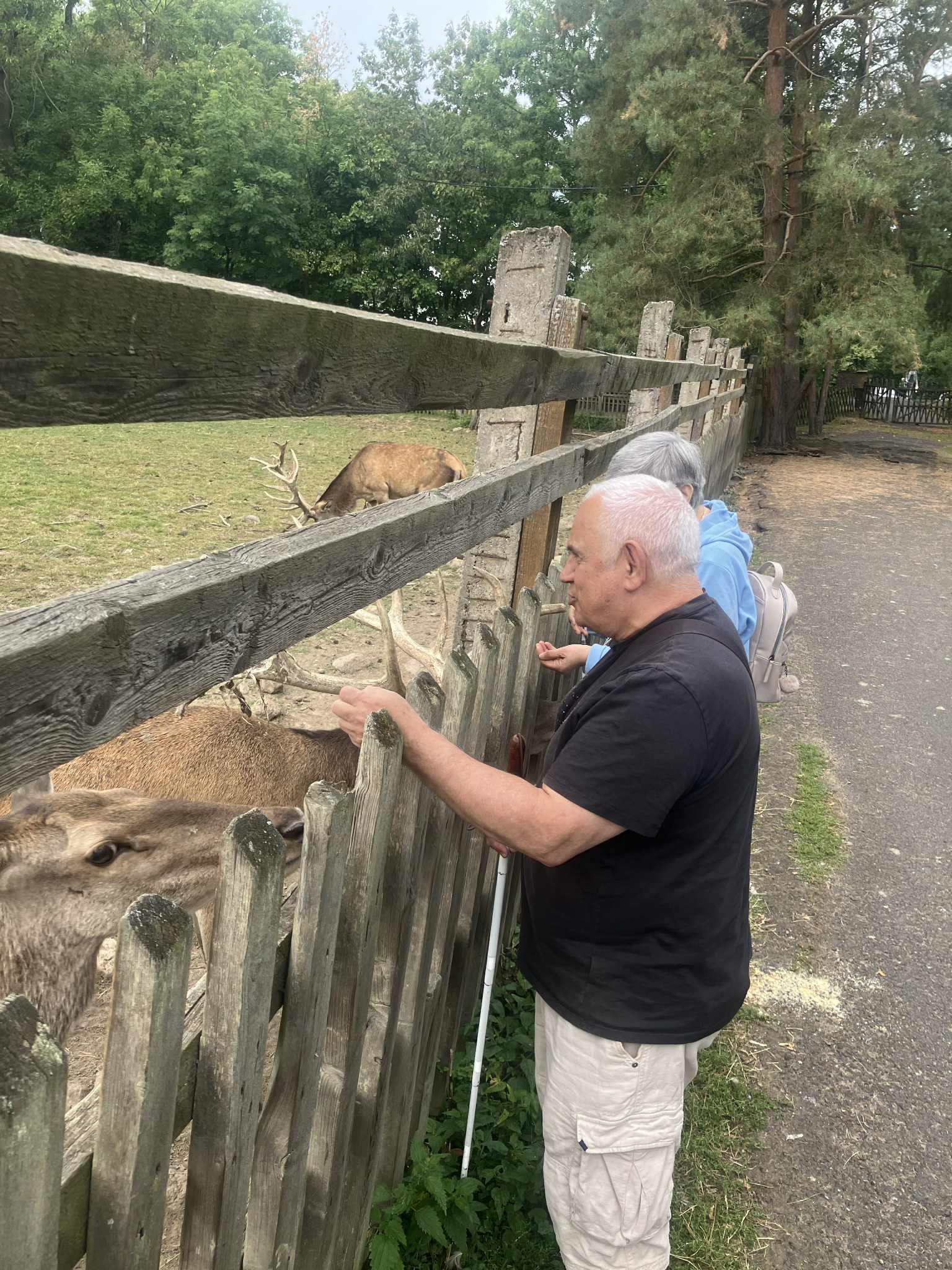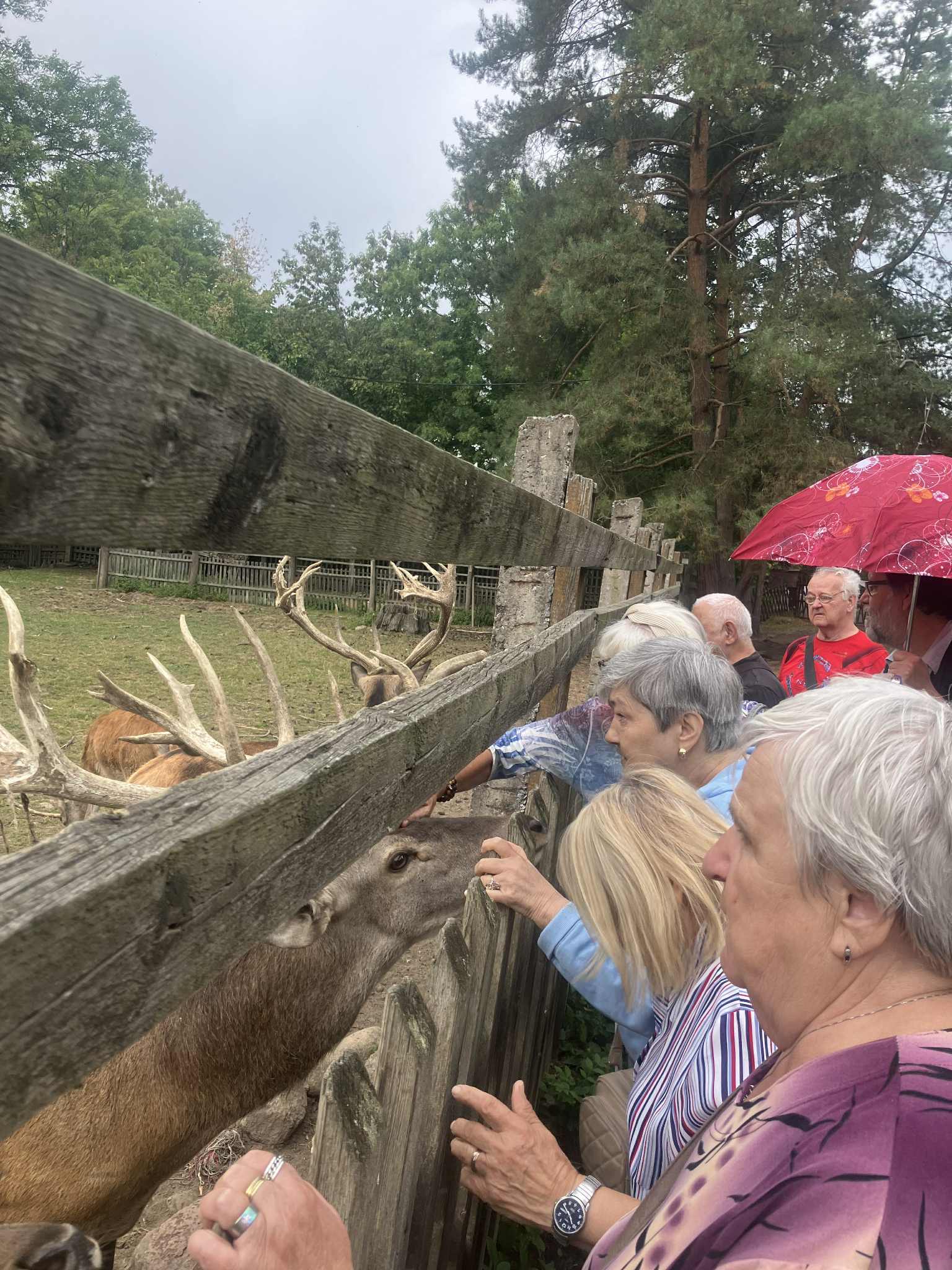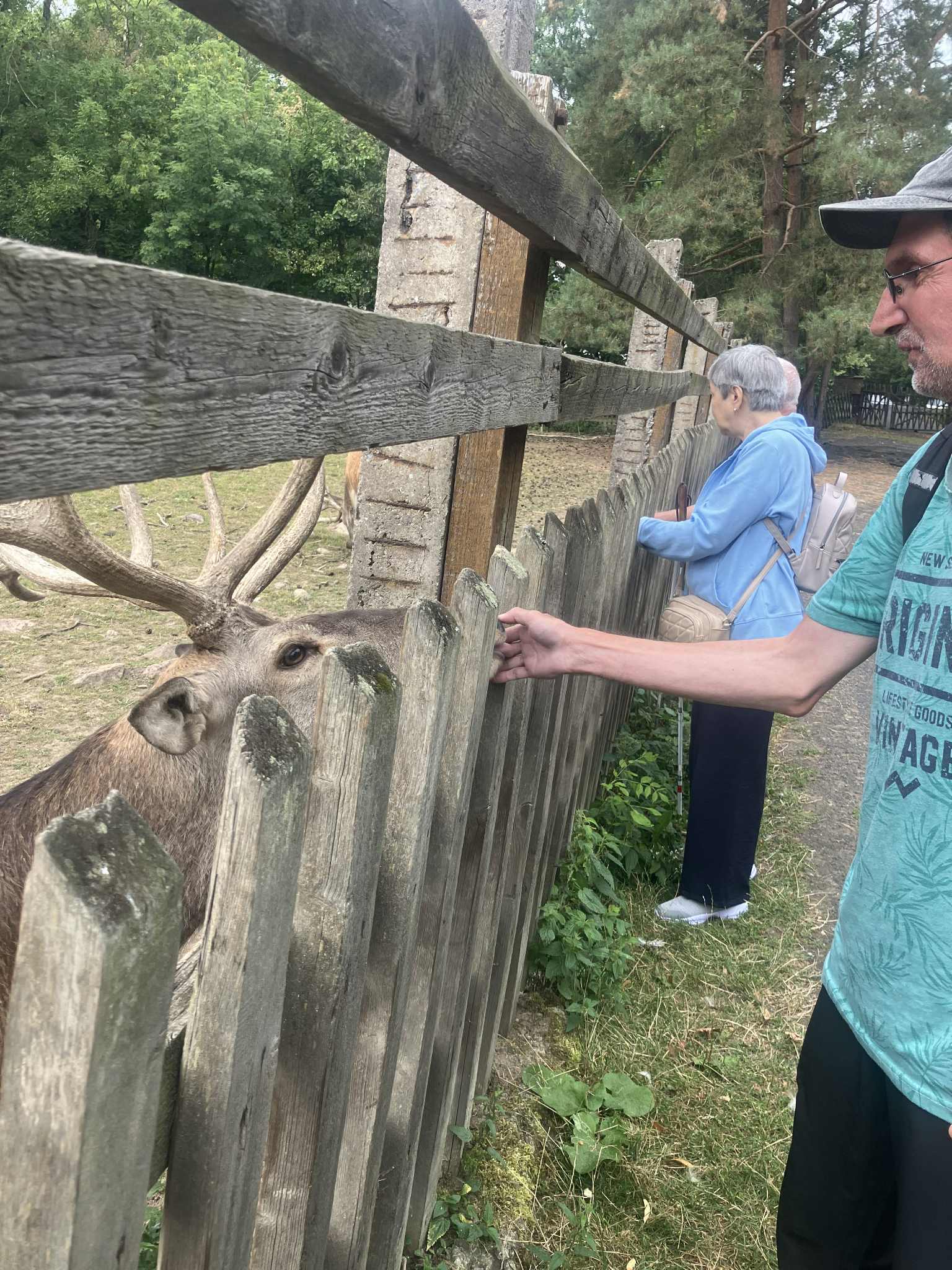 Ve středu 27.8. jsme se vydali na výlet do lesní obory, vlakem do Teplic a poté autobusem do Mstišova. Někteří z nás měli v paměti a očekávali jsme více druhů lesní zvěře, ale čekali nás tam pouze divoká prasata, stádo jelenů s laněmi a pár daňků a husy, které nás celou dobu provázely svým hlasitým kejháním. Jelikož nám počasí nepřálo, prošli jsme se krátce po oboře, nakrmili a pohladili zvěř. Bylo hezké a vzácné sáhnout si na divoká zvířata, na parohy jelenů a hrubou srst divokých prasat. Vrátili jsme se autobusem zpátky do Teplic, kde nám organizátorka výletu rezervovala oběd, což se neuskutečnilo a my se omylem ocitli v jiné nádražní restauraci, na jiném nádraží. I toto se může stát a my se tomu srdečně zasmáli a jeli do naší oblíbené restaurace U Kovářů v Ústí nad Labem, kde si vždy pochutnáme. I přes nepřízeň počasí jsme si výlet společně užili.
