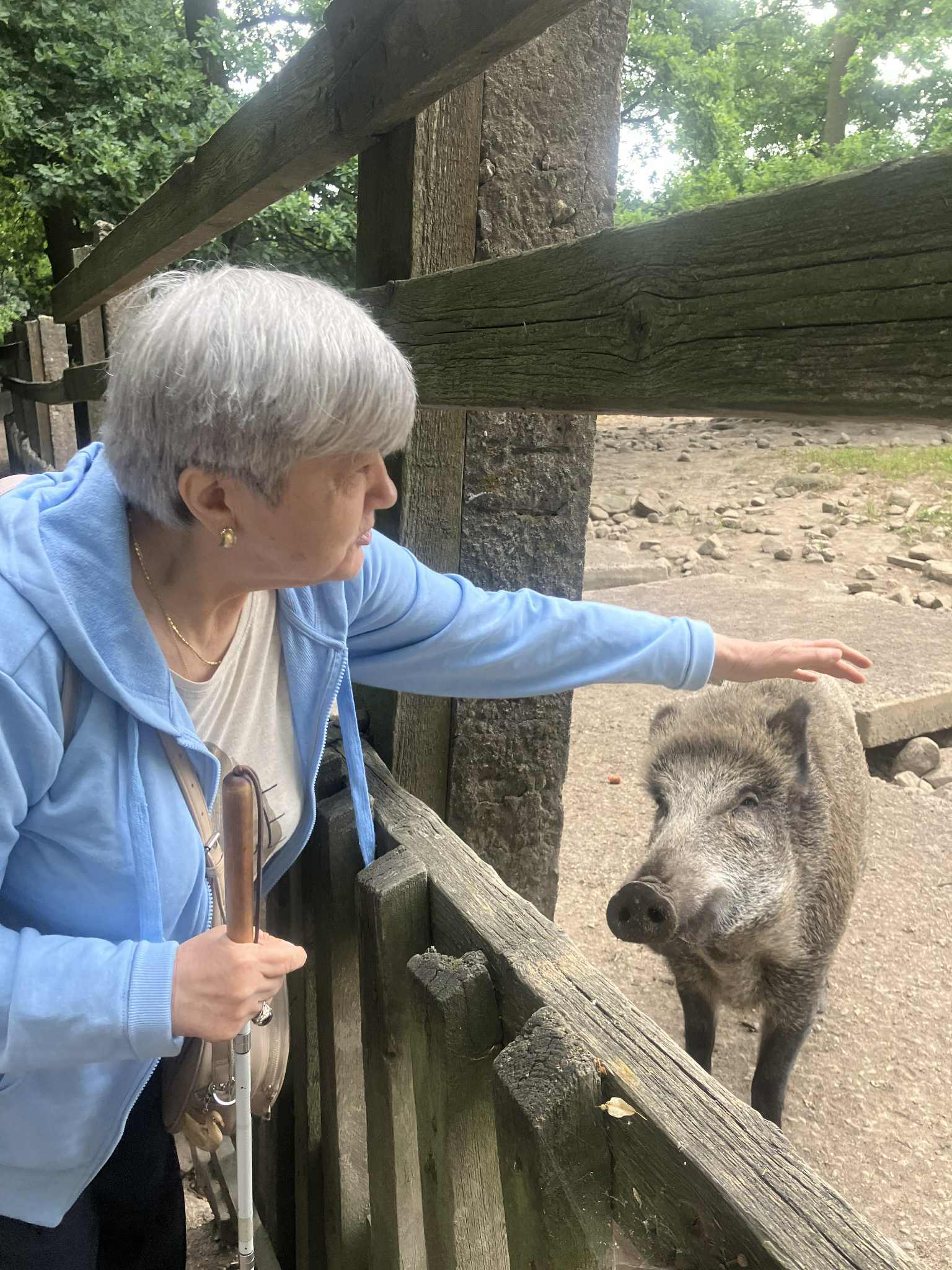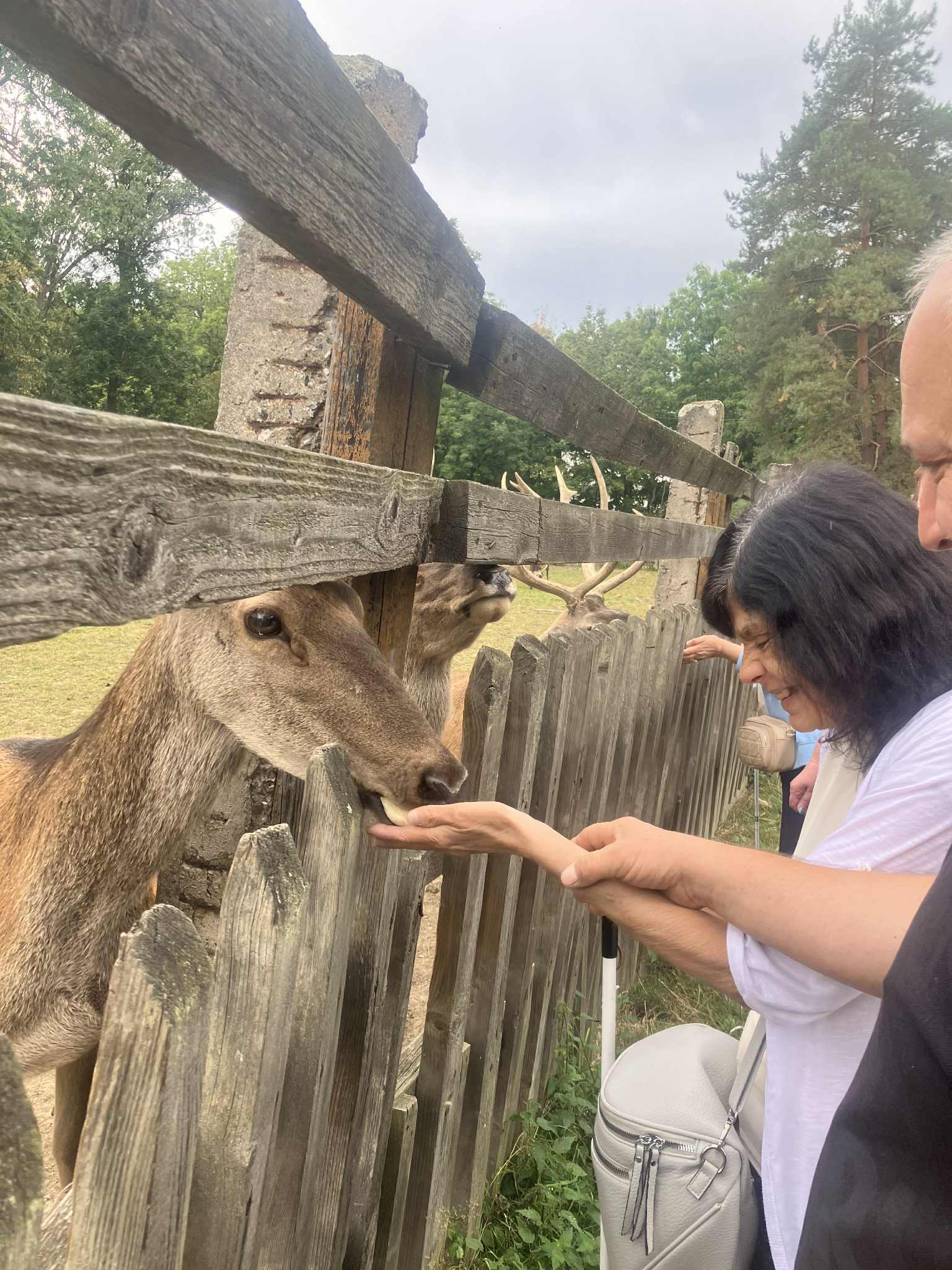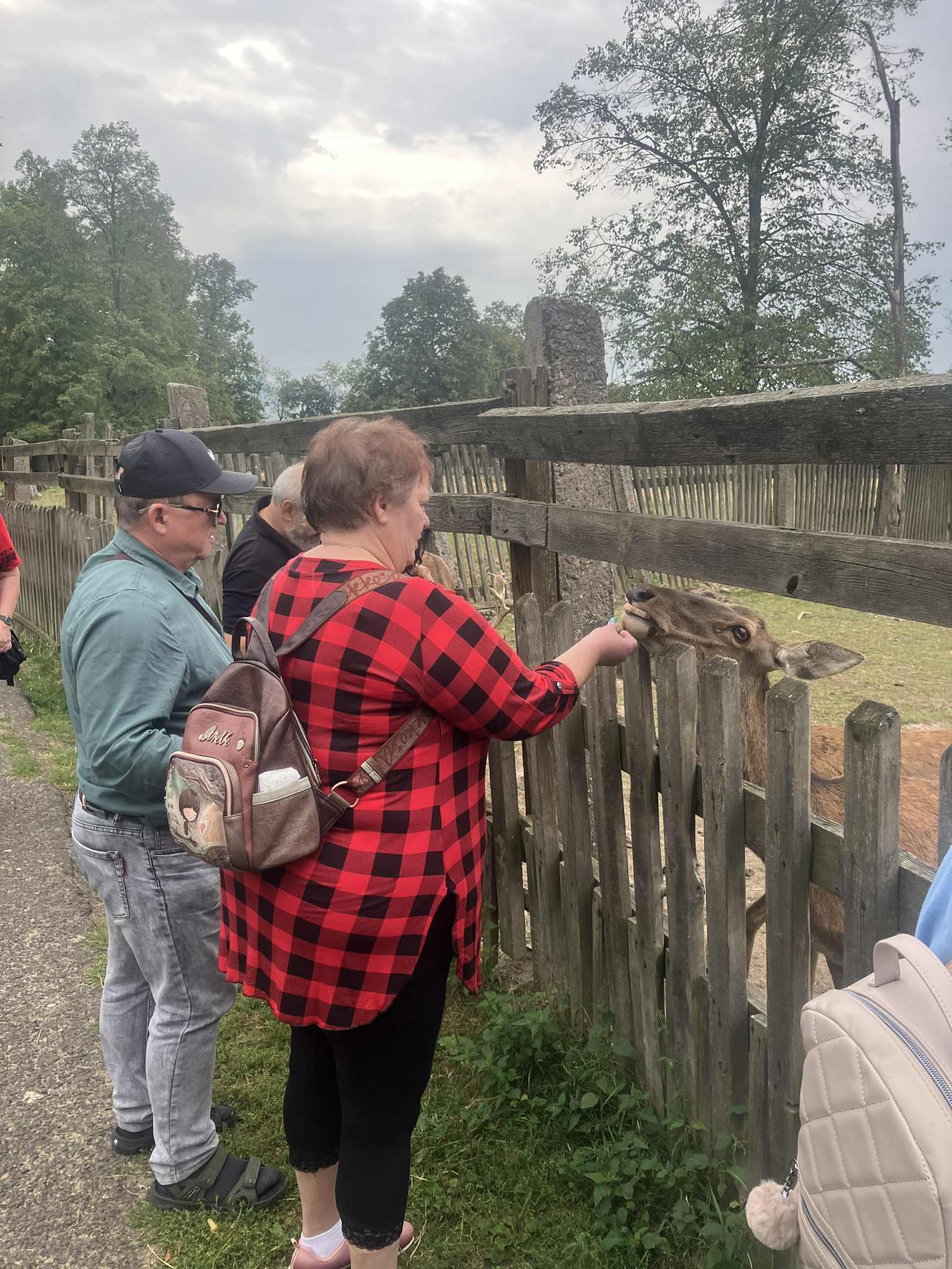Ve středu 27.8. jsme se vydali na výlet do lesní obory, vlakem do Teplic a poté autobusem do Mstišova. Někteří z nás měli v paměti a očekávali jsme více druhů lesní zvěře, ale čekali nás tam pouze divoká prasata, stádo jelenů s laněmi a pár daňků a husy, které nás celou dobu provázely svým hlasitým kejháním. Jelikož nám počasí nepřálo, prošli jsme se krátce po oboře, nakrmili a pohladili zvěř. Bylo hezké a vzácné sáhnout si na divoká zvířata, na parohy jelenů a hrubou srst divokých prasat. Vrátili jsme se autobusem zpátky do Teplic, kde nám organizátorka výletu rezervovala oběd, což se neuskutečnilo a my se omylem ocitli v jiné nádražní restauraci, na jiném nádraží. I toto se může stát a my se tomu srdečně zasmáli a jeli do naší oblíbené restaurace U Kovářů v Ústí nad Labem, kde si vždy pochutnáme. I přes nepřízeň počasí jsme si výlet společně užili.