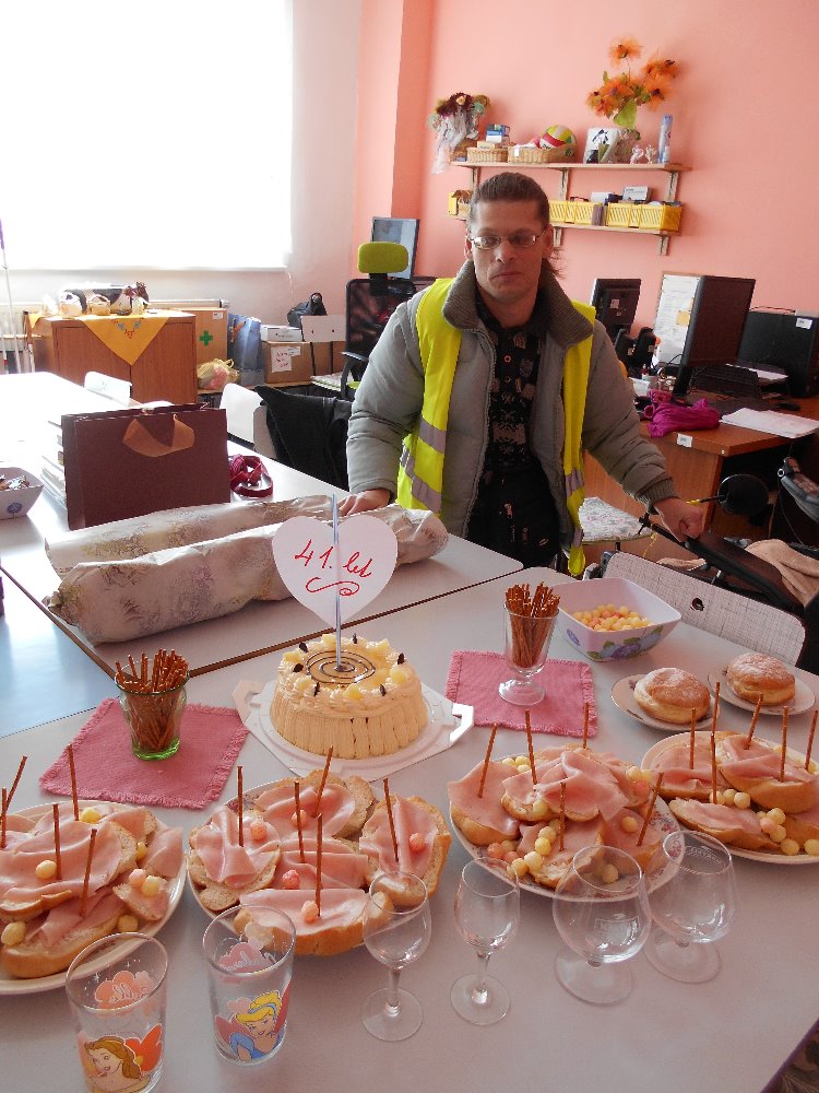 PŘEDSEDA NAŠÍ ODBOČKY ALEKOS BARDOŇ SLAVIL SVÉ 41. NAROZENINY. VYNIKAJÍCÍ DORT, OBČERSTVENÍ, NĚJAKÉ TY DÁREČKY, BÁSNIČKA A MILÁ ATMOSFÉRA, TO VŠE PROVÁZELO TYTO OSLAVY.