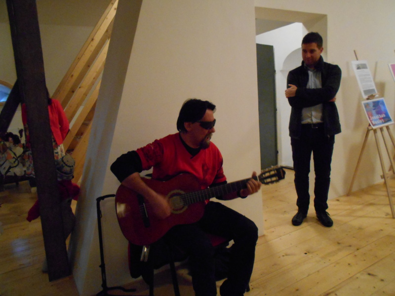 VERNISÁŽ ZAHÁJILA IVA MALÁ, VYZDVIHLA ZEJMÉNA ZAPOJENÍ OBČANŮ NEVIDOMÝCH A SLABOZRAKÝCH DO ČINNOSTÍ, KDE MOHOU UKÁZAT OSTATNÍM, CO DOVEDOU. A BYLO SE SKUTEČNĚ NA CO DÍVAT. OBRÁZKY, KERAMIKA, PANENKY, BATIKA A SPOUSTA JINÝCH VÝROBKŮ – VŠE SE SETKALO S VELKÝM OHLASEM. A COŽ TEPRVE HUDEBNÍ VYSTOUPENÍ NAŠEHO NEVIDOMÉHO ZDEŇKA JANEČKA A SPOLUŽAČEK Z PRAKTICKÉ ŠKOLY V LIPOVÉ LÁZNÍCH. ZAHRÁT A ZAZPÍVAT PŘIŠEL I NEVIDOMÝ RADOMÍR ZAPLETAL ZE ZLATÝCH HOR JAKO ZÁSTUPCE NAŠICH ČLENŮ . PAN STAROSTA A MÍSTOSTAROSTKA MĚSTA JESENÍK BYLI NADŠENI A VE SVÉM PROJEVU SLÍBILI VĚTŠÍ PODPORU NAŠÍ ODBOČCE I BARIÉRÁM NA JESENICKÝCH KOMUNIKACÍCH