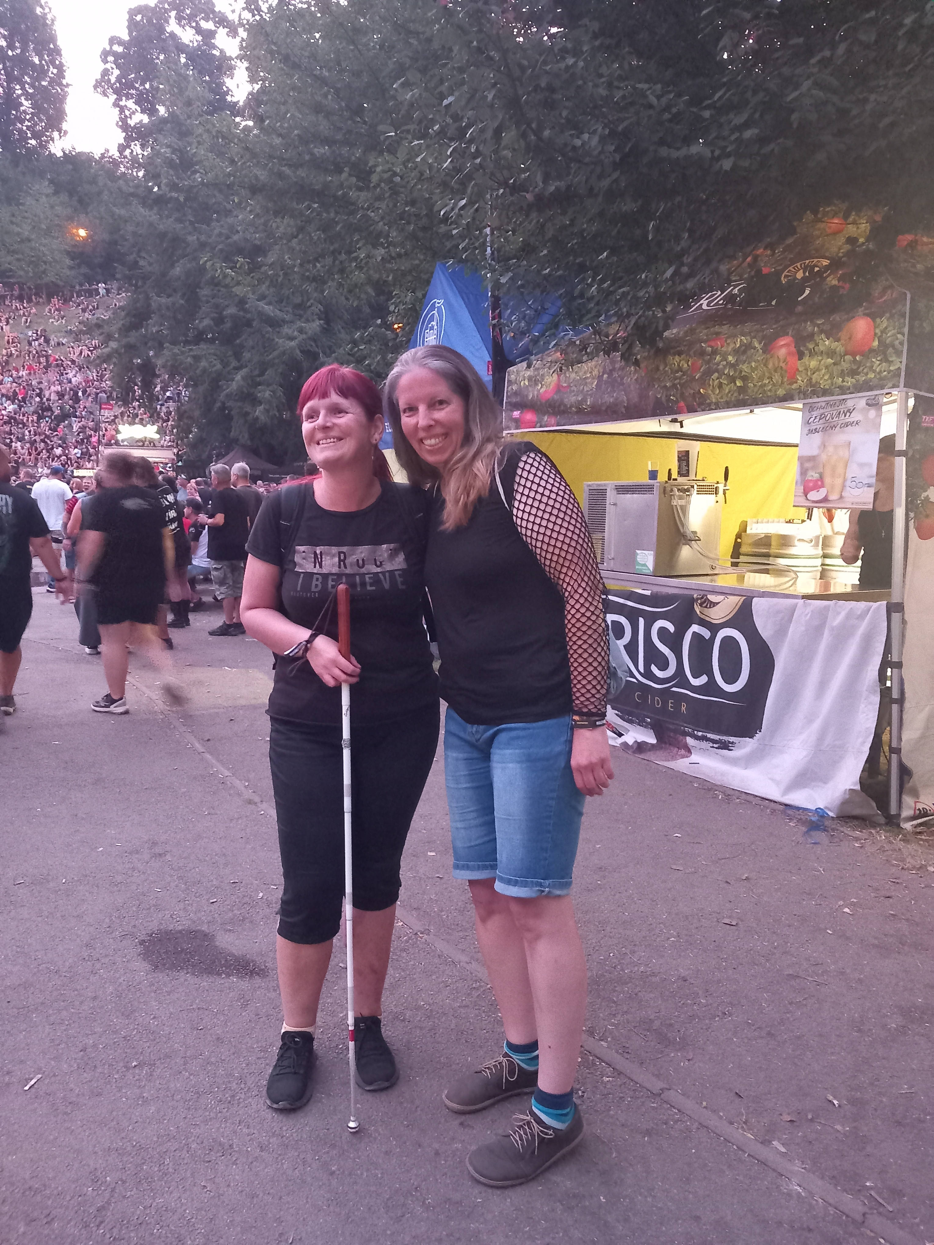Olina s bílou holí a Mančina jako doprovod. Tyto dvě členky naší pobočky se společně vydaly v sobotu 16. srpna na metalovo rockový festival do letního amfiteátru v Jihlavě. Osm tisíc fanoušků řízné hudby si užívalo parádní atmosféry, jídla a pití.